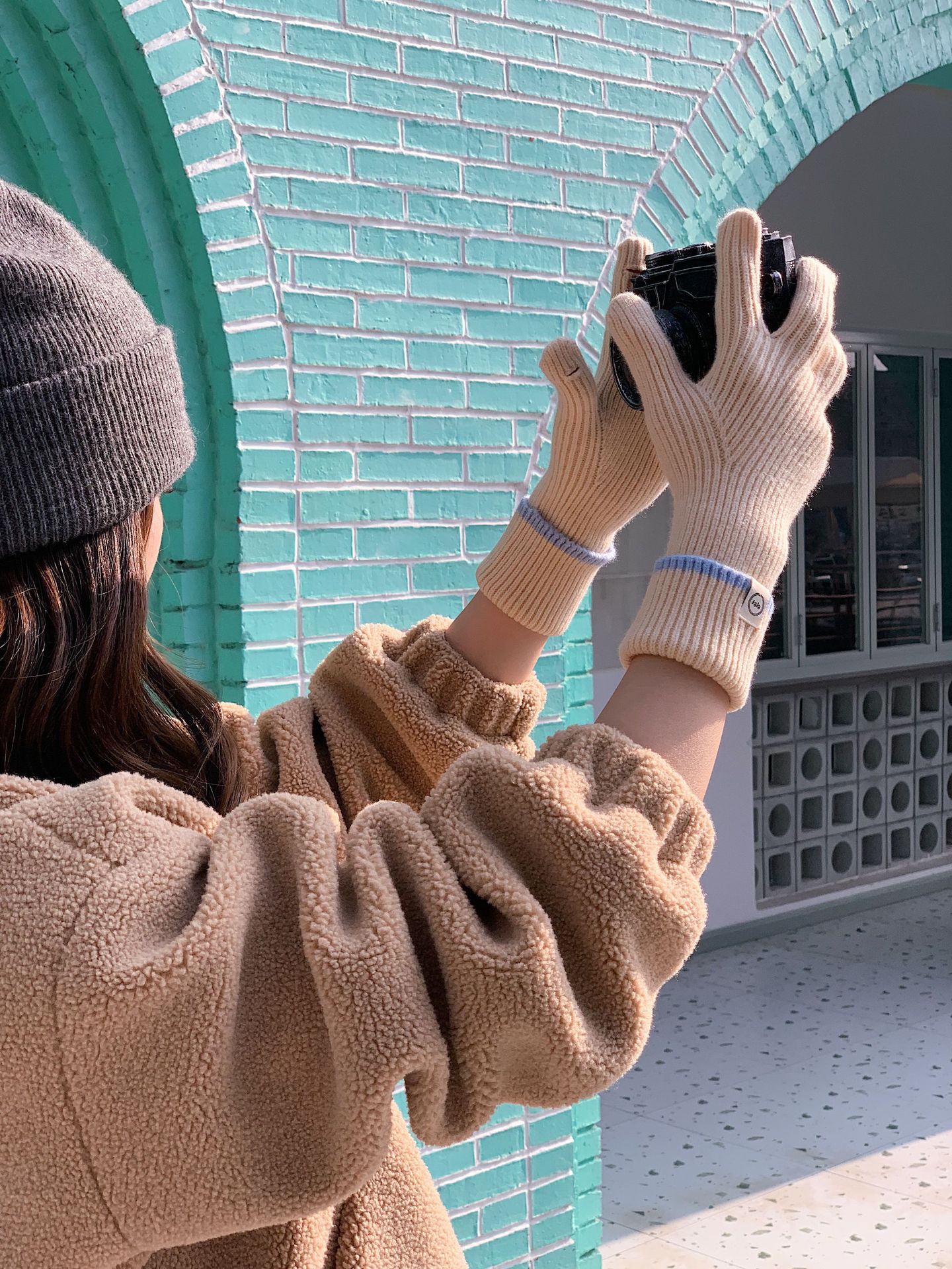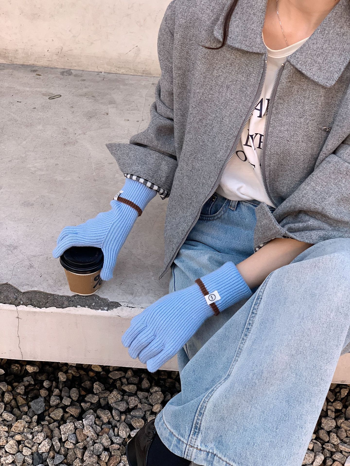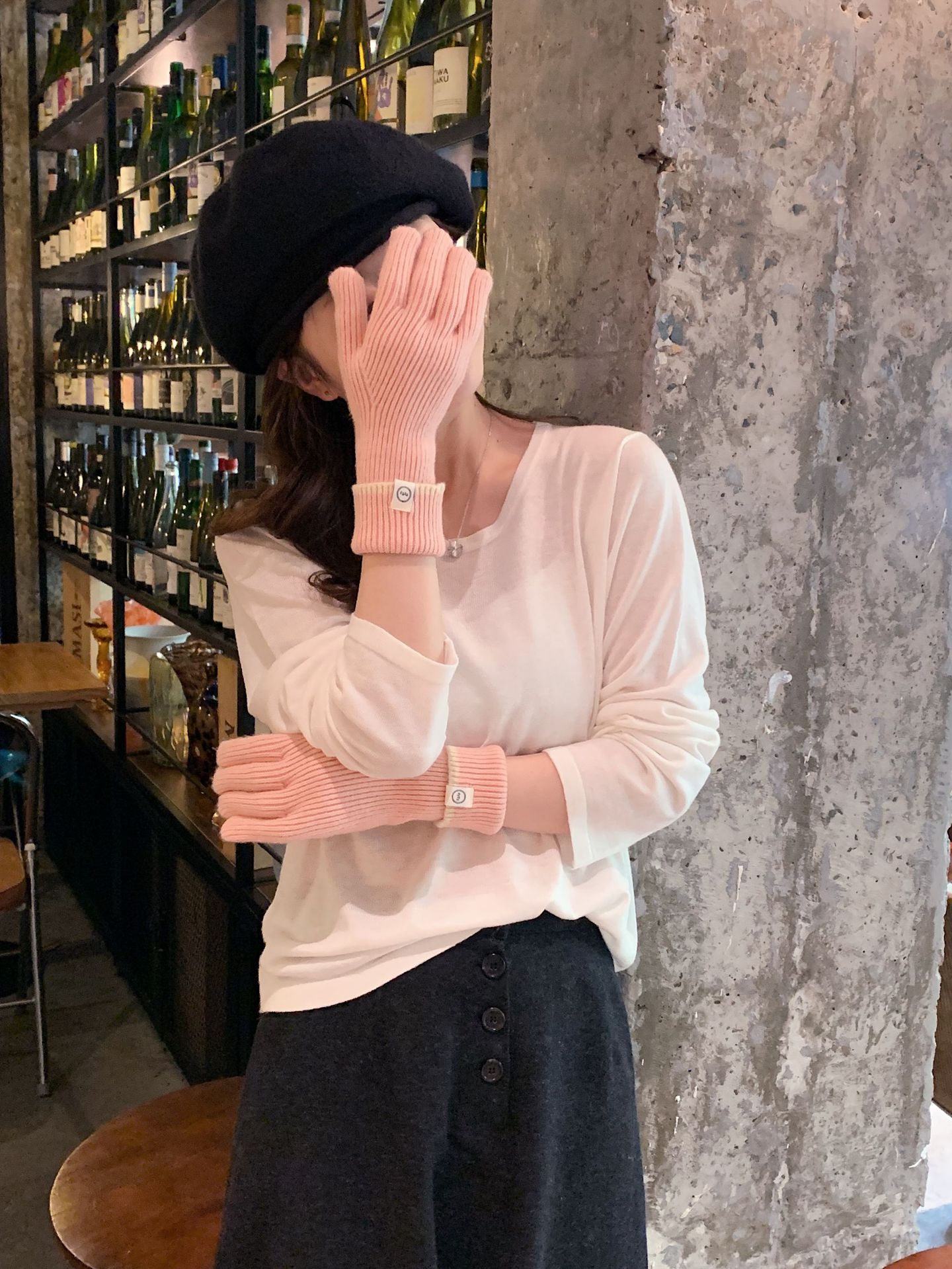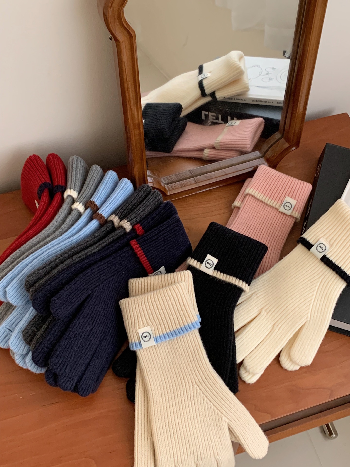 Nuevo guante coreano de moda etiquetado de lana panda guante de punto de motocicleta de otoño y invierno guante de muñeca caliente