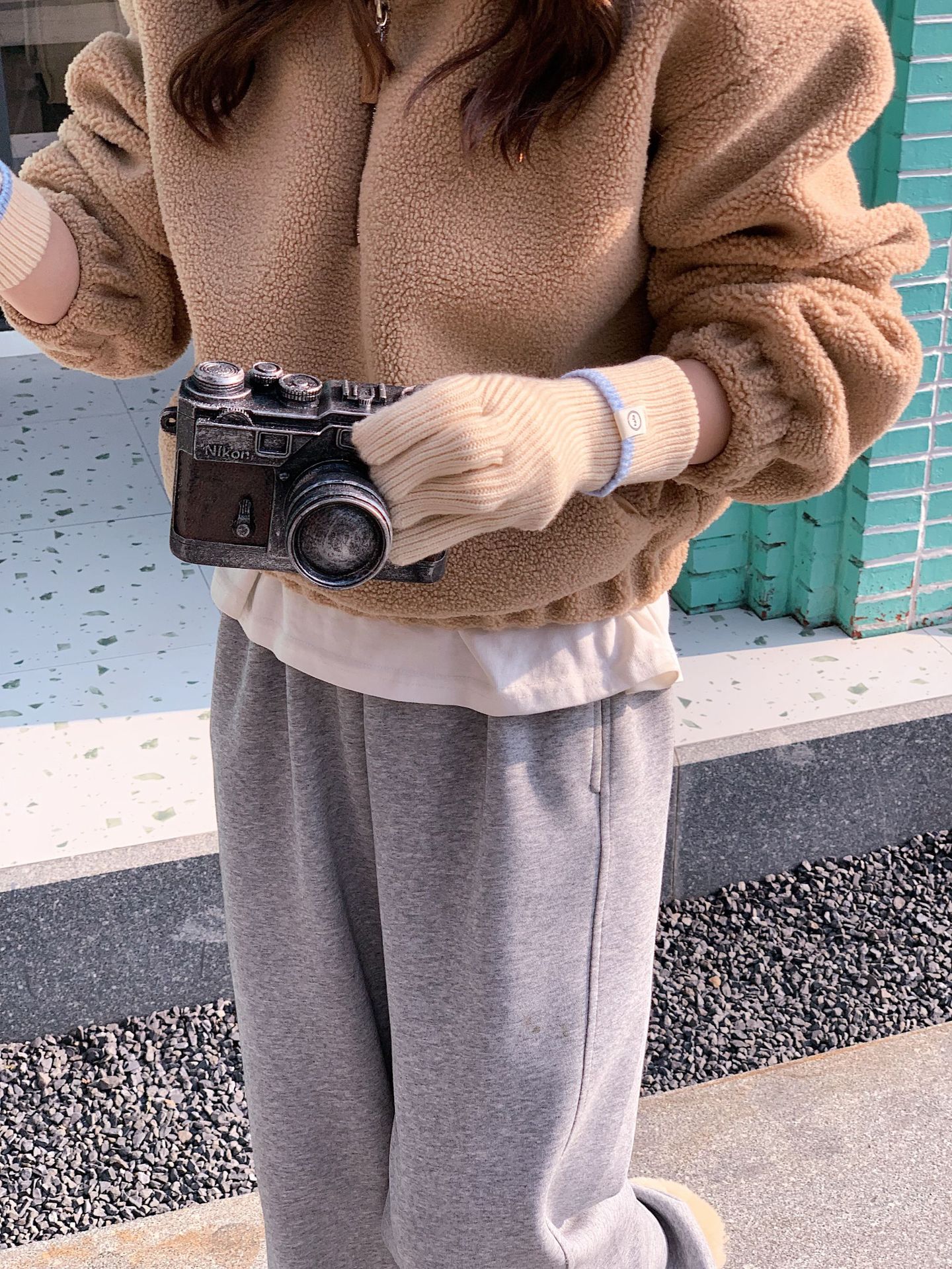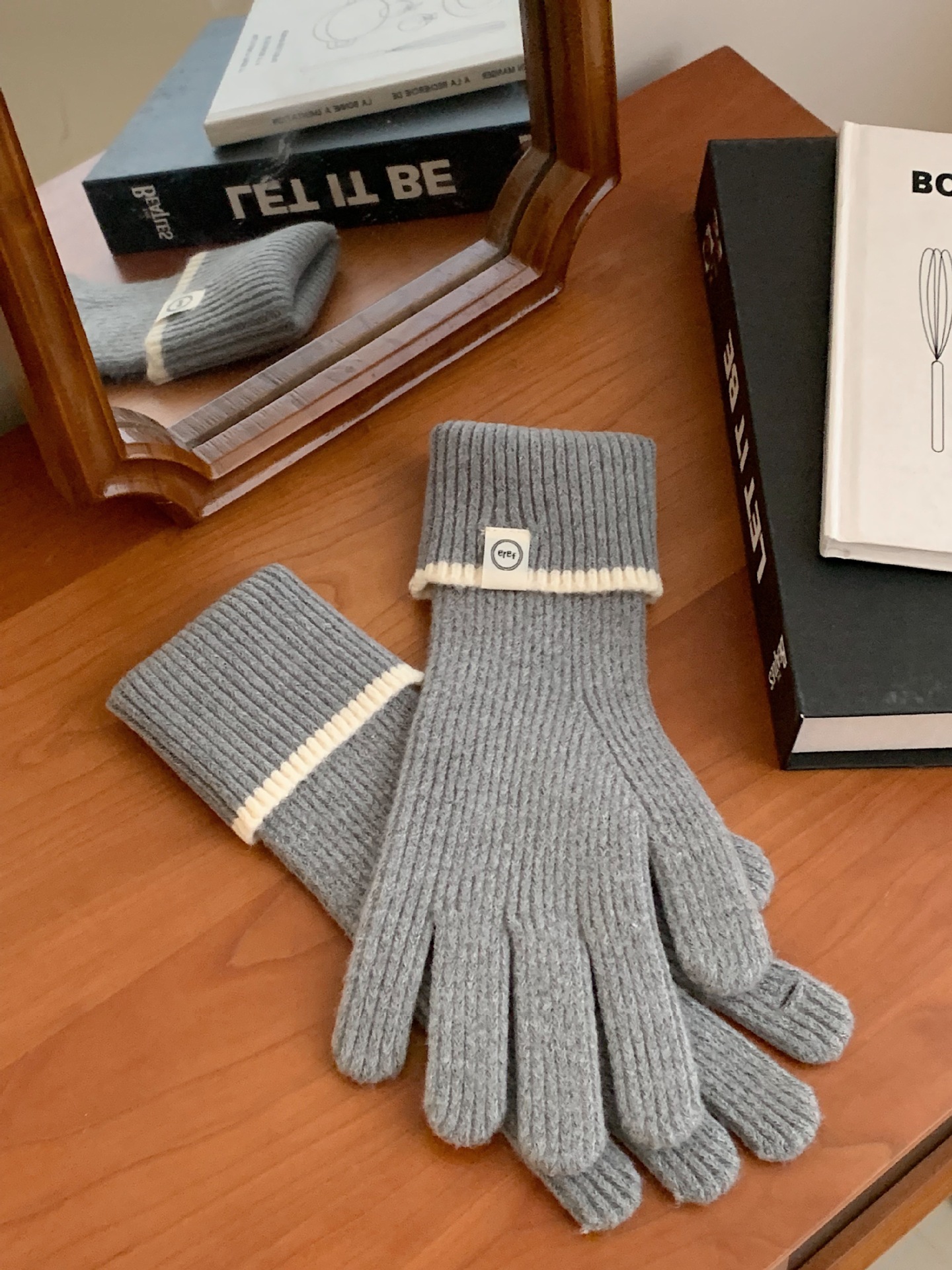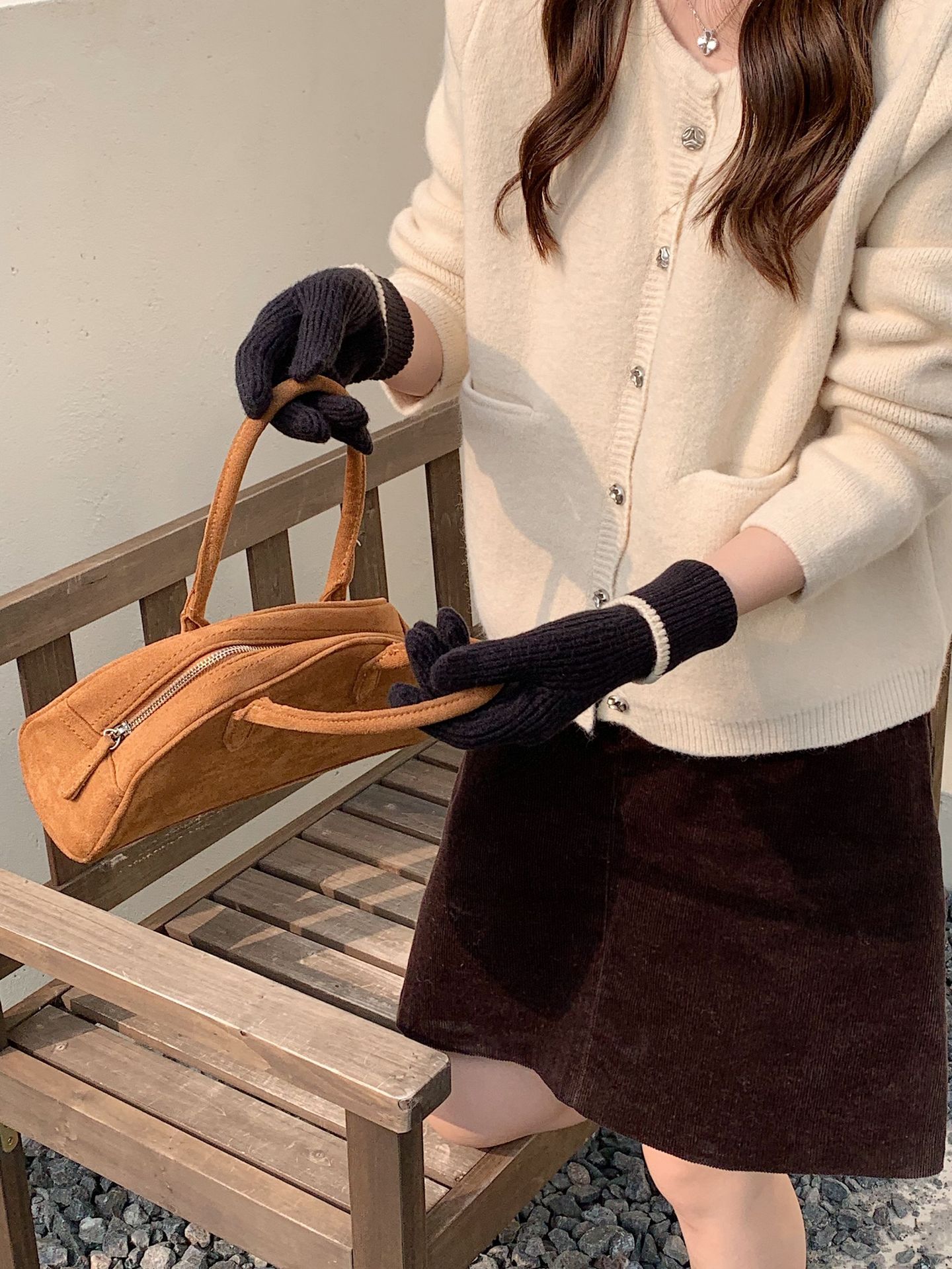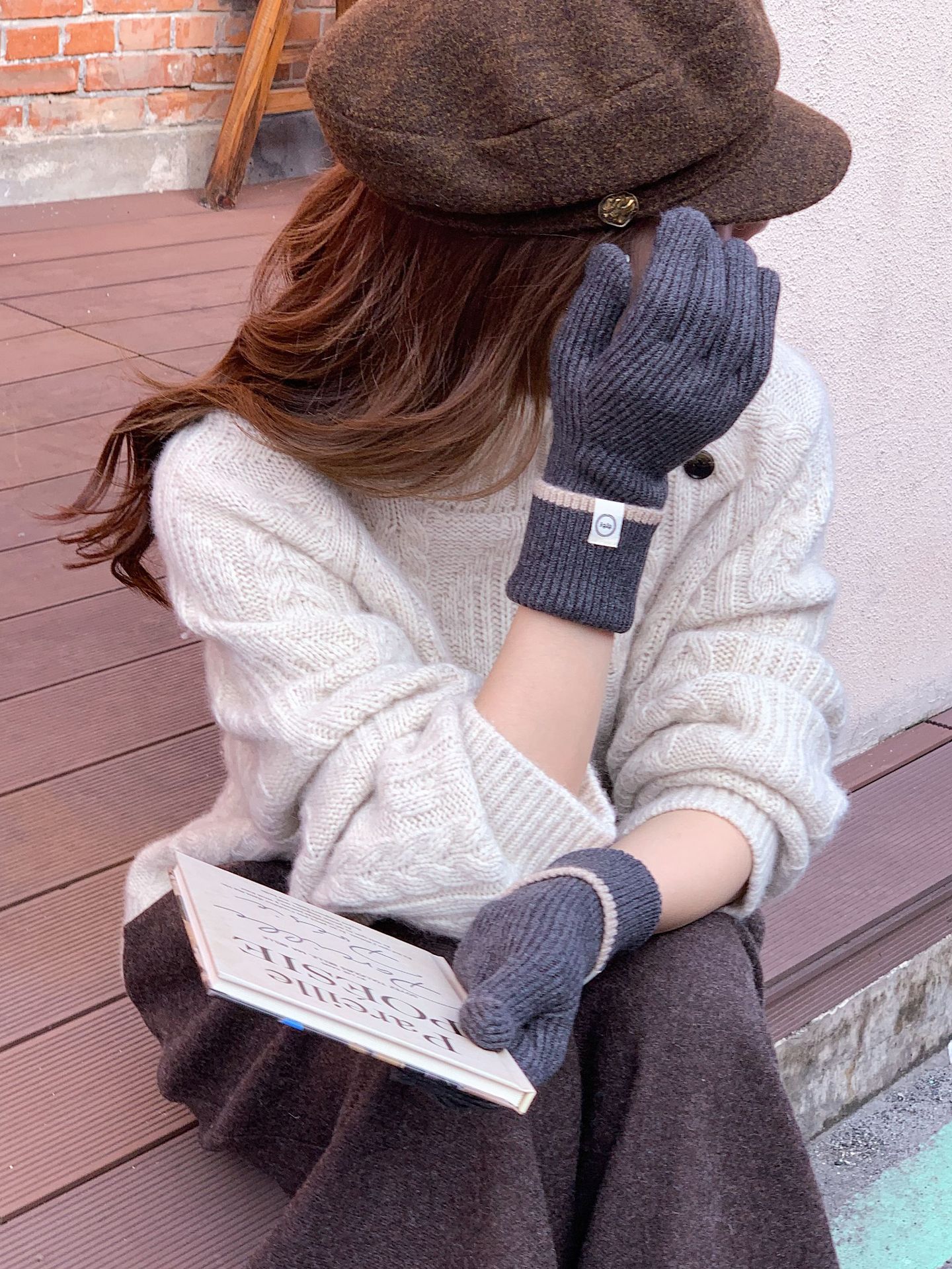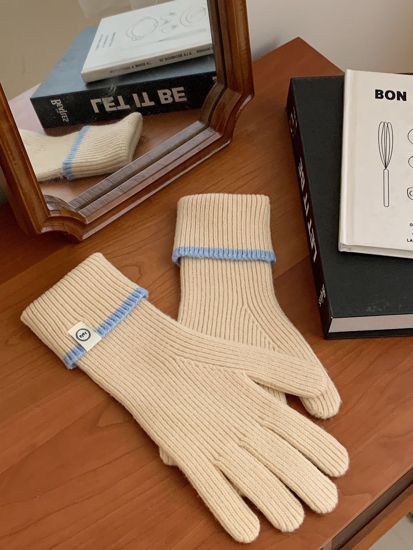 Nuevo guante coreano de moda etiquetado de lana panda guante de punto de motocicleta de otoño y invierno guante de muñeca caliente