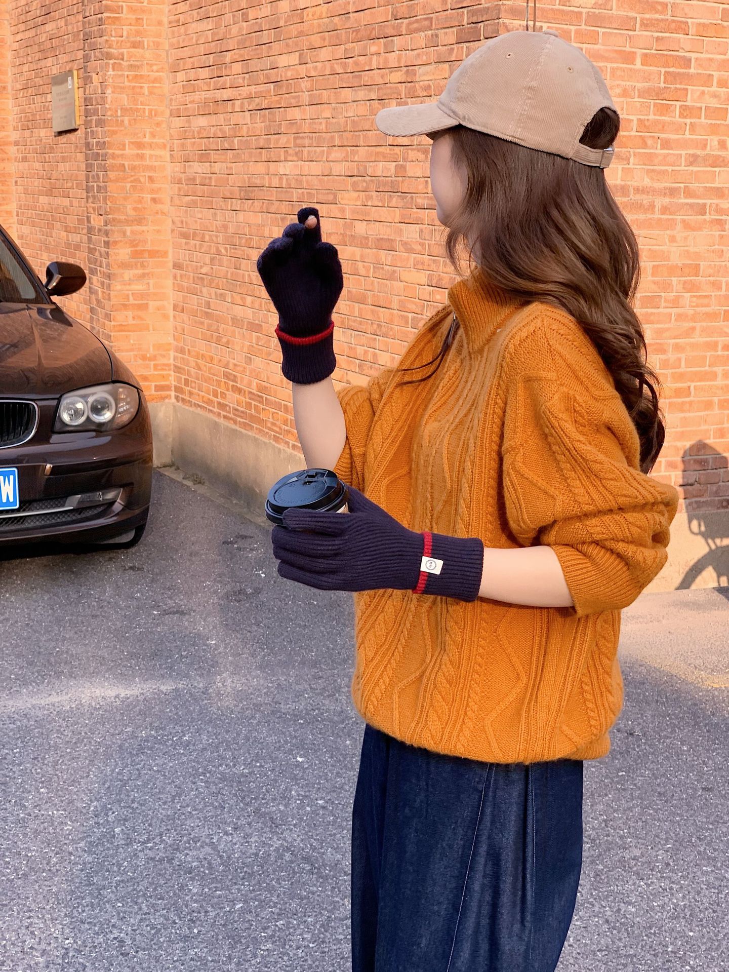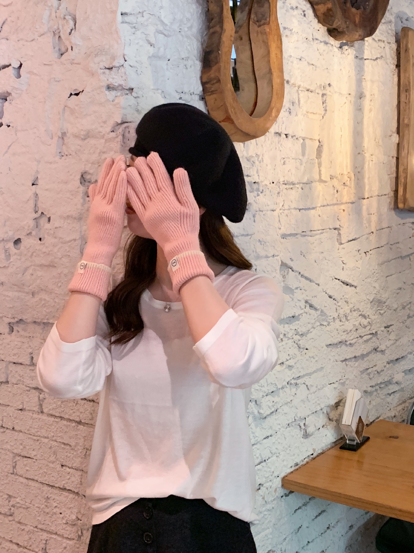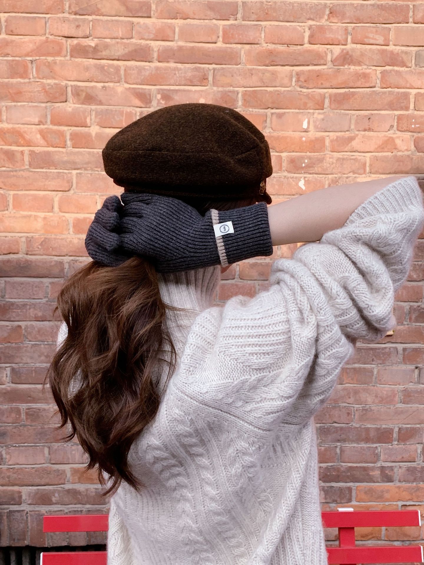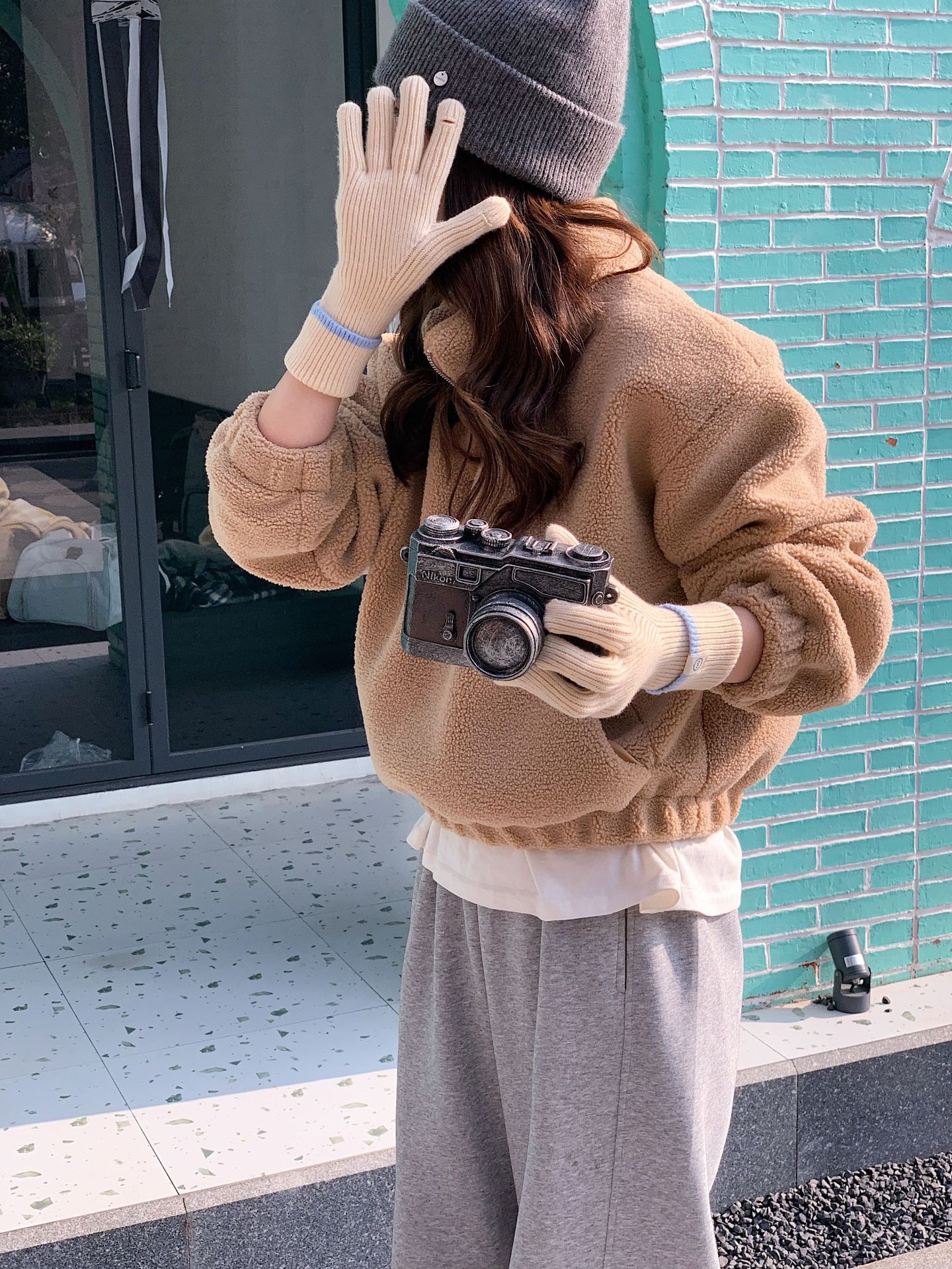 Nuevo guante coreano de moda etiquetado de lana panda guante de punto de motocicleta de otoño y invierno guante de muñeca caliente