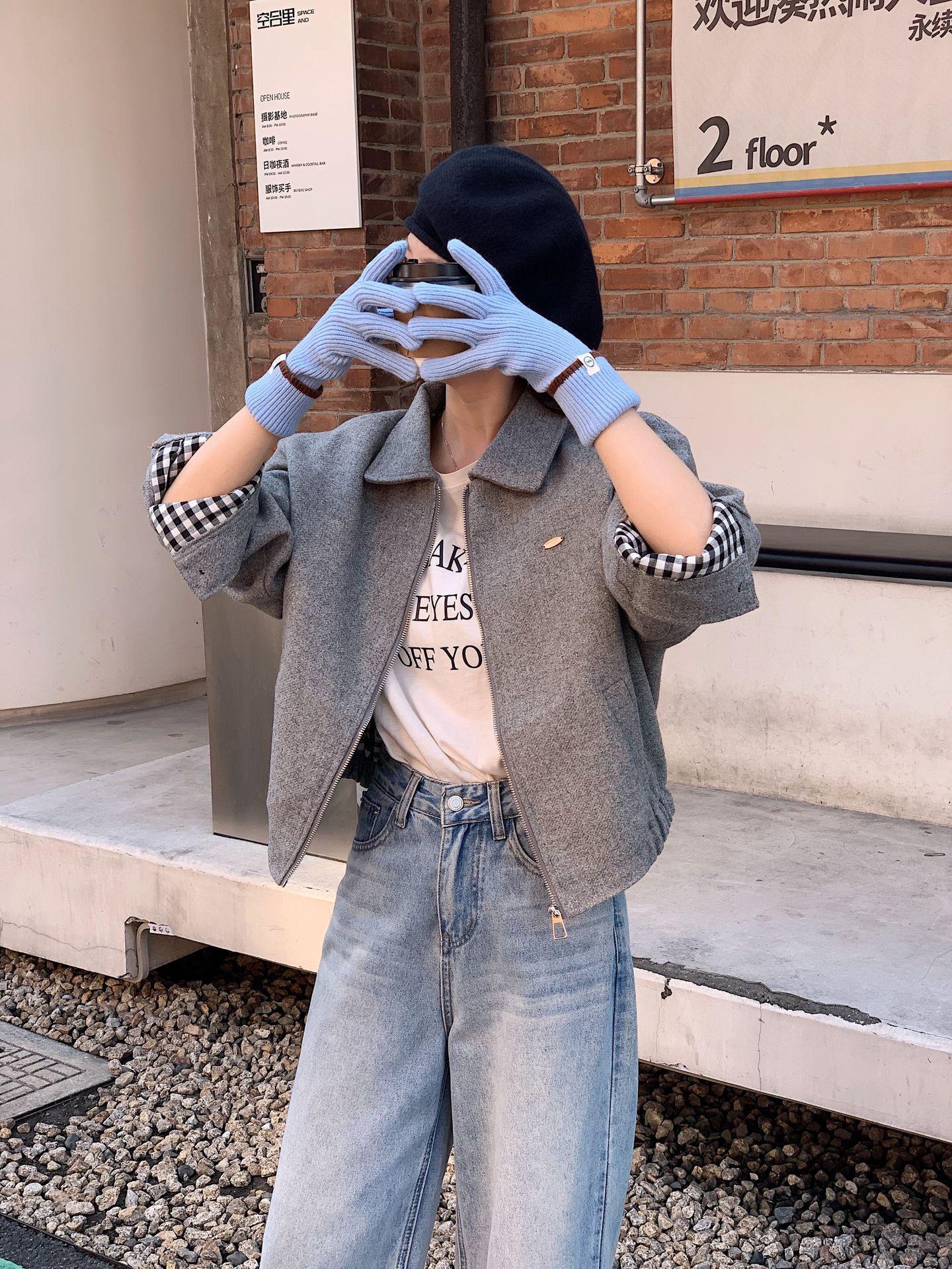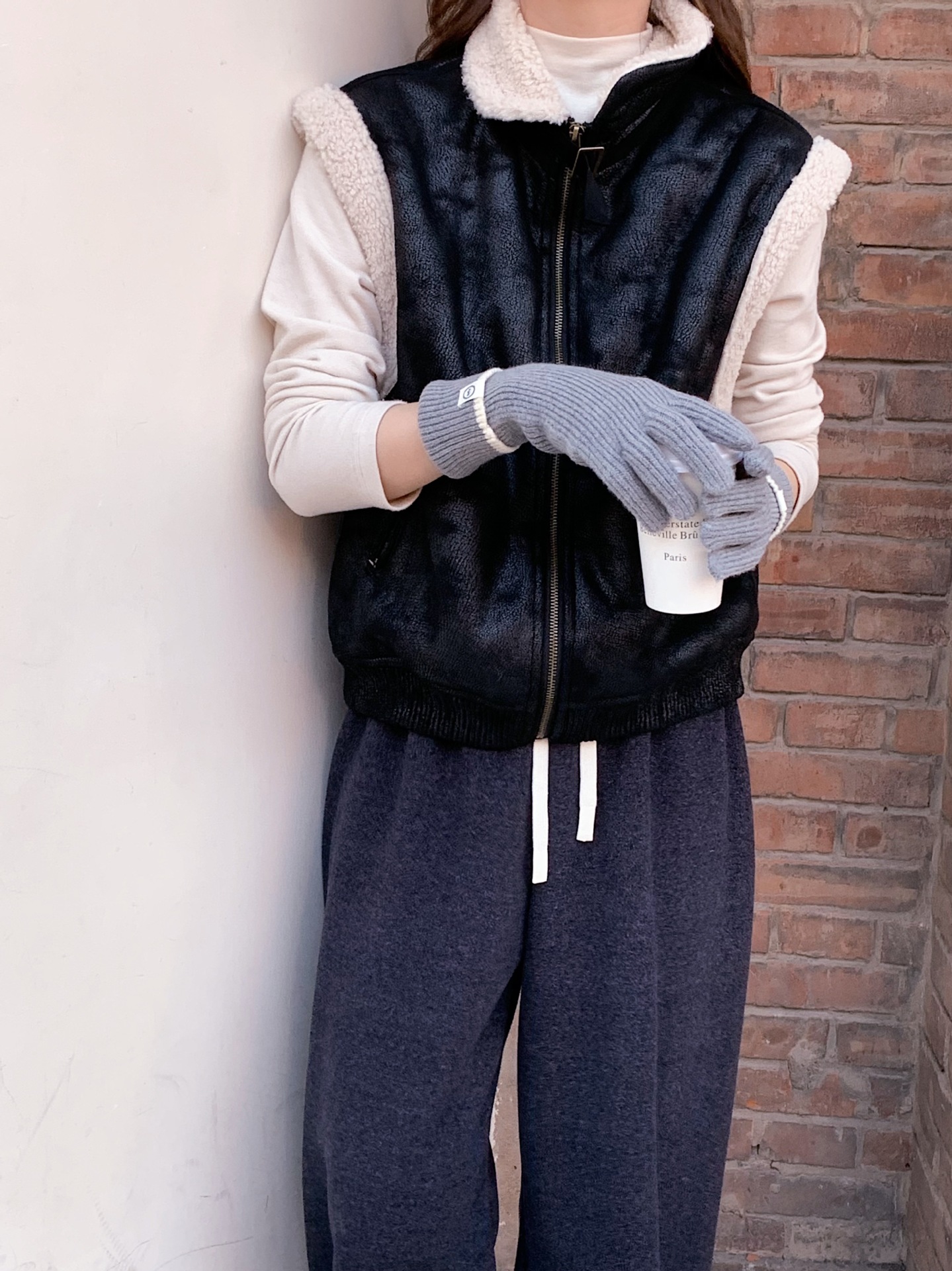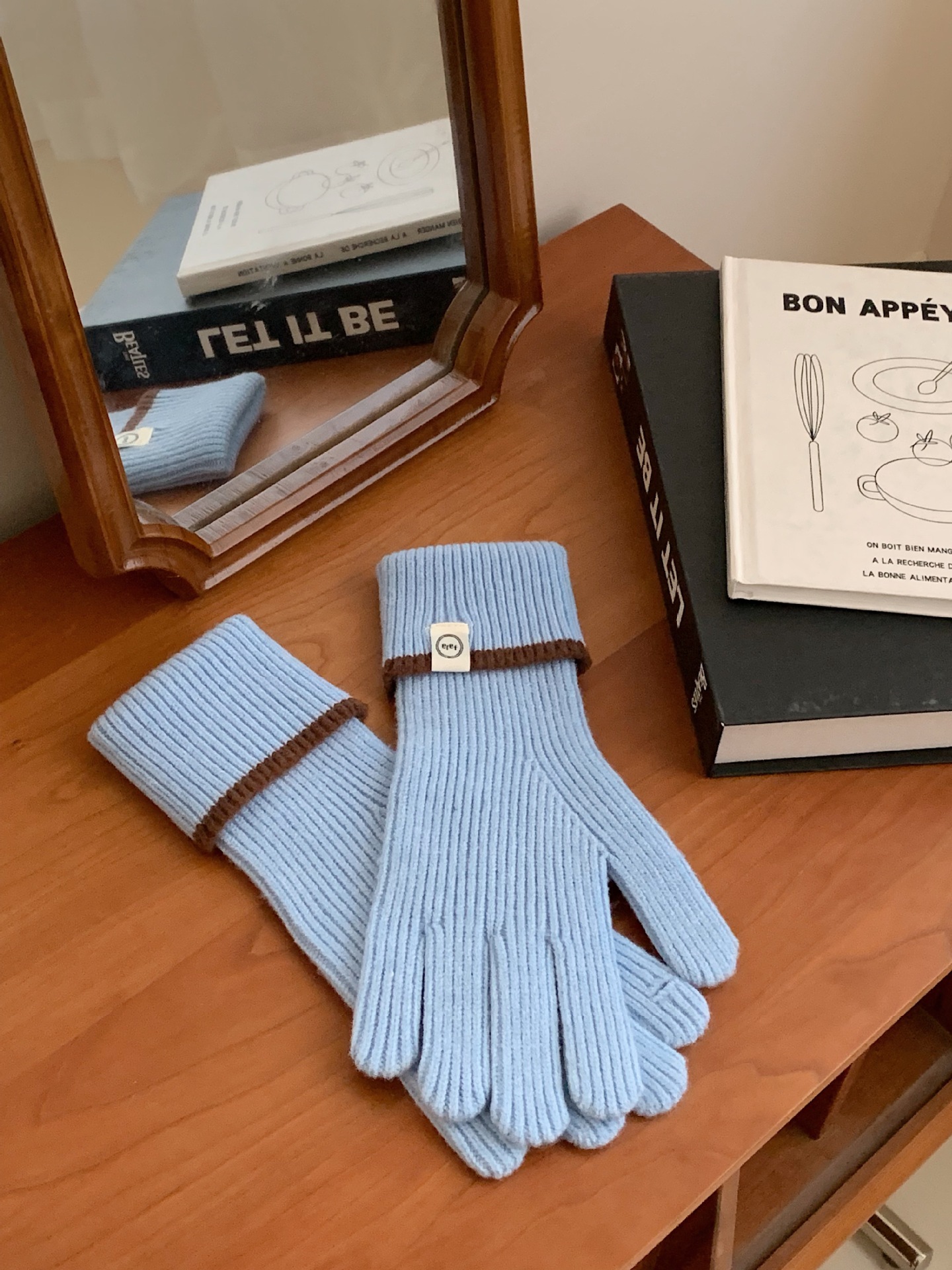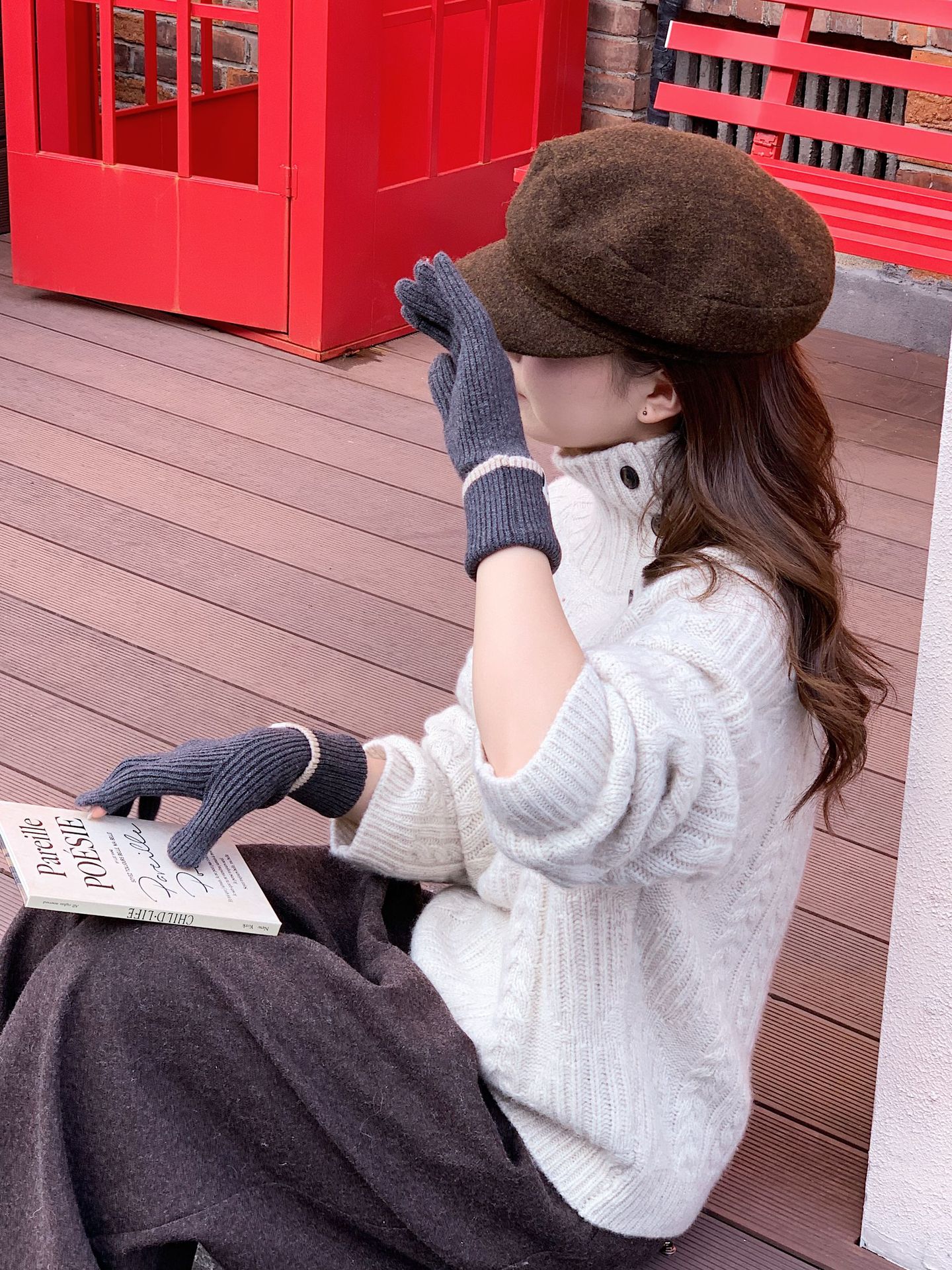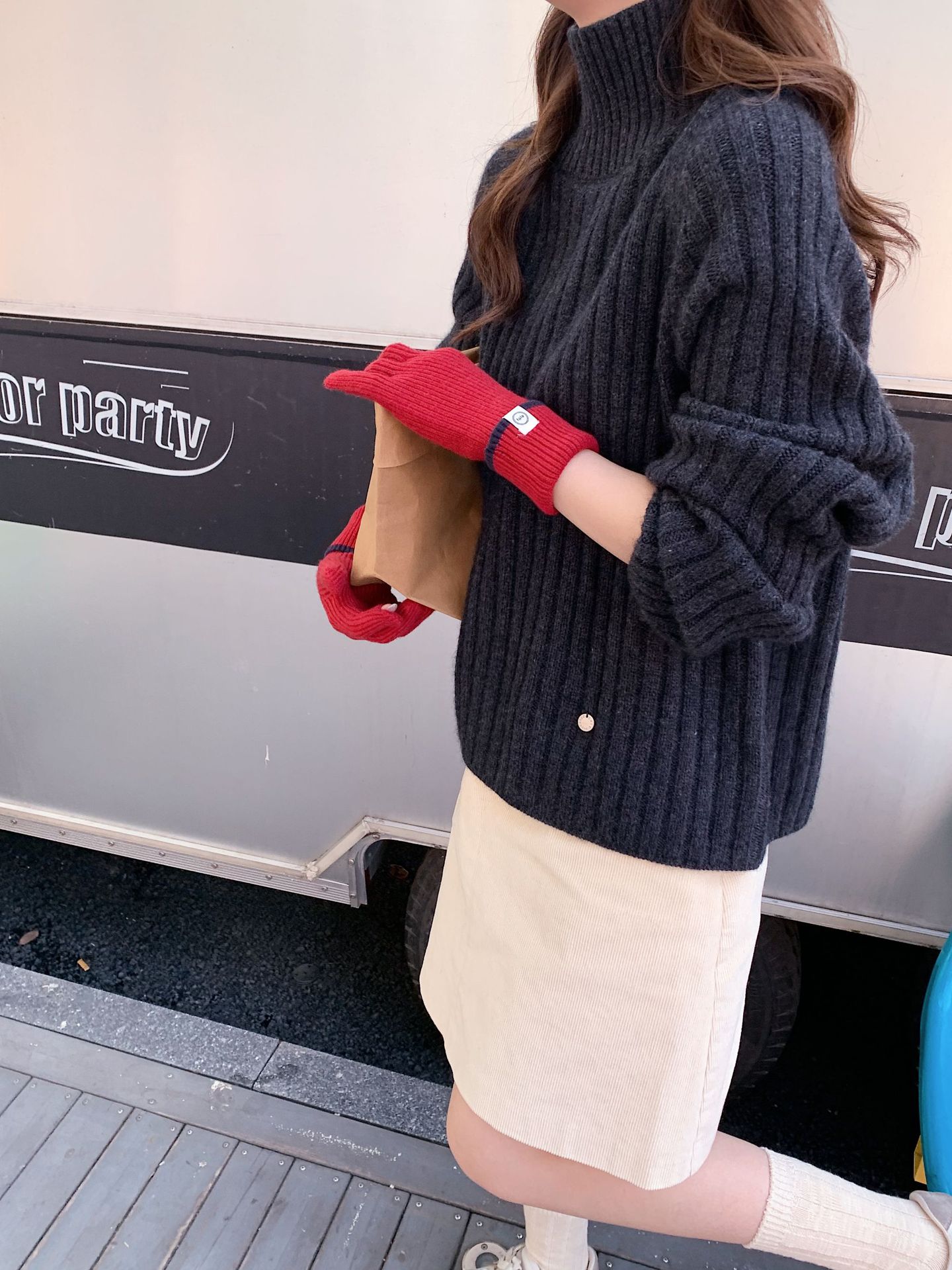 Nuevo guante coreano de moda etiquetado de lana panda guante de punto de motocicleta de otoño y invierno guante de muñeca caliente