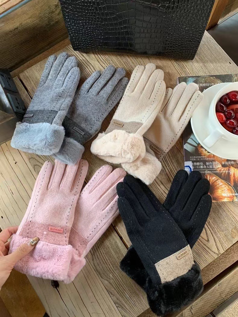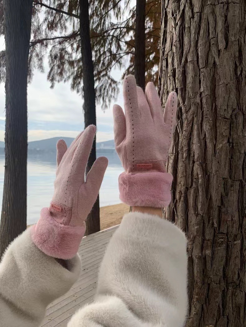 Otoño y invierno guantes cálidos para mujeres de terciopelo más grueso pantalla táctil para montar al aire libre guantes de moda a prueba de viento