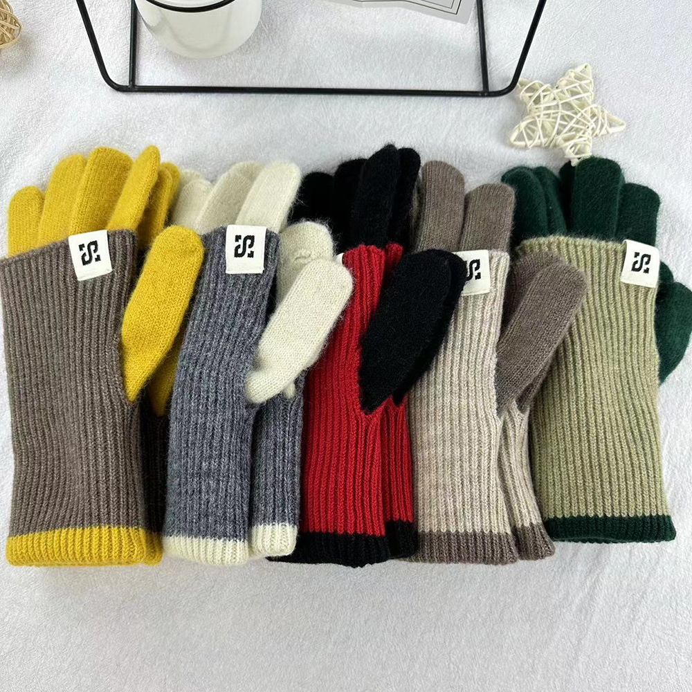 Moda de color dulce lana de punto largo guantes calientes gruesos guantes de moda de bicicleta al por mayor