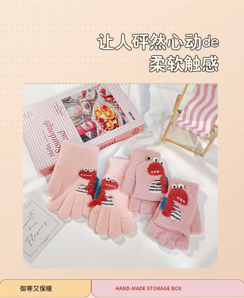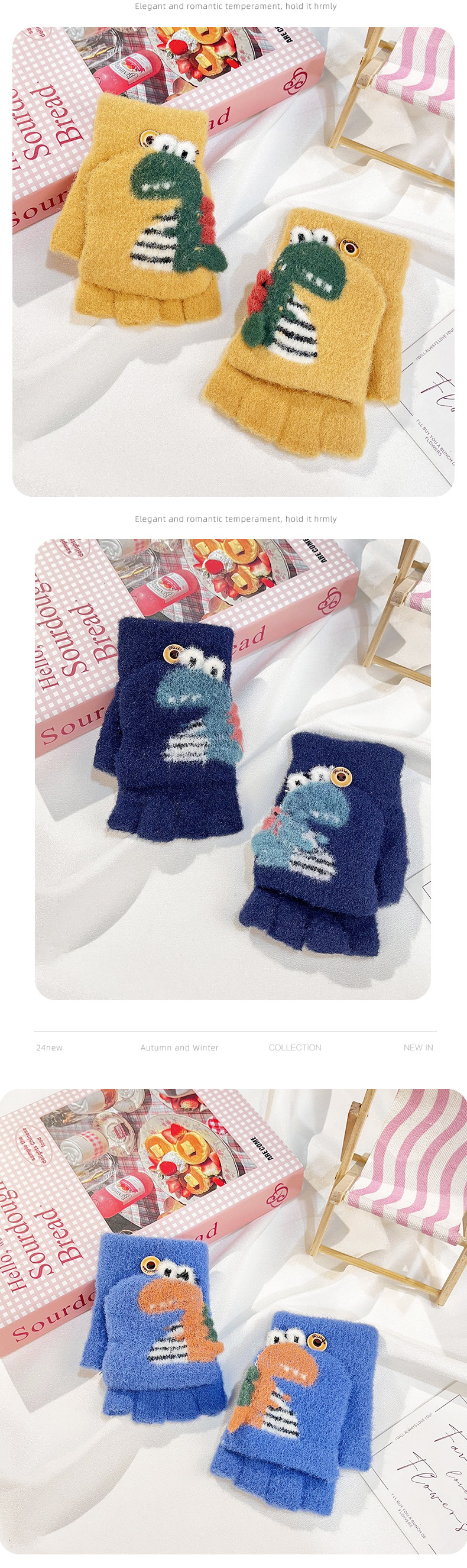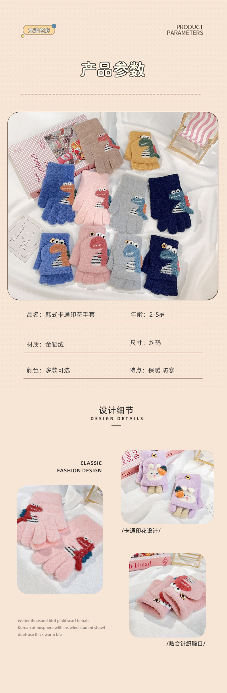 Impresión de dibujos animados coreanos dinosaurios guantes de niños lindos ociosos tejidos gruesos flip-up escritura guantes de cinco dedos