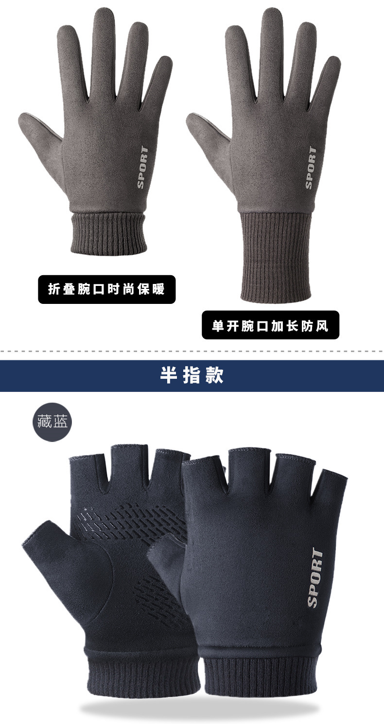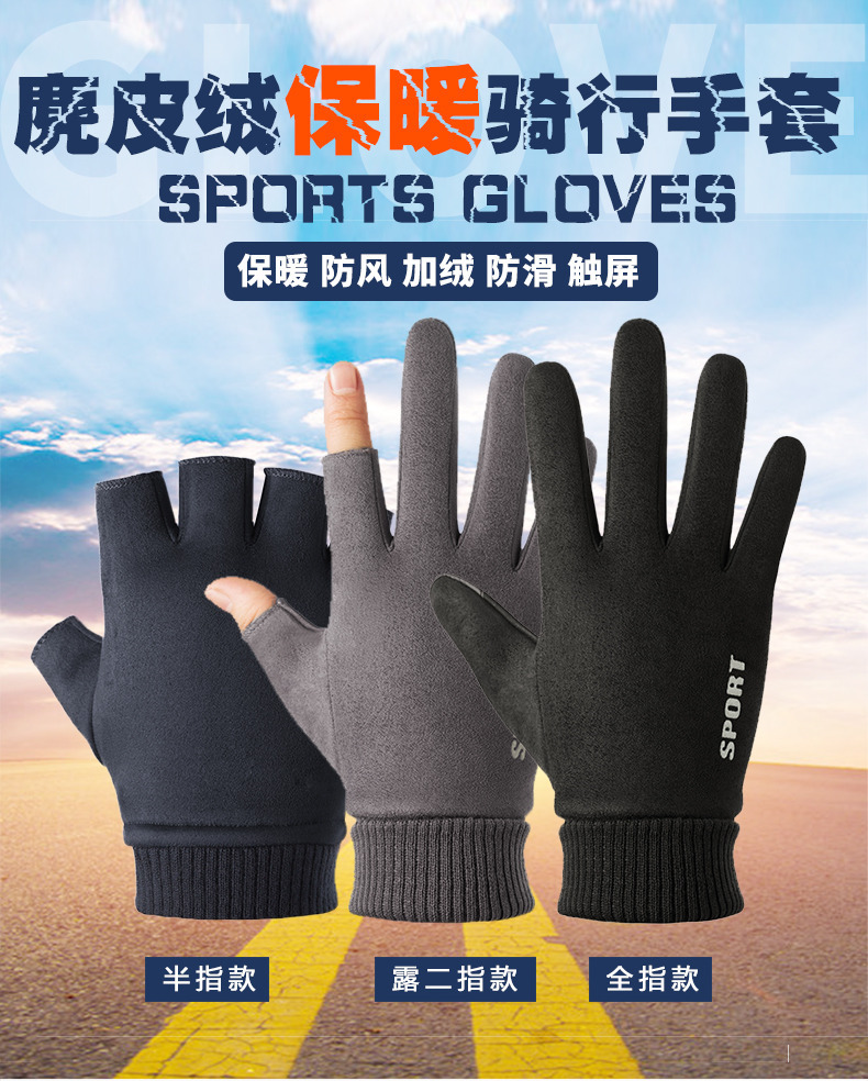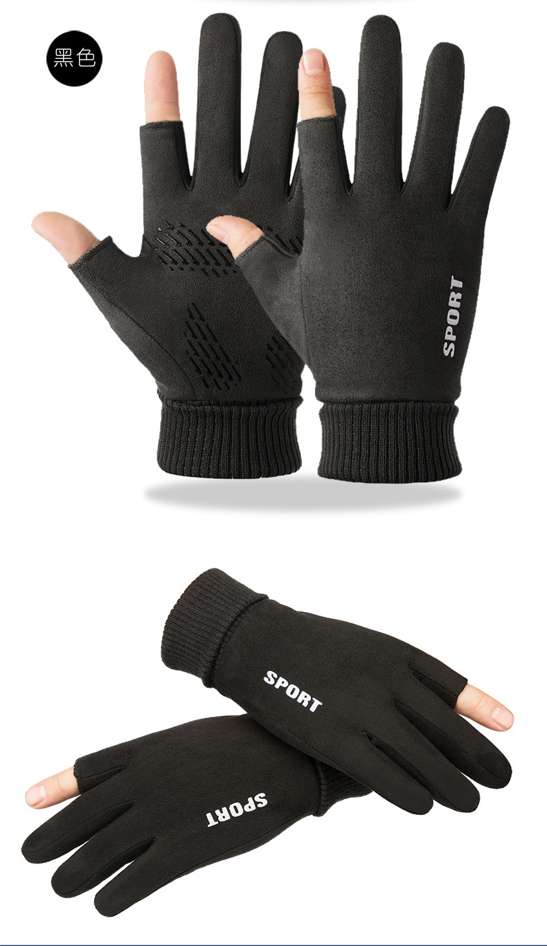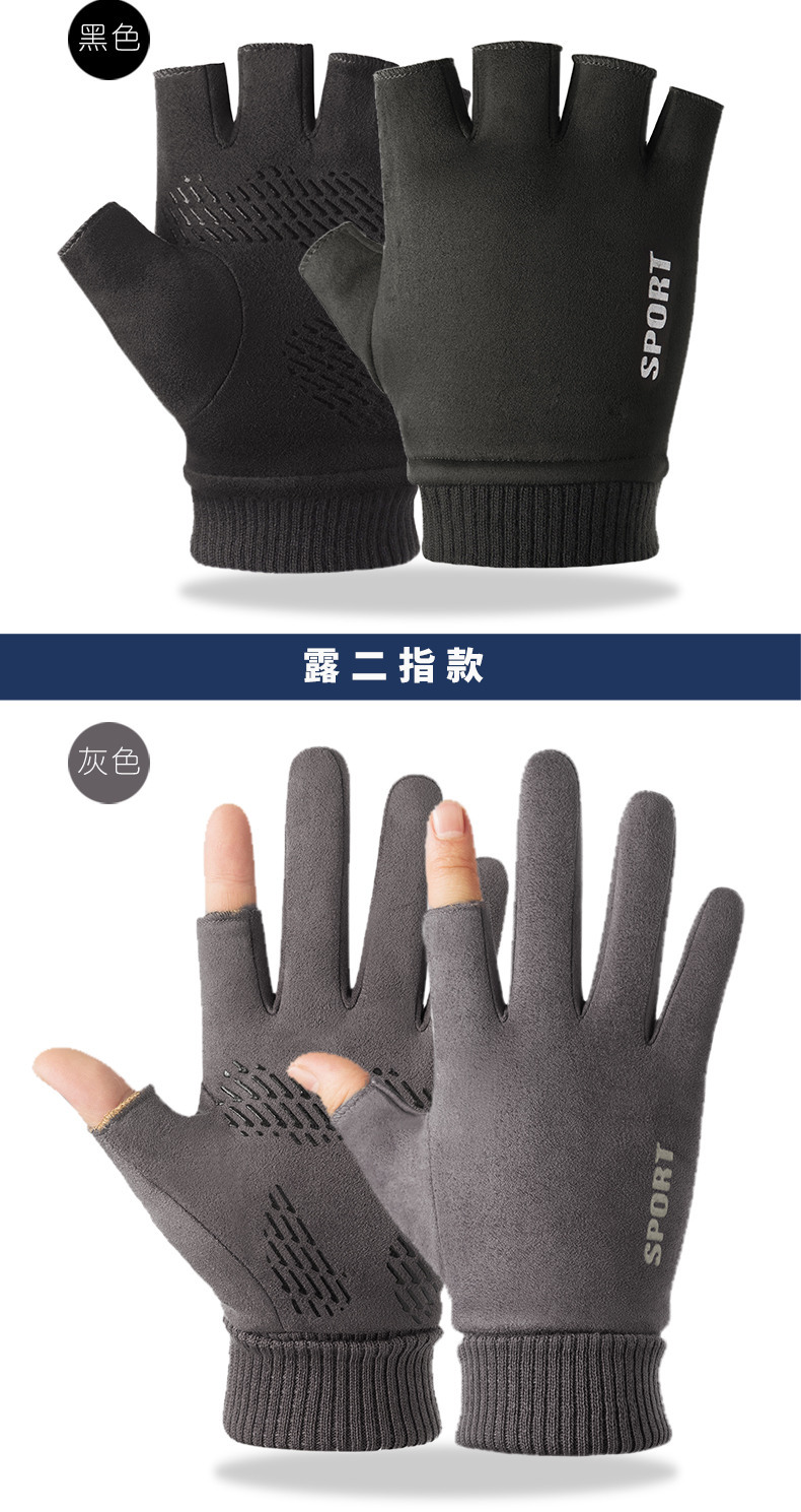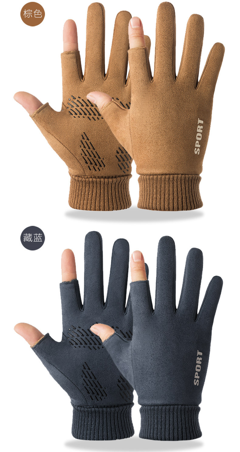 Guantes térmicos gamuza hombres y mujeres forrados de lana al aire libre conducción antideslizante dos dedos medio dedo pantalla táctil Otoño e Invierno guantes