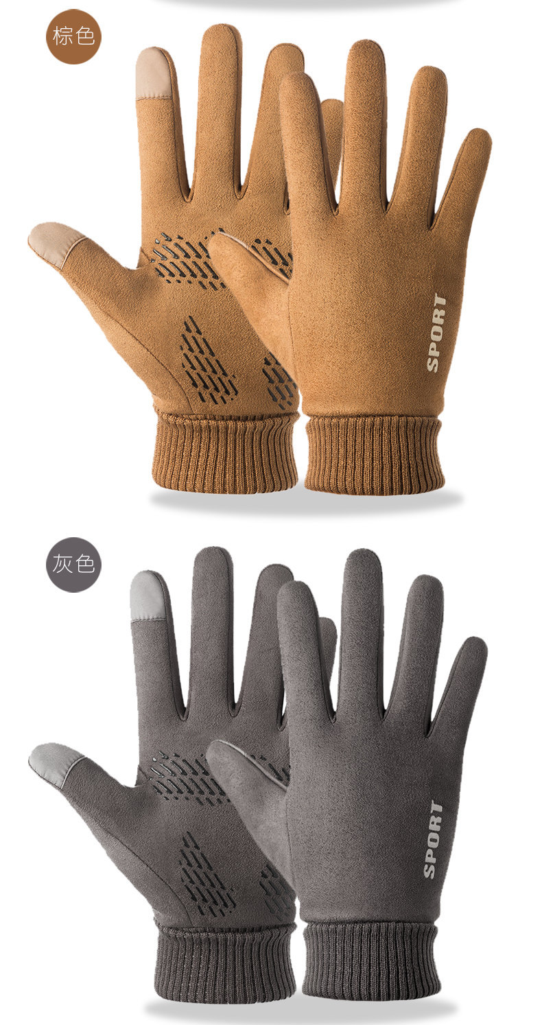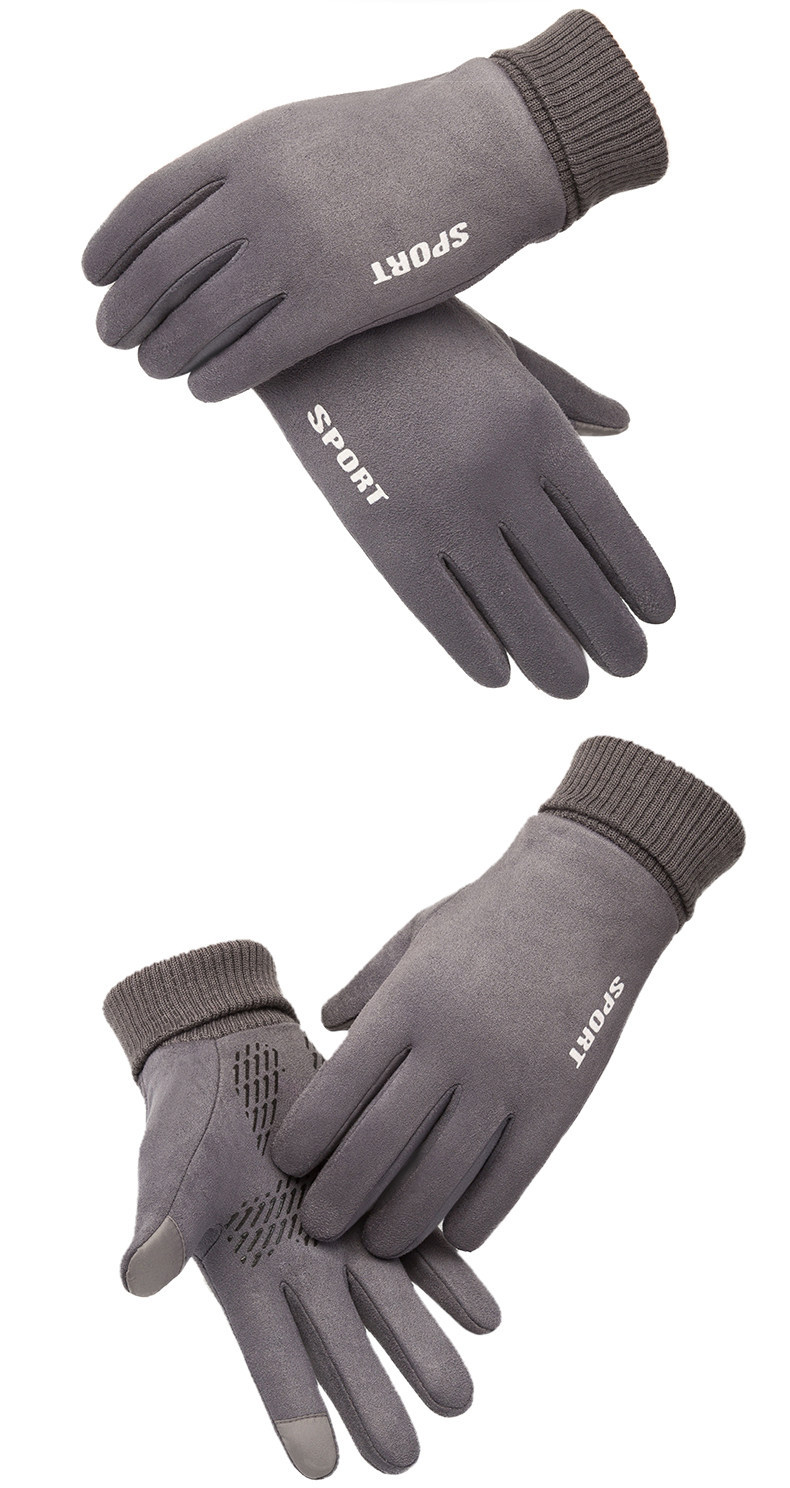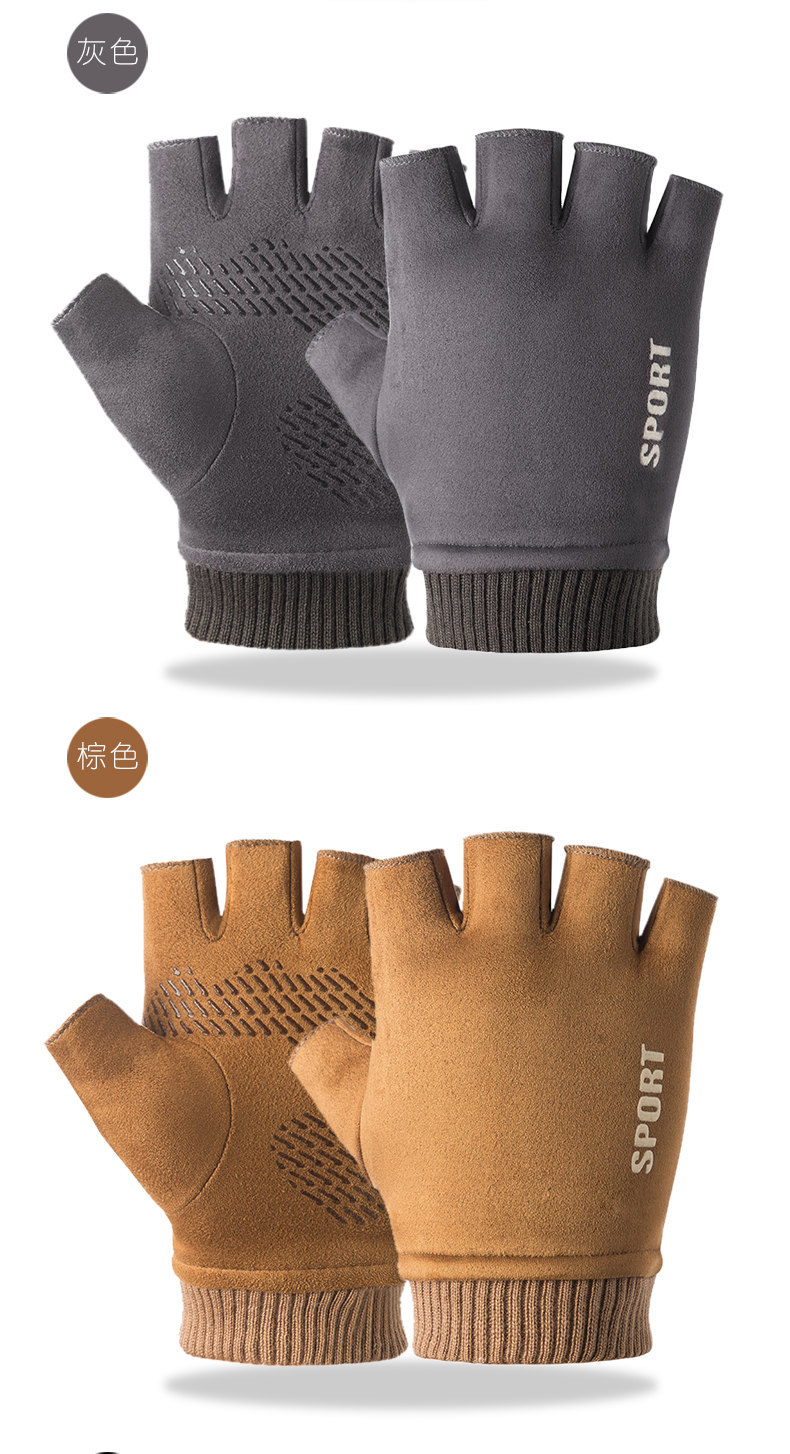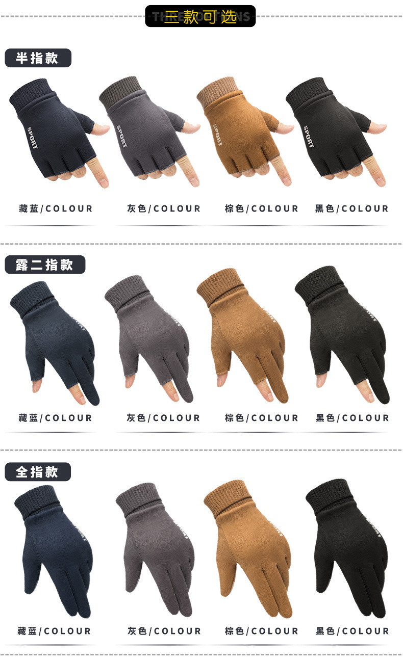 Guantes térmicos gamuza hombres y mujeres forrados de lana al aire libre conducción antideslizante dos dedos medio dedo pantalla táctil Otoño e Invierno guantes