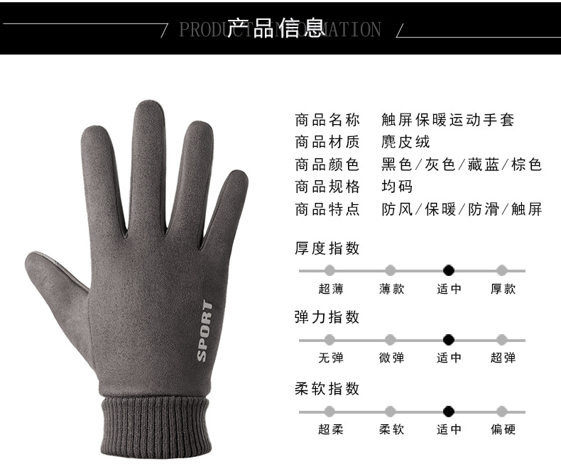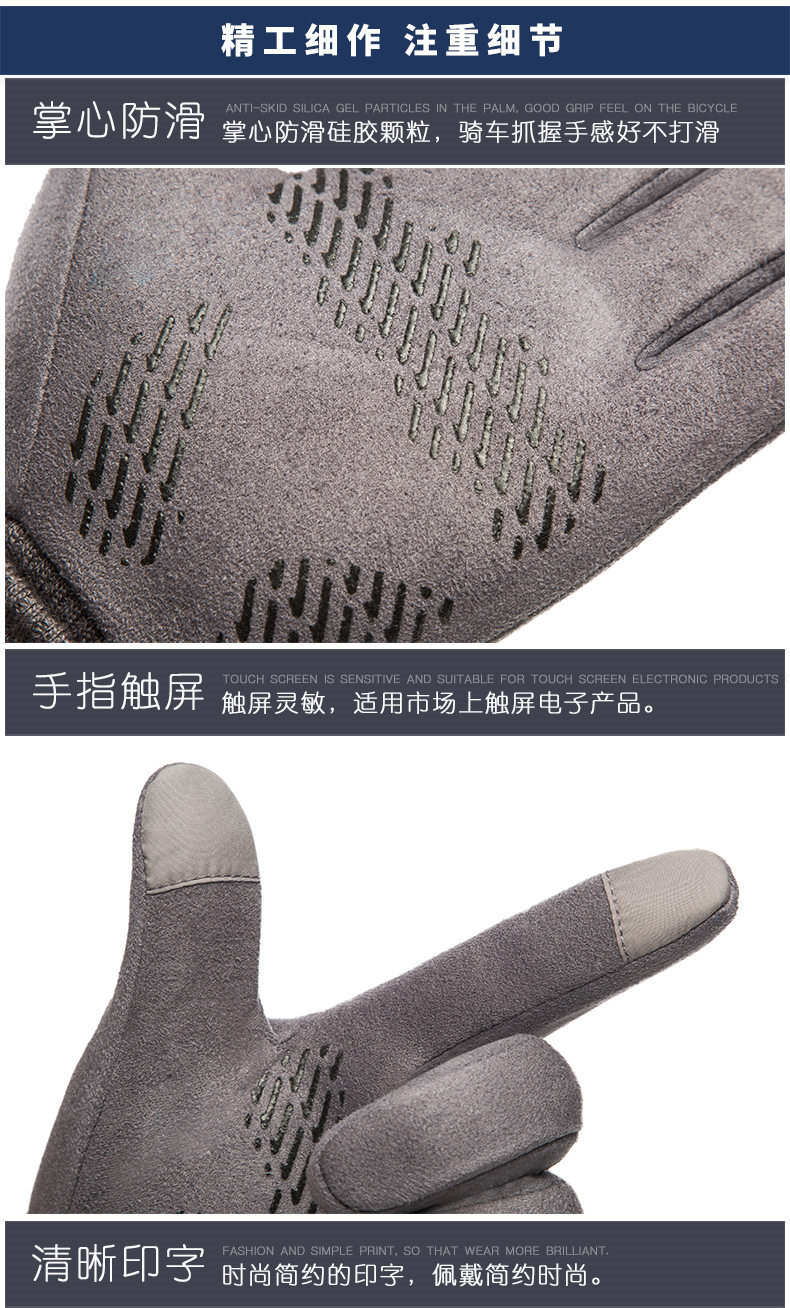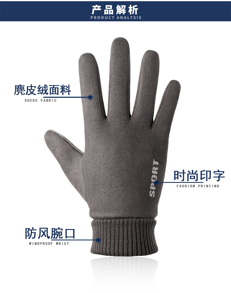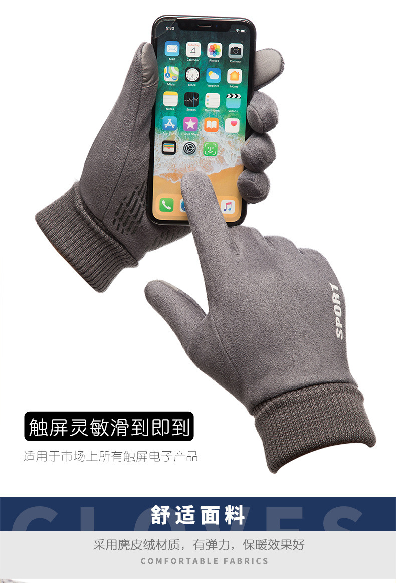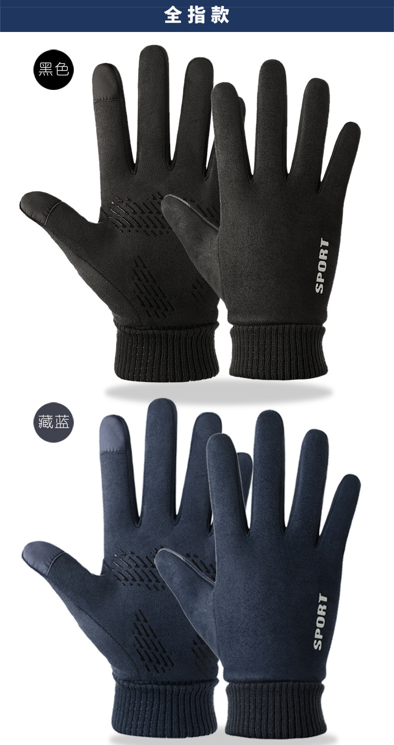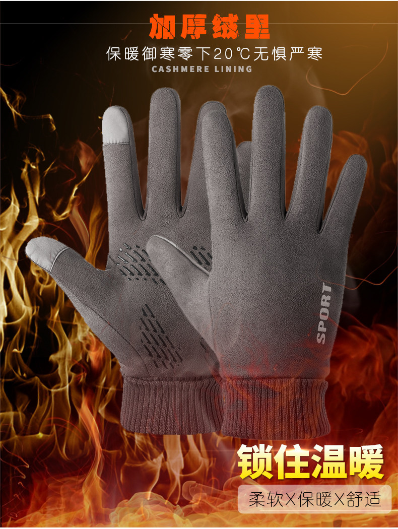 Guantes térmicos gamuza hombres y mujeres forrados de lana al aire libre conducción antideslizante dos dedos medio dedo pantalla táctil Otoño e Invierno guantes