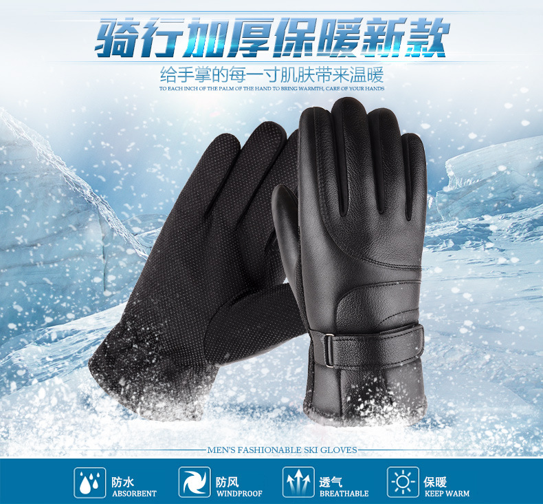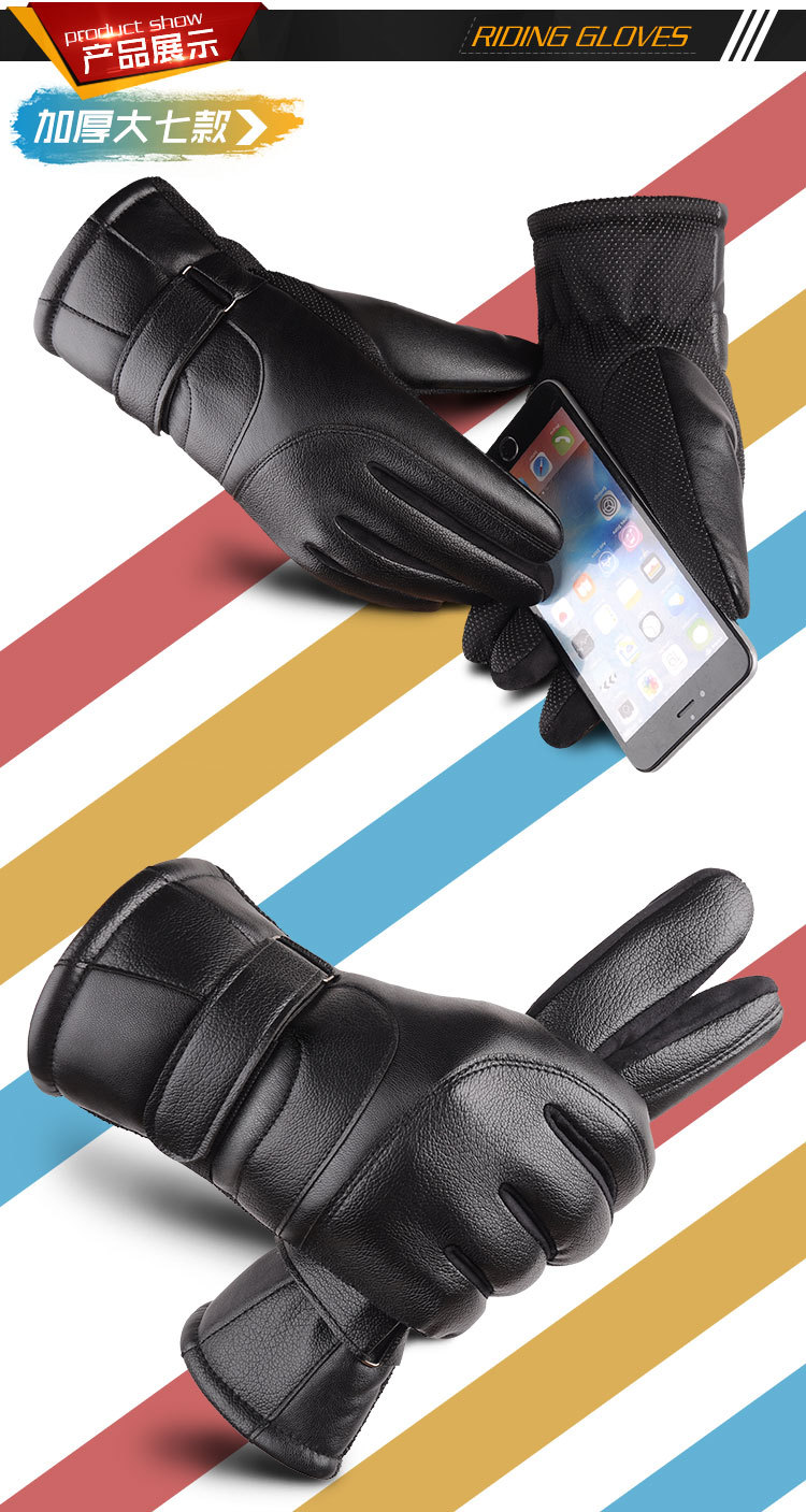 Guantes de cuero de pantalla táctil para hombres y mujeres forrados de lana engrosados otoño e invierno cálido a prueba de frío a prueba de viento guantes de algodón de motocicleta