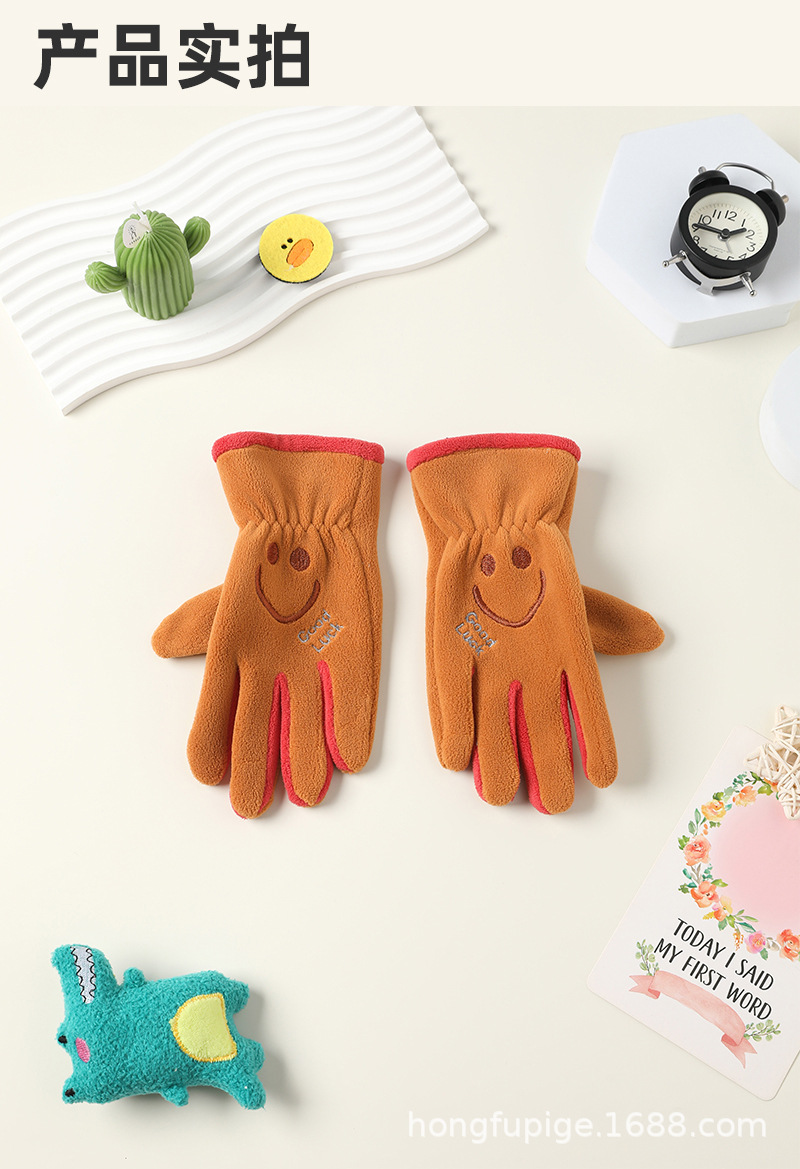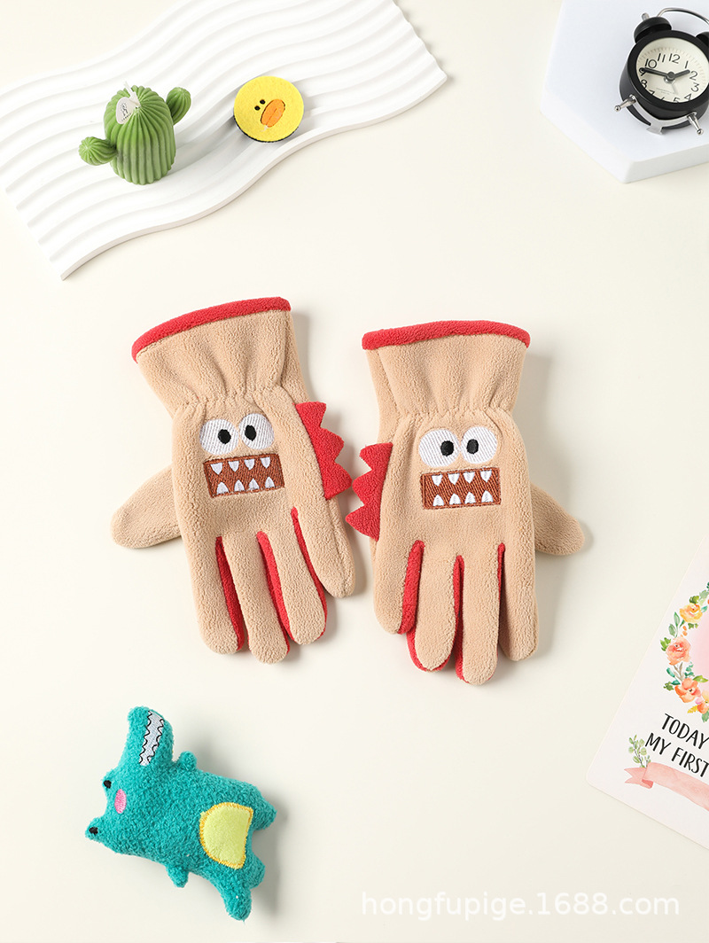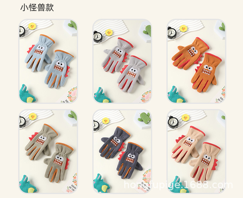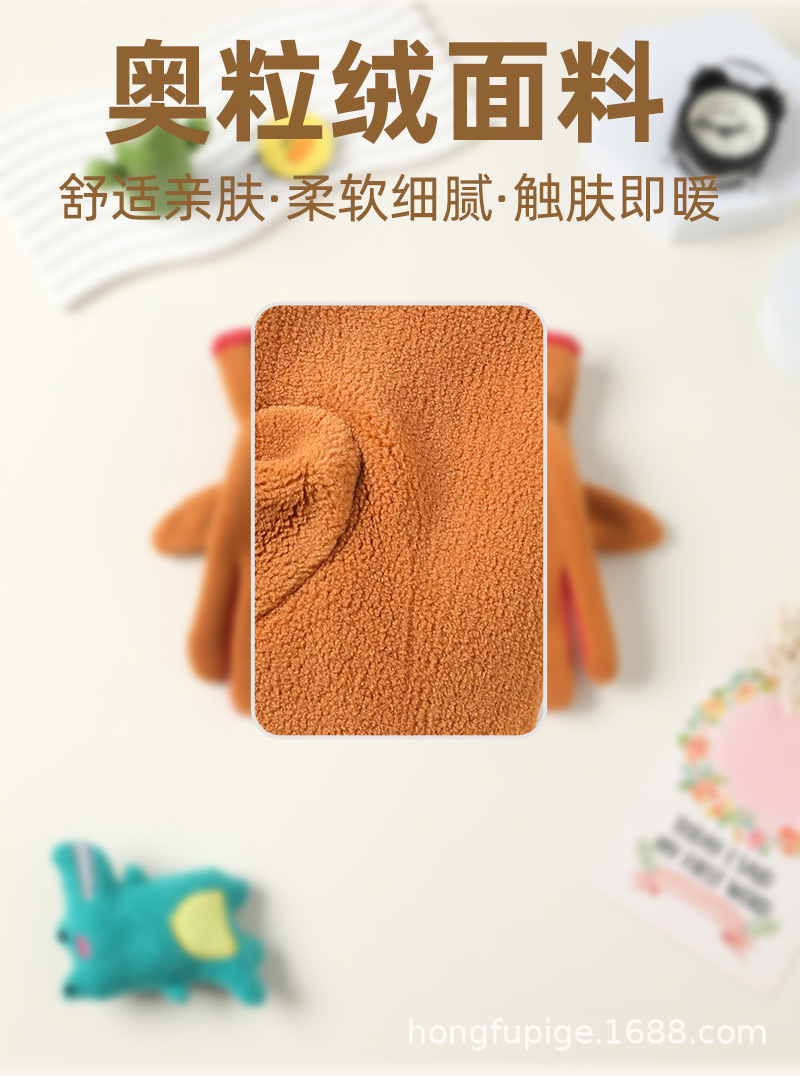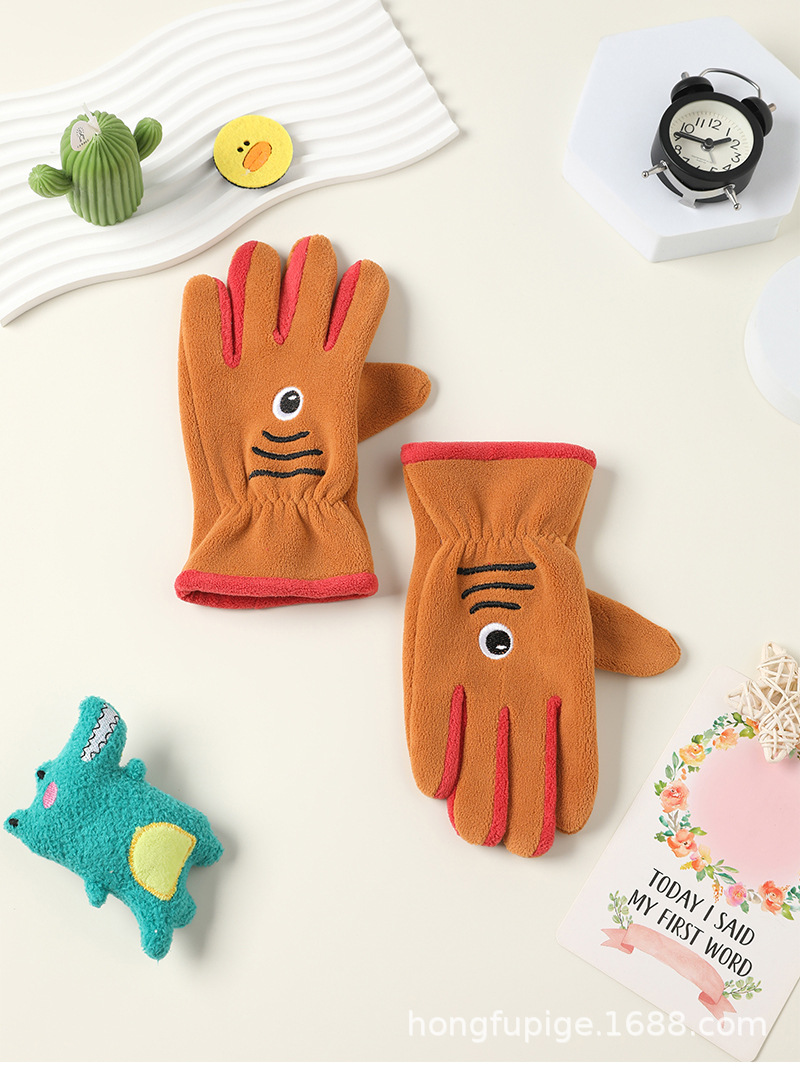 Niños y niñas con guantes de dibujos animados en otoño y invierno, estudiantes de vello de grano olímpico para montar al aire libre, guantes de dibujos animados cálidos a prueba de frío