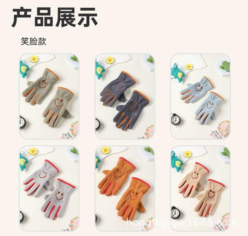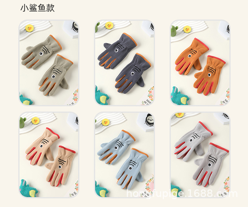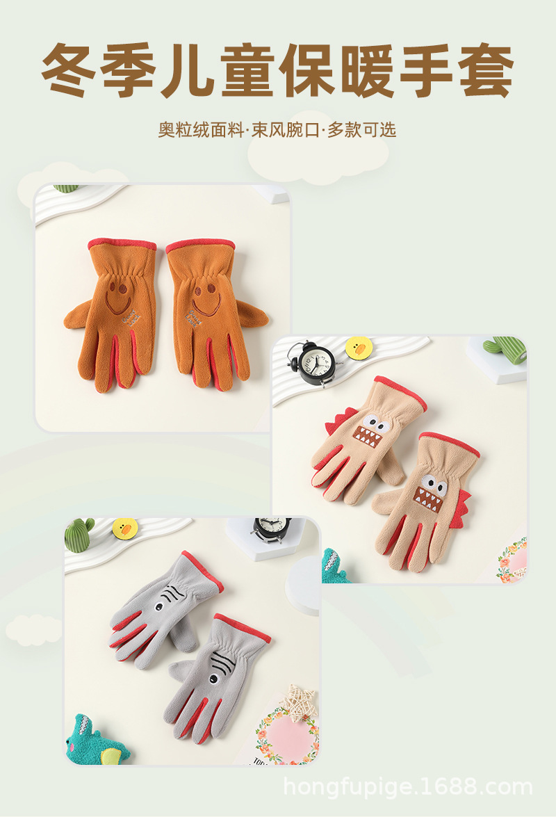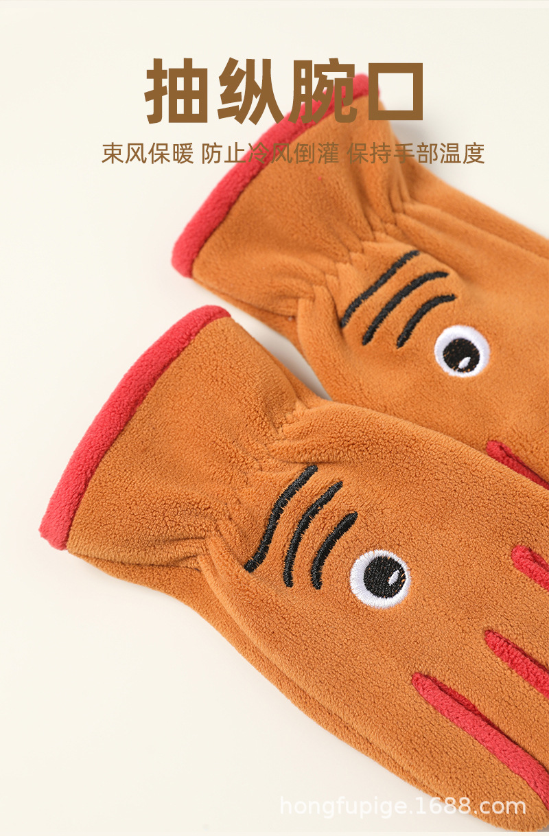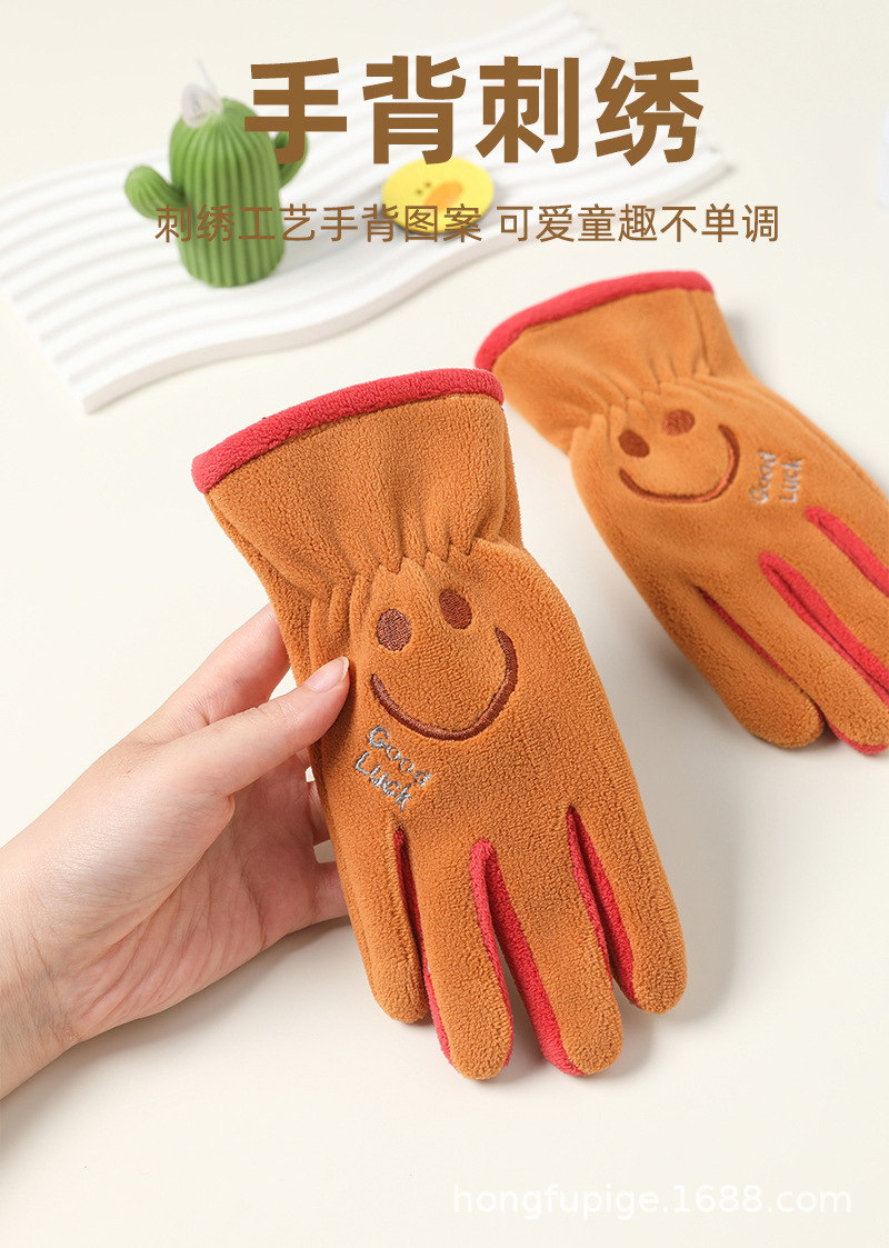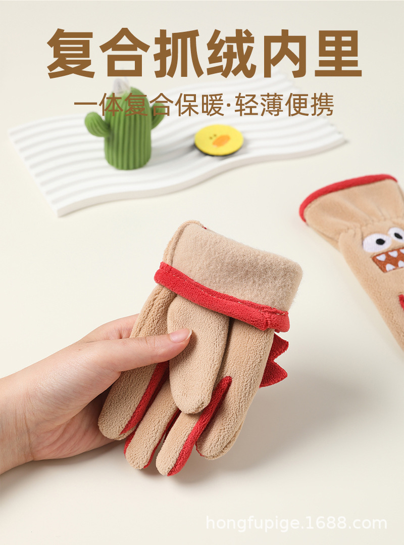 Niños y niñas con guantes de dibujos animados en otoño y invierno, estudiantes de vello de grano olímpico para montar al aire libre, guantes de dibujos animados cálidos a prueba de frío