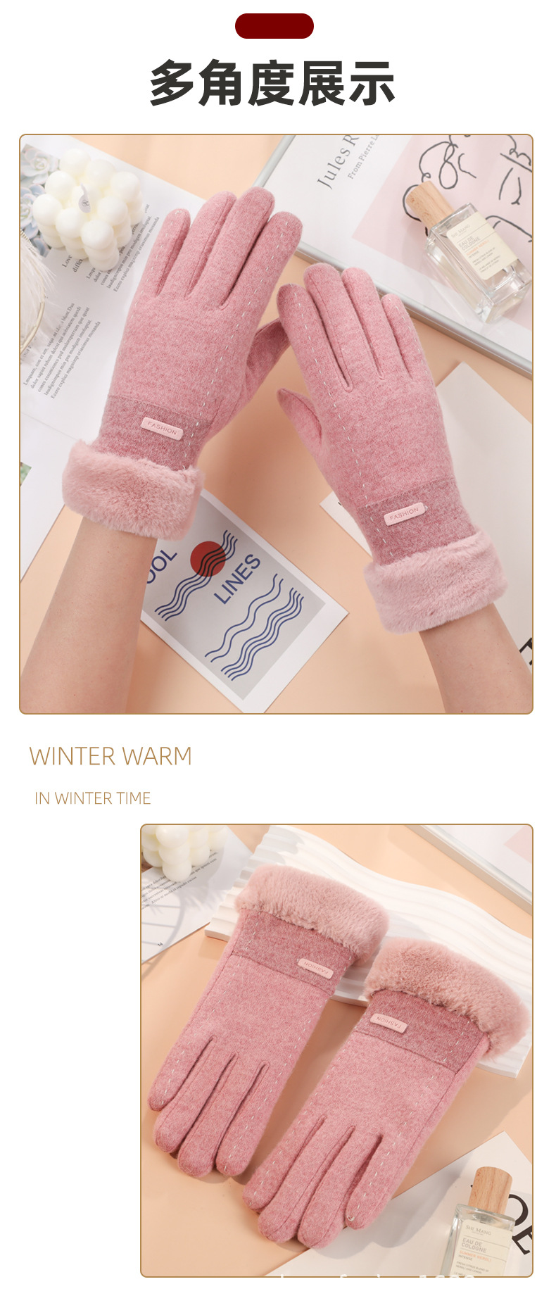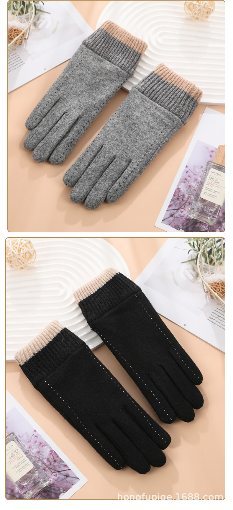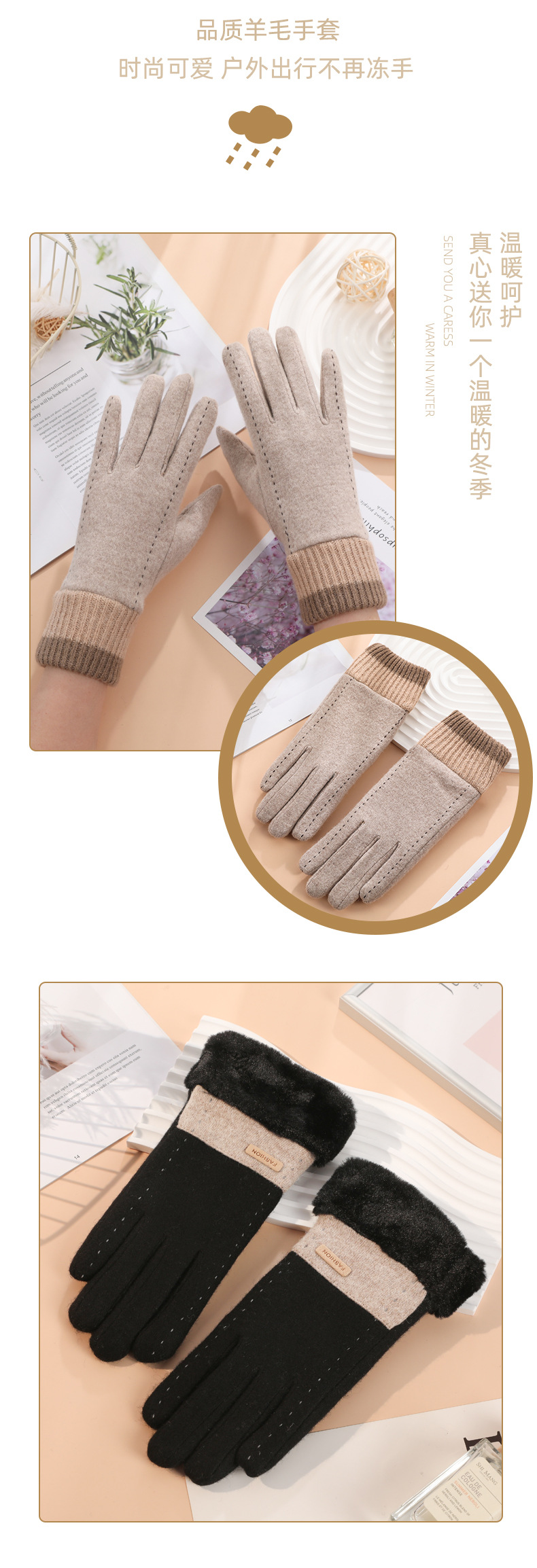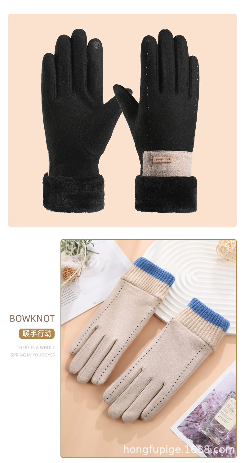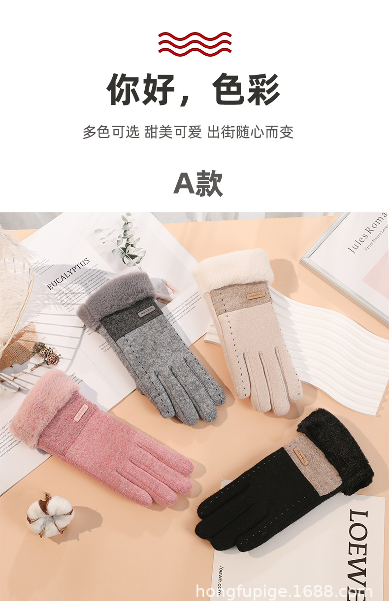 Guantes térmicos de lana de las mujeres de estilo coreano conducción a prueba de frío forro de lana engrosada al aire libre a prueba de viento ciclismo guantes de pantalla táctil de invierno