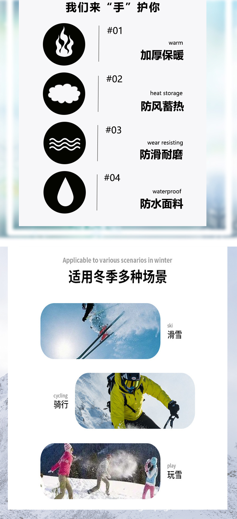 Guantes de esquí de invierno al aire libre hombres y mujeres forrados de lana engrosada antideslizante a prueba de frío montar coche eléctrico pantalla táctil guantes calientes