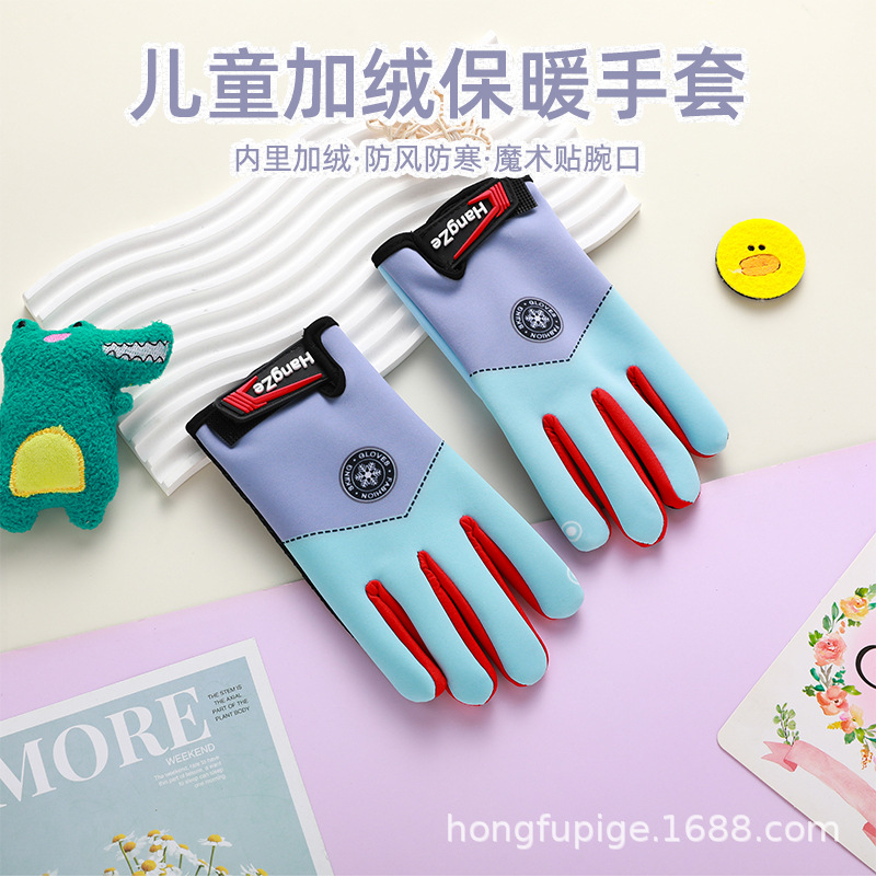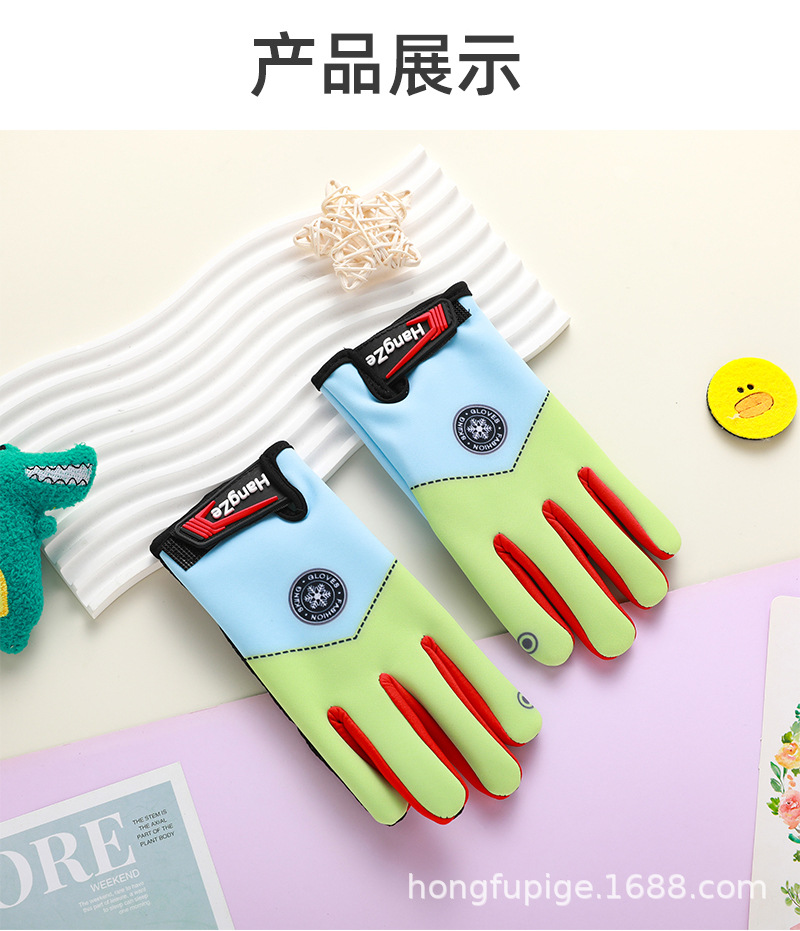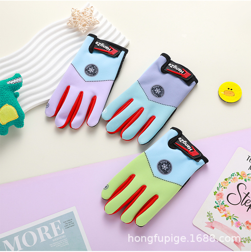 Guantes para niños otoño y invierno más terciopelo caliente estudiantes, niños y niñas gruesos guantes a prueba de viento para montar al aire libre a prueba de frío