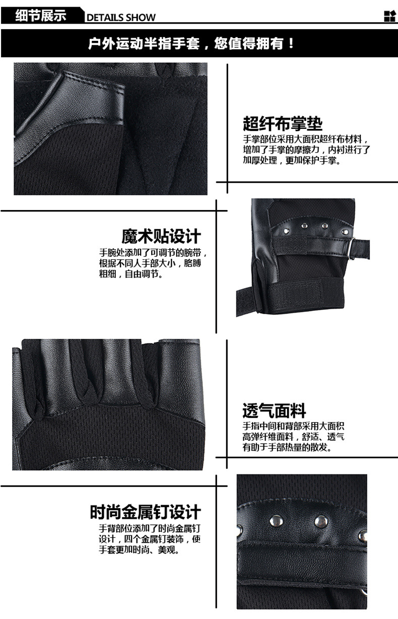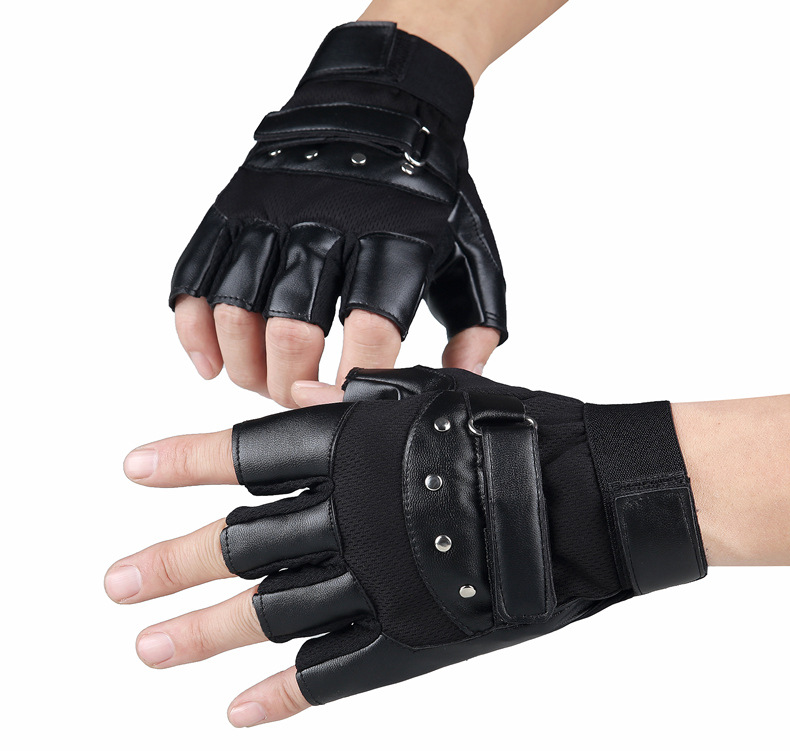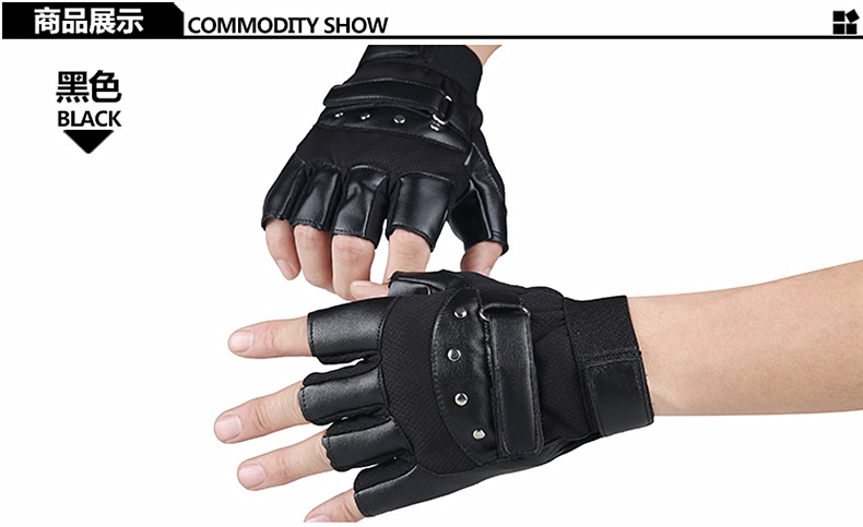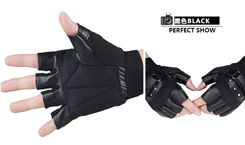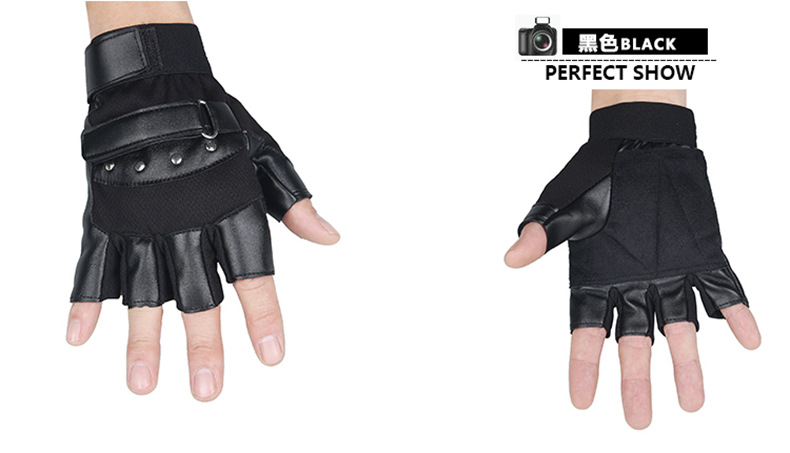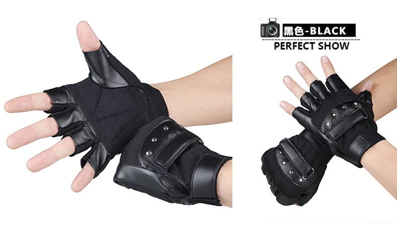 Guantes de piel de oveja medio dedo deportes de los hombres antideslizante fitness táctico al aire libre remache dedo abierto montar motocicleta medio dedo guantes