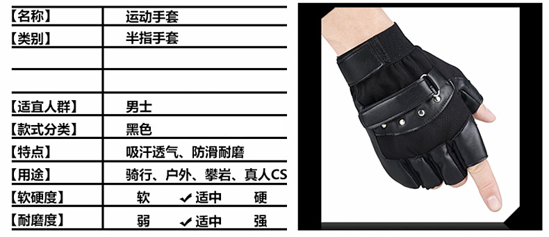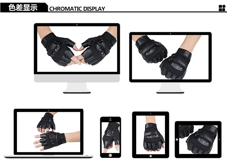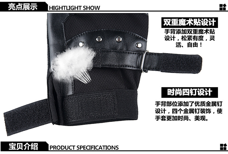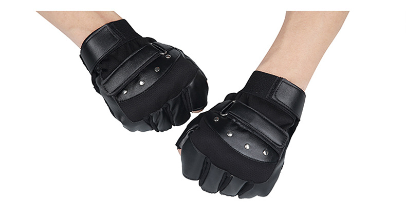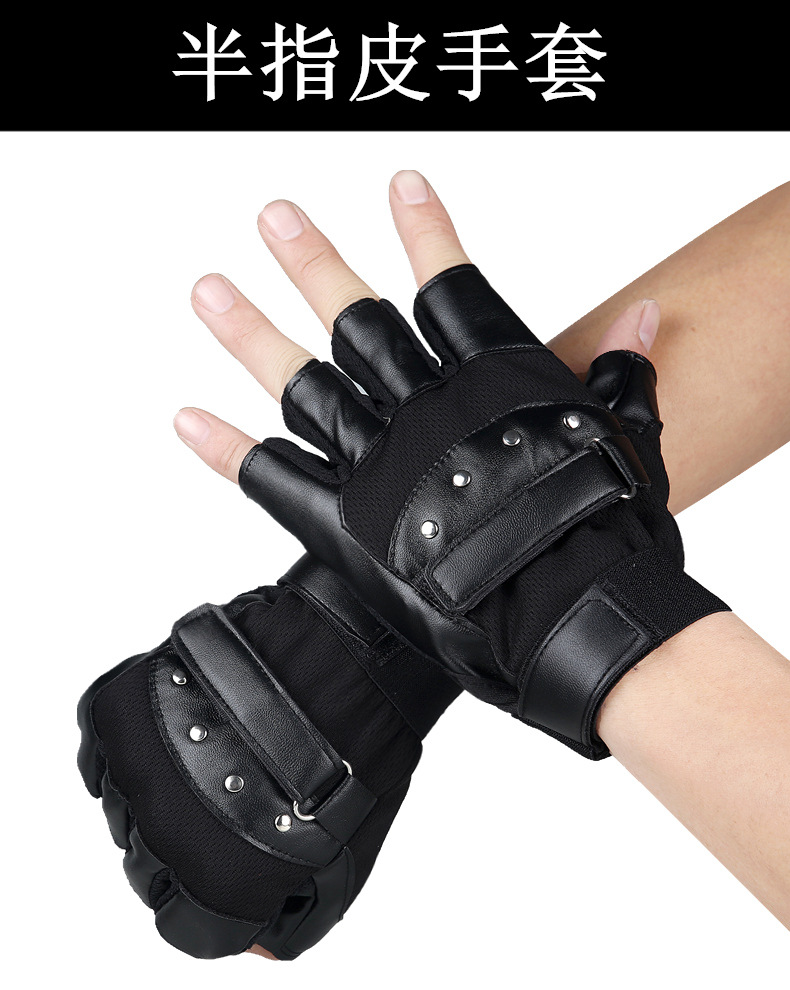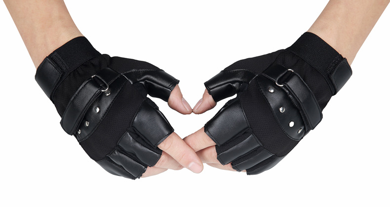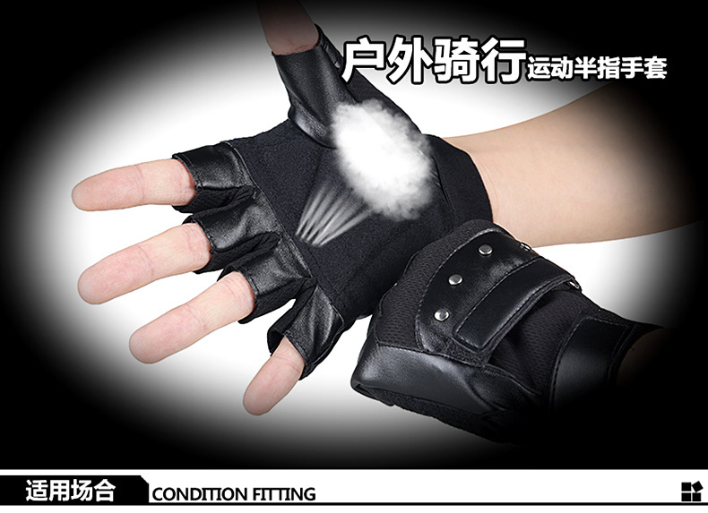 Guantes de piel de oveja medio dedo deportes de los hombres antideslizante fitness táctico al aire libre remache dedo abierto montar motocicleta medio dedo guantes