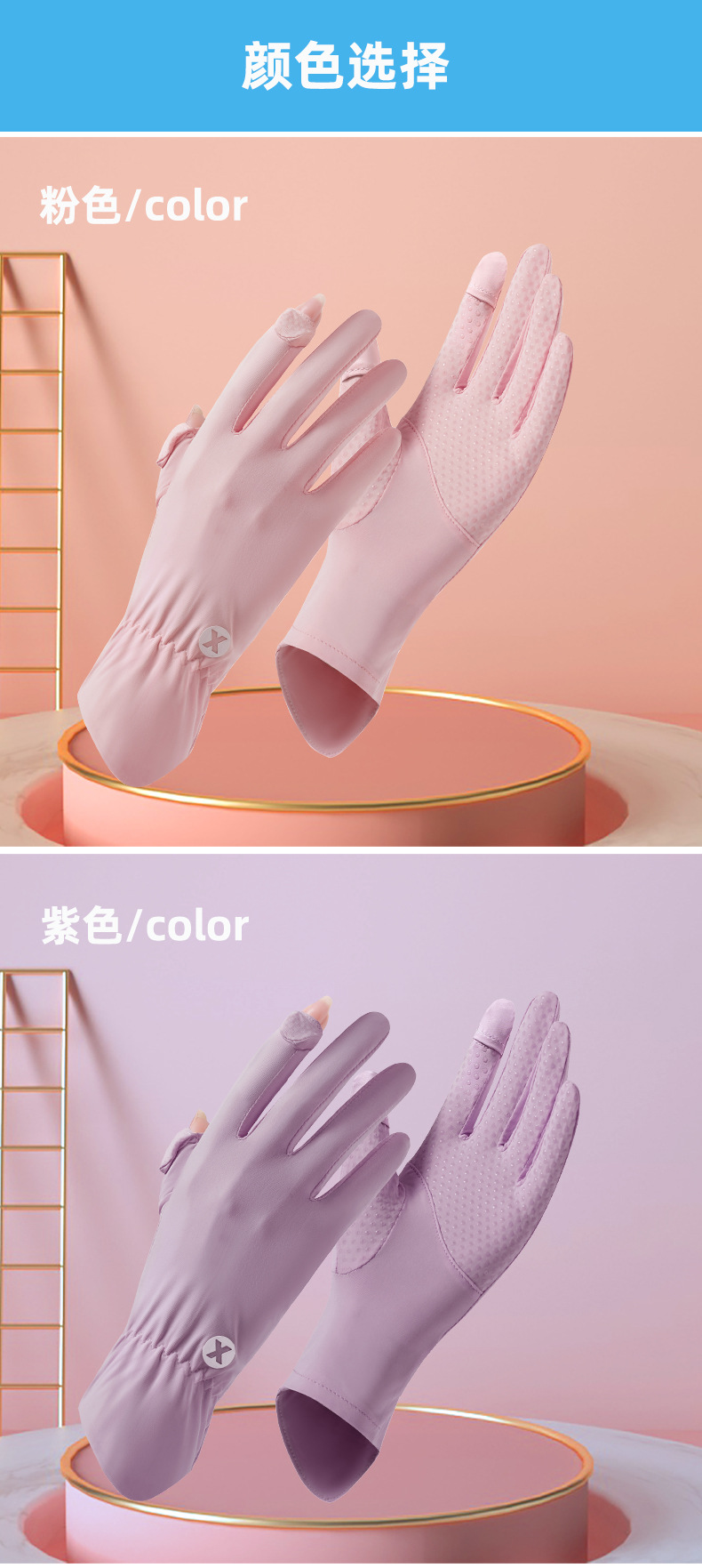 Guantes de protección solar para mujeres Protección UV delgada seda de hielo de verano mangas de mano de moda al aire libre ciclismo fugas dedo guantes de protección solar