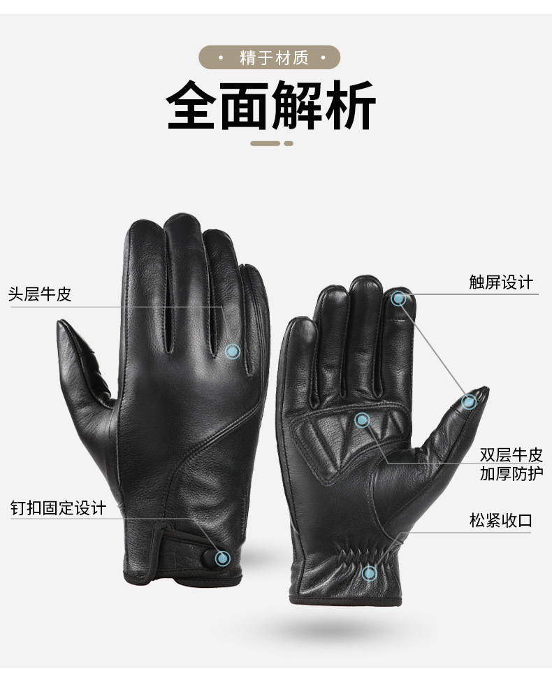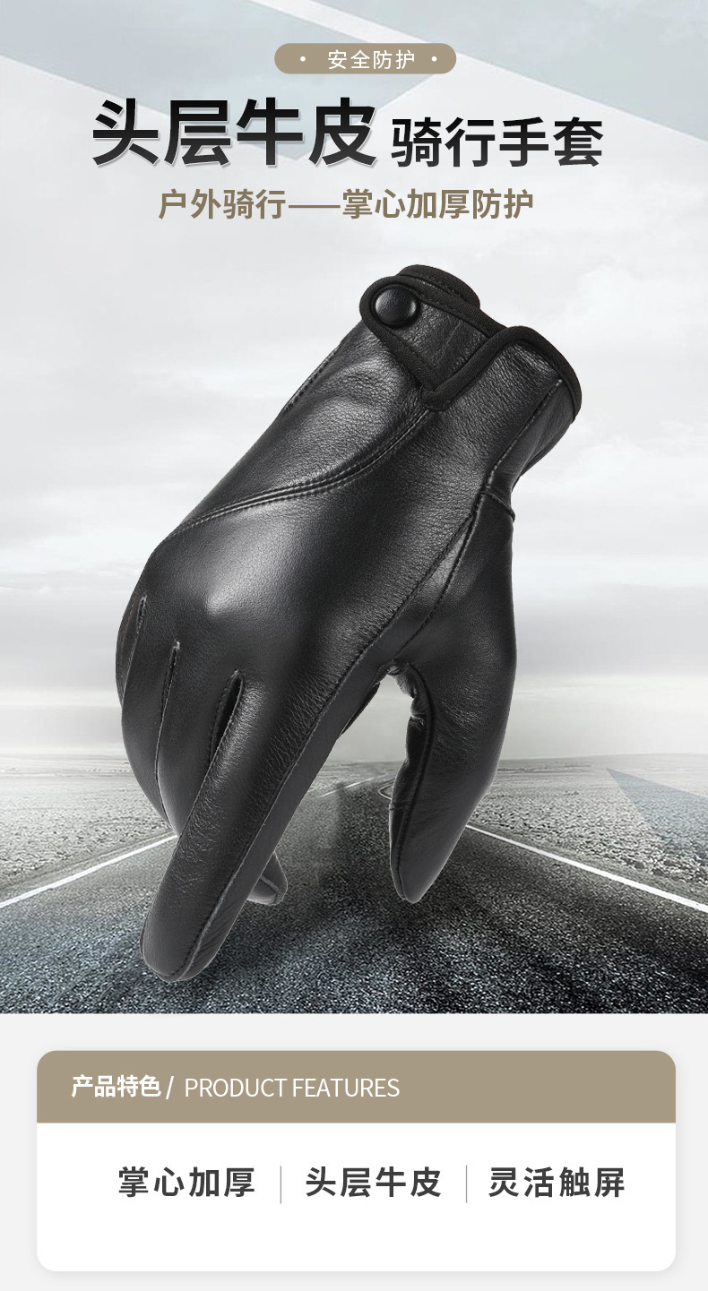 Guantes de cuero de vaca de cabeza para hombres motocicleta locomotora transfronteriza ciclismo caliente pantalla táctil invierno al aire libre guantes a prueba de viento
