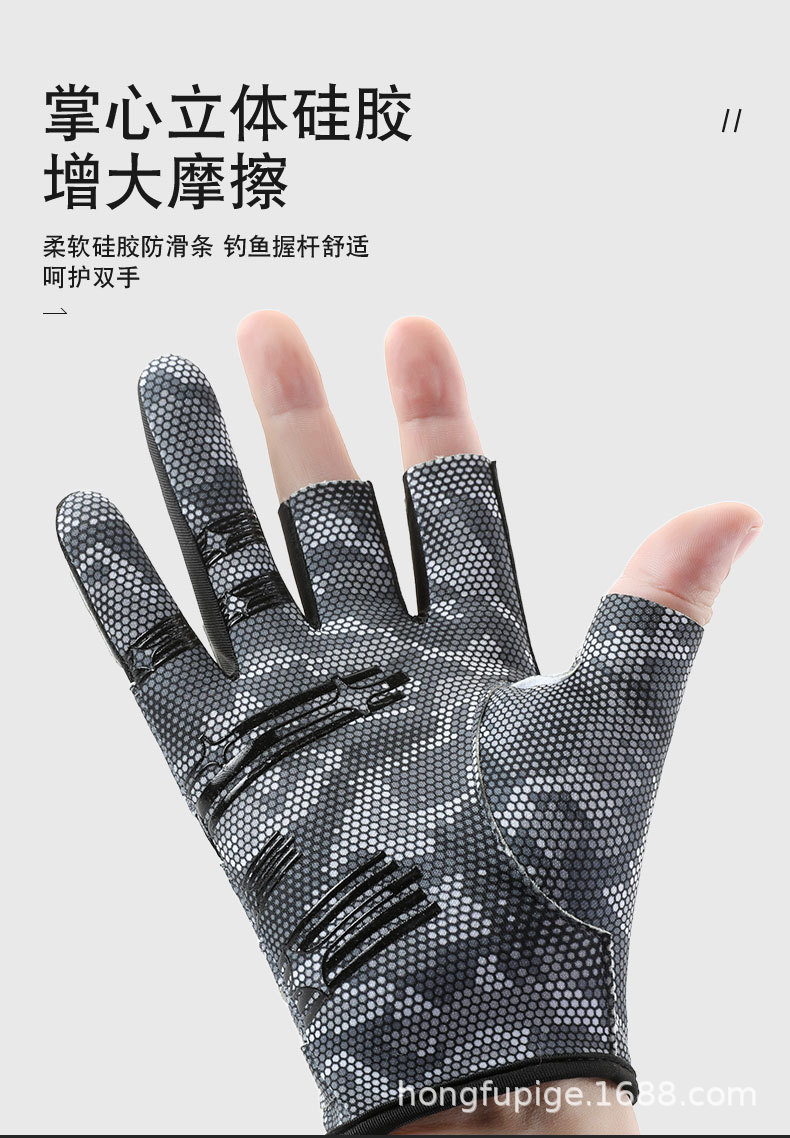 Nuevos guantes de pesca de verano para hombres y mujeres tirar XieLi anti-deslizante transpirable tres dedos fríos guantes de pesca anti-deslizante