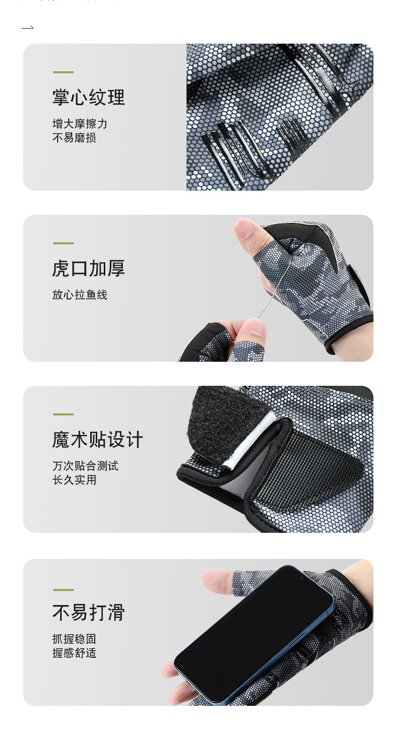 | Uso | Guantes de pesca al aire libre, luya, pesca, ligero y transpirable, sombra, absorción de sudor, antideslizante, guantes de frisbee, dedos de fuga |