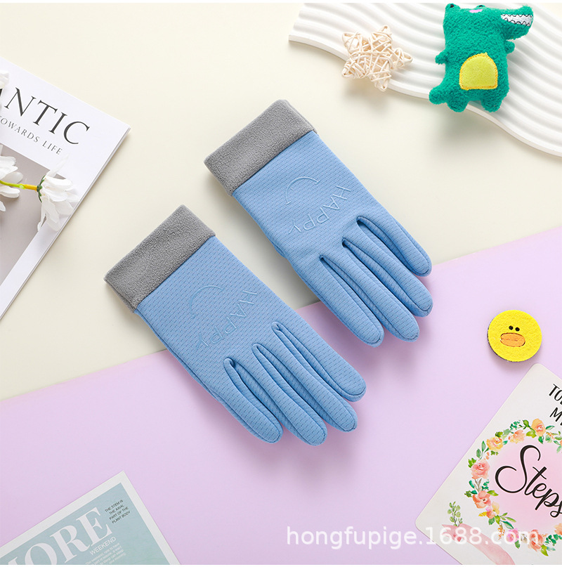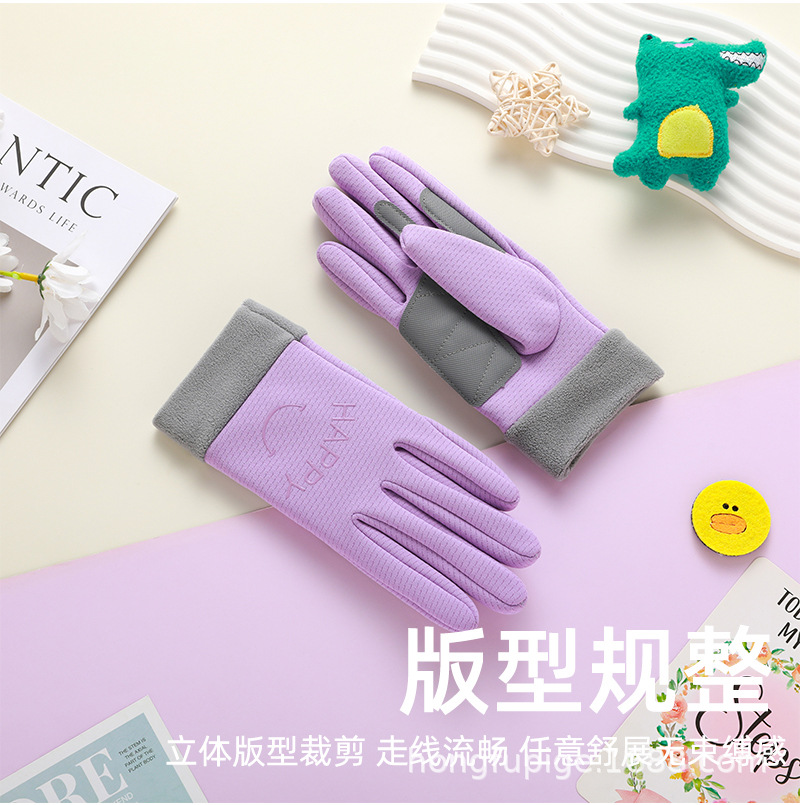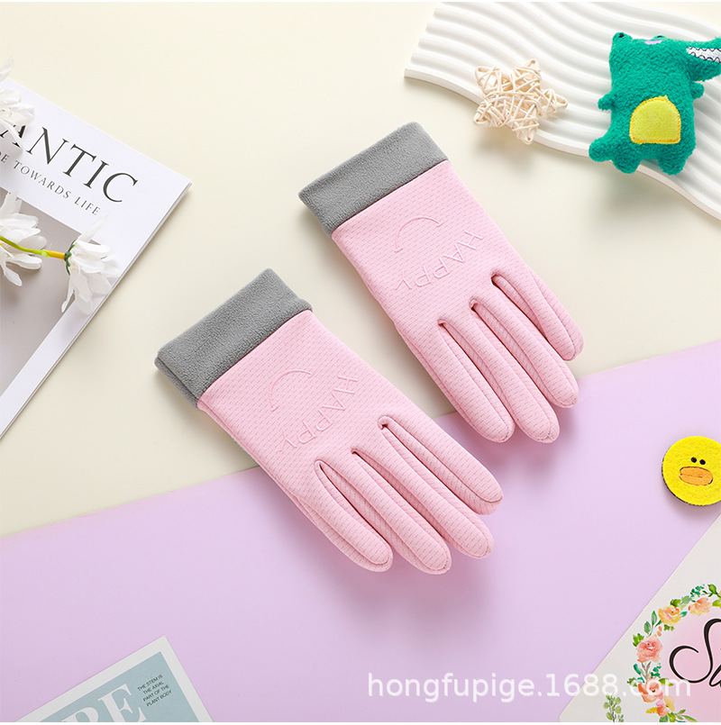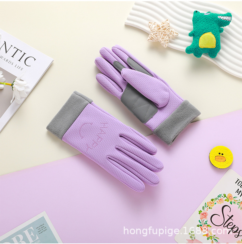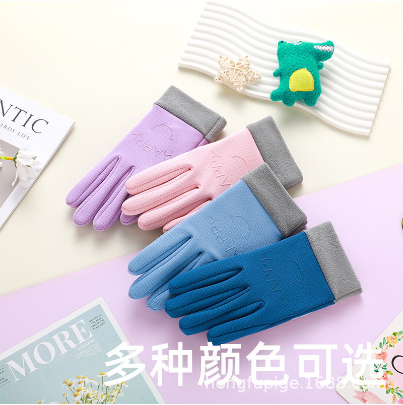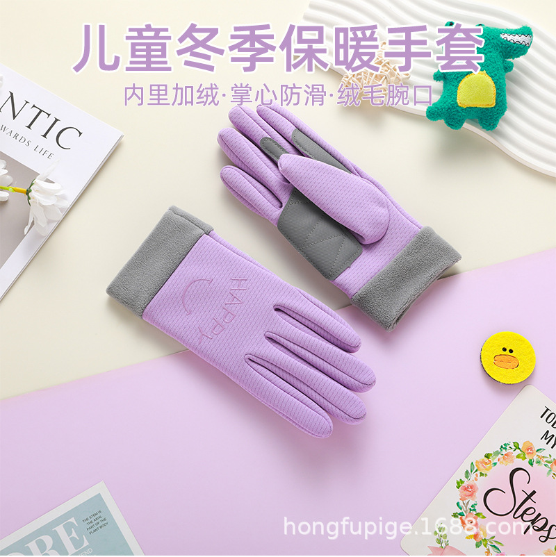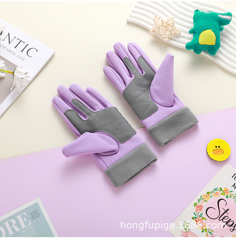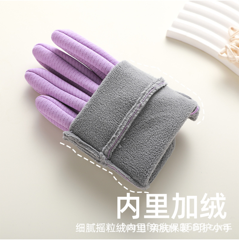 Guantes para niños de otoño y invierno para montar al aire libre con vello a prueba de viento y frío para hombres y mujeres con dedos enteros lindos guantes de motocicleta calientes