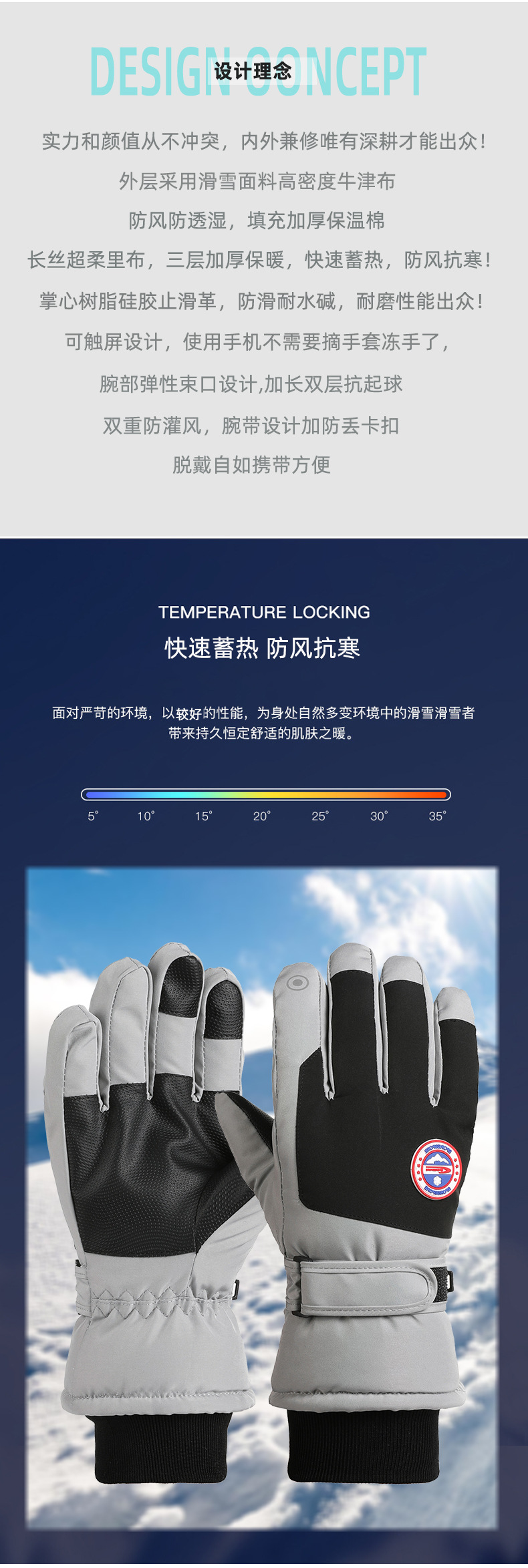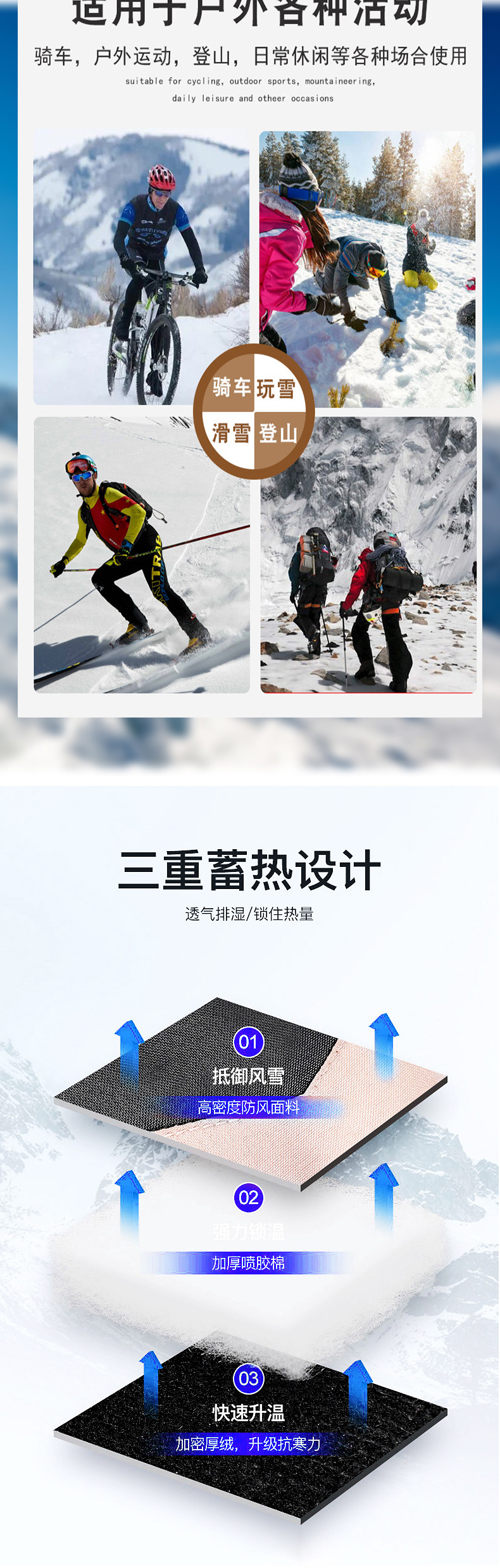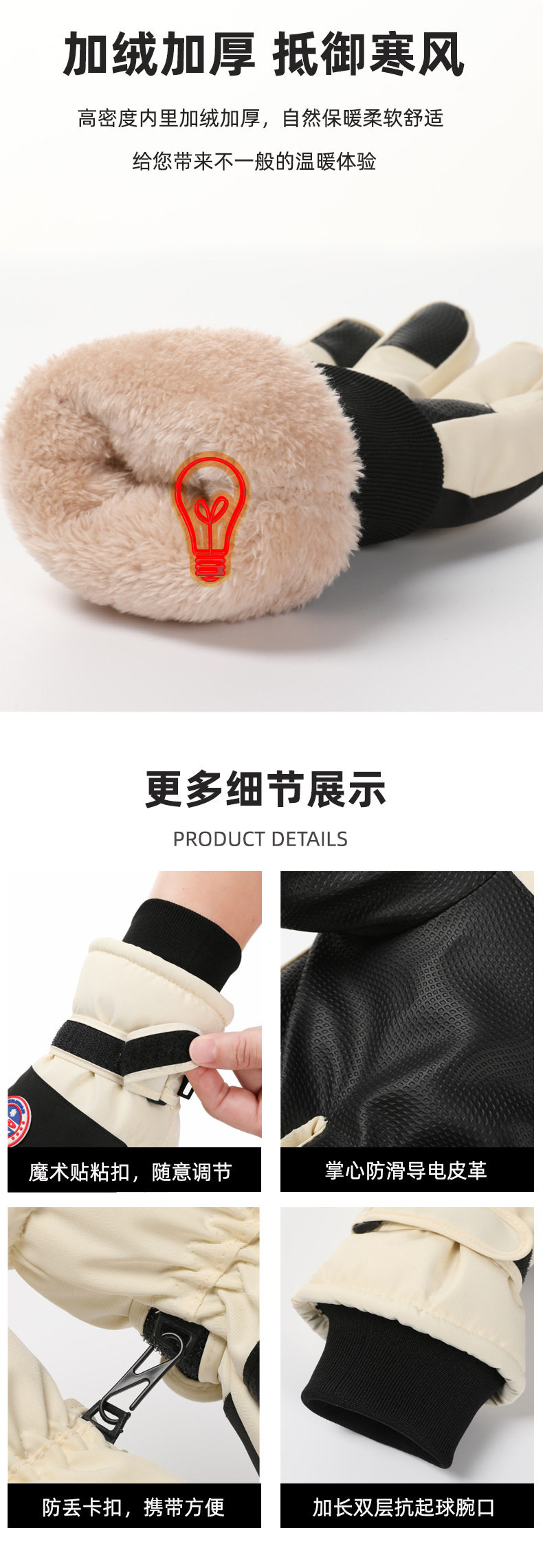 Guantes de esquí otoño e invierno al aire libre hombres y mujeres pareja forrada de lana engrosada a prueba de viento a prueba de frío pantalla táctil guantes calientes