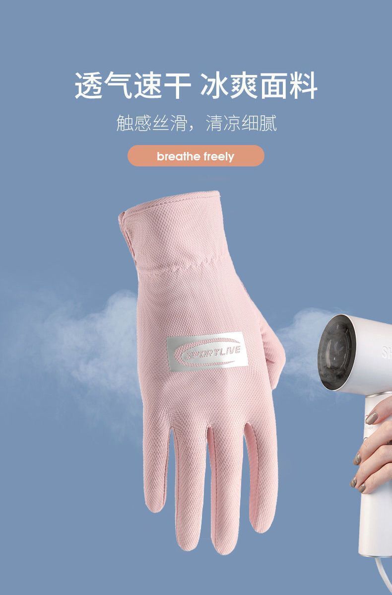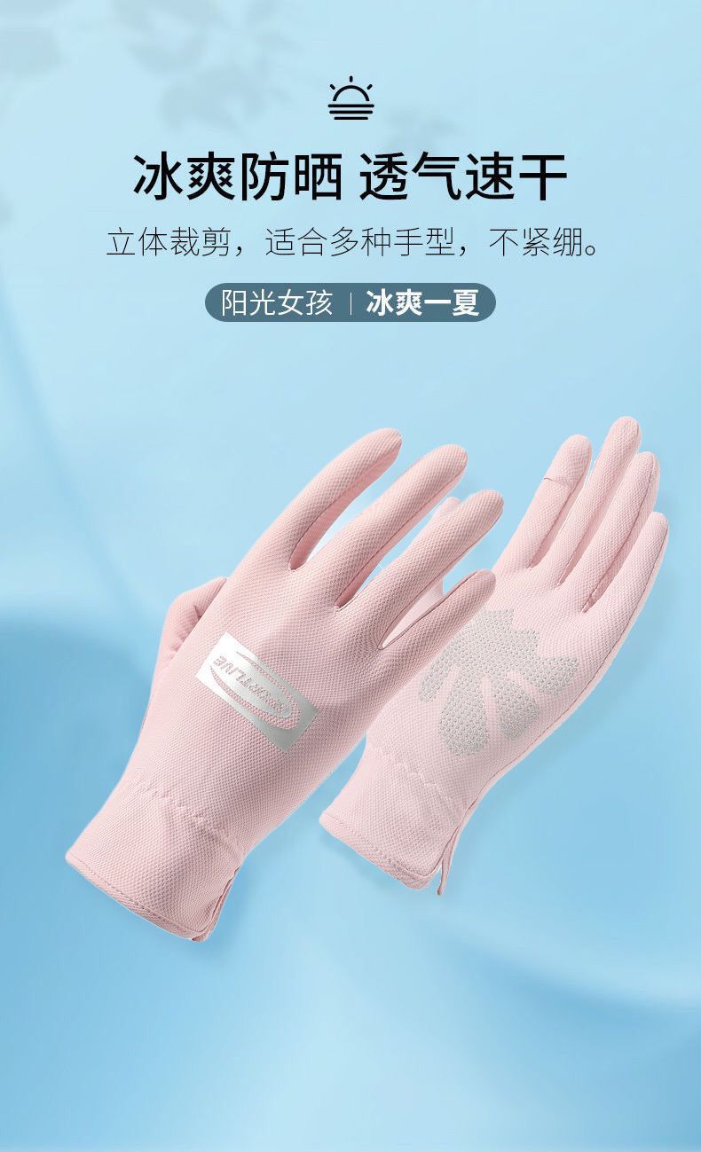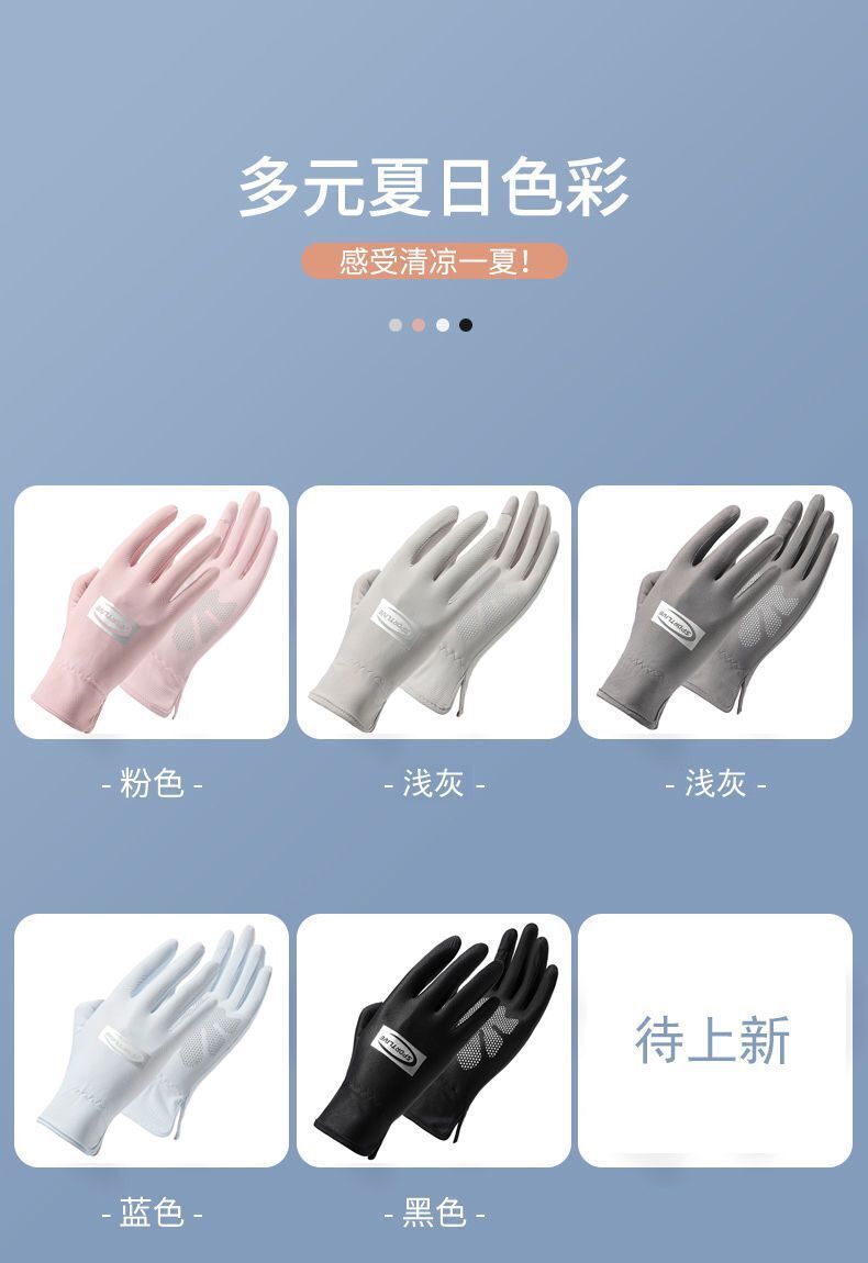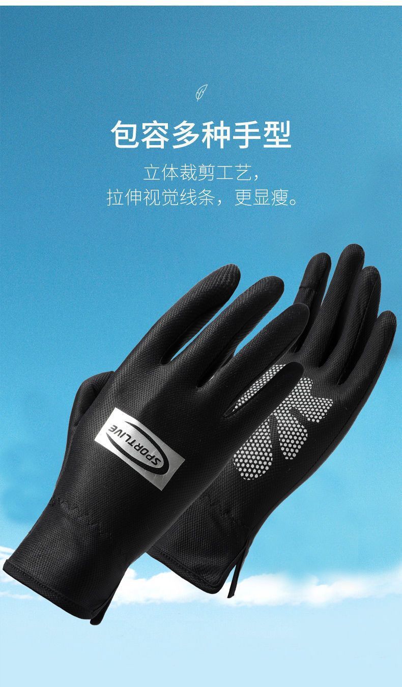 Guantes de protección solar para mujer delgados protección UV al aire libre transpirable dedo completo antideslizante conducción guantes de dedo de fuga de seda de hielo