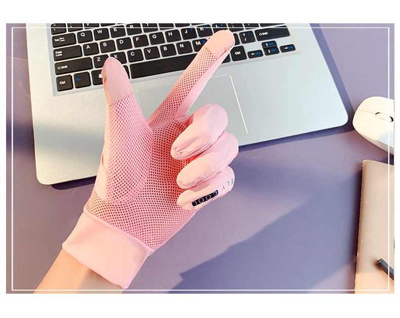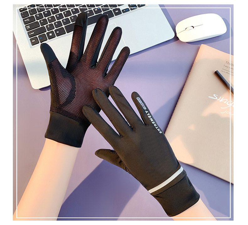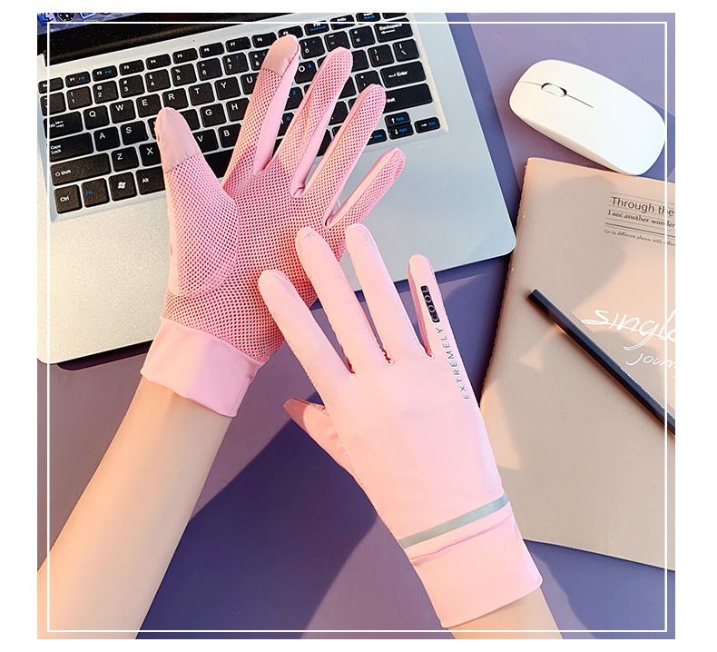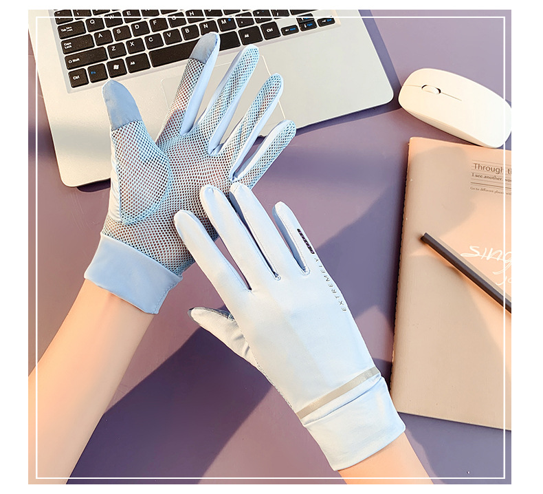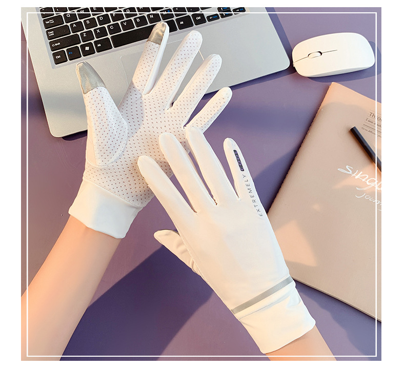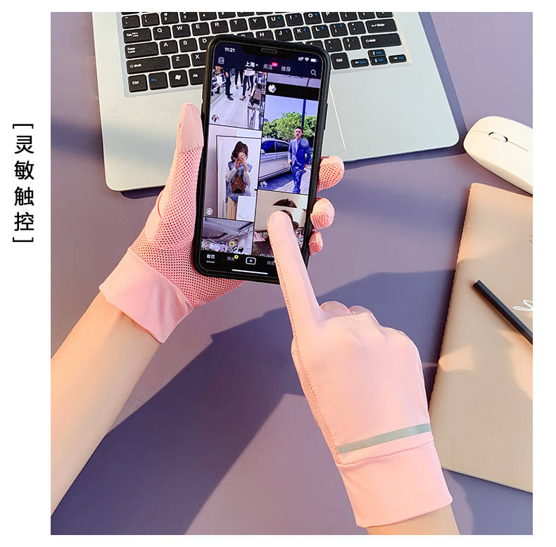 Guantes de protección solar para mujeres Protección UV Seda de hielo Guantes de pantalla táctil dedo completo conducción delgada equitación pesca fugas guantes de dedo