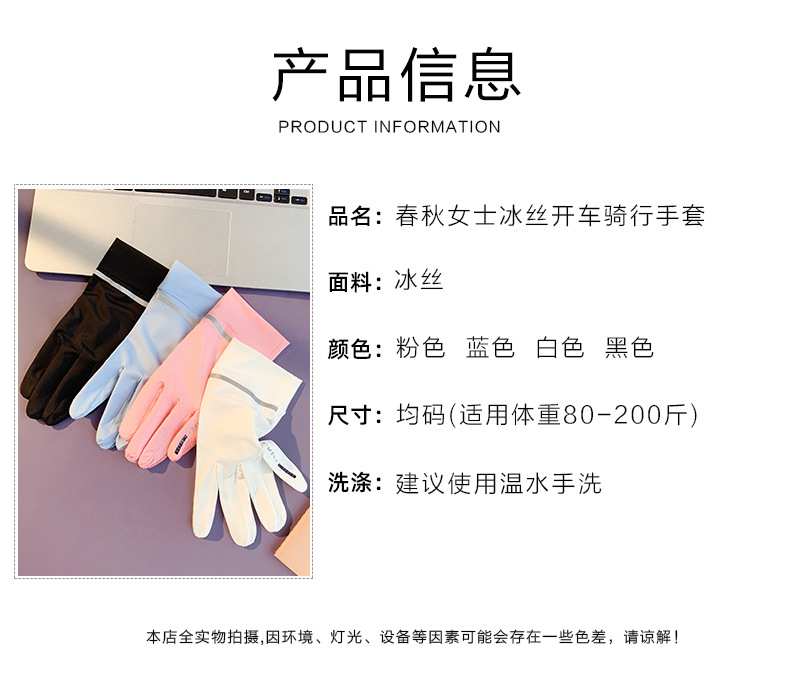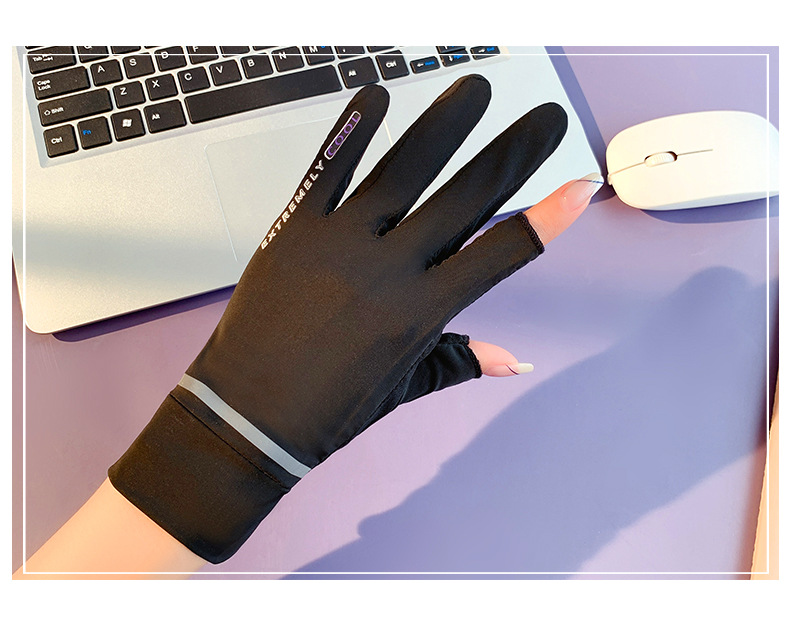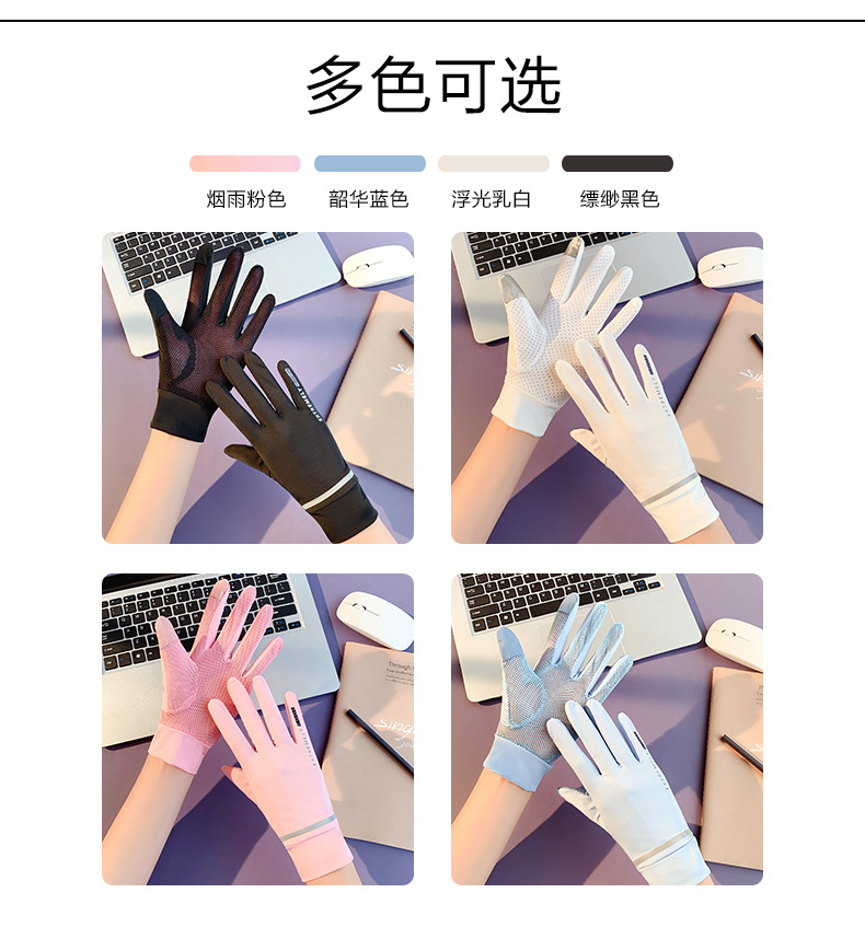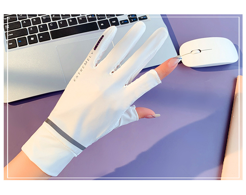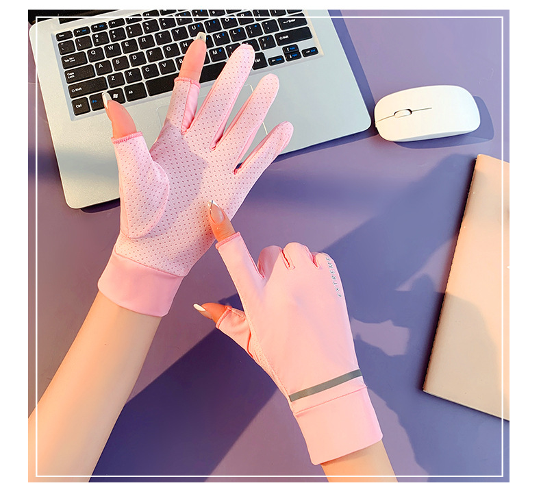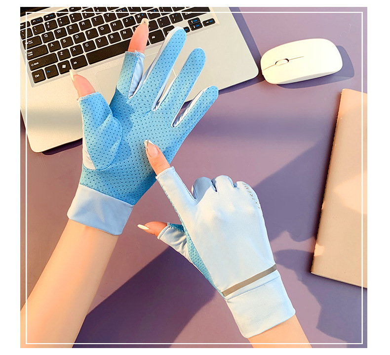 Guantes de protección solar para mujeres Protección UV Seda de hielo Guantes de pantalla táctil dedo completo conducción delgada equitación pesca fugas guantes de dedo