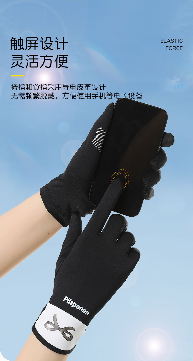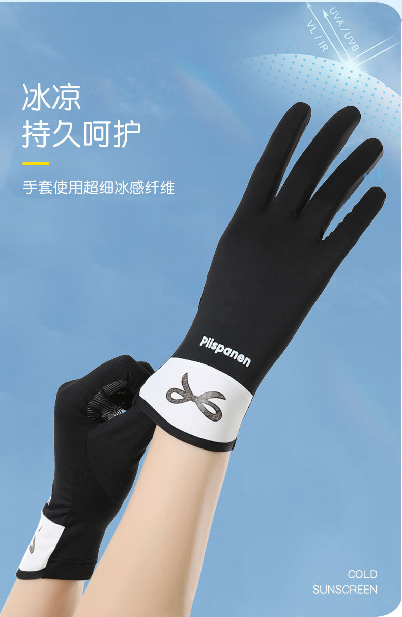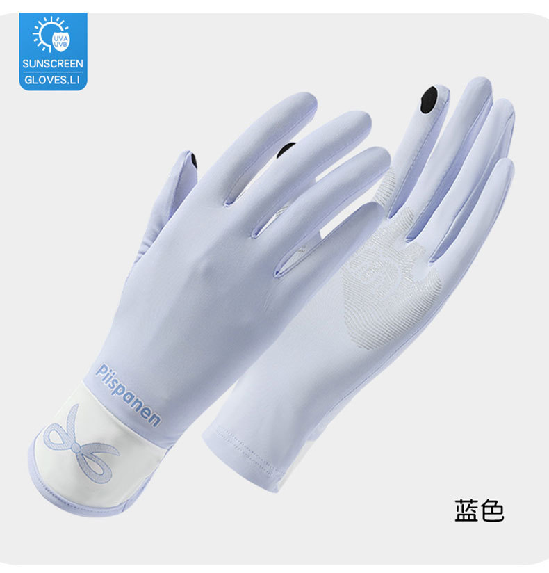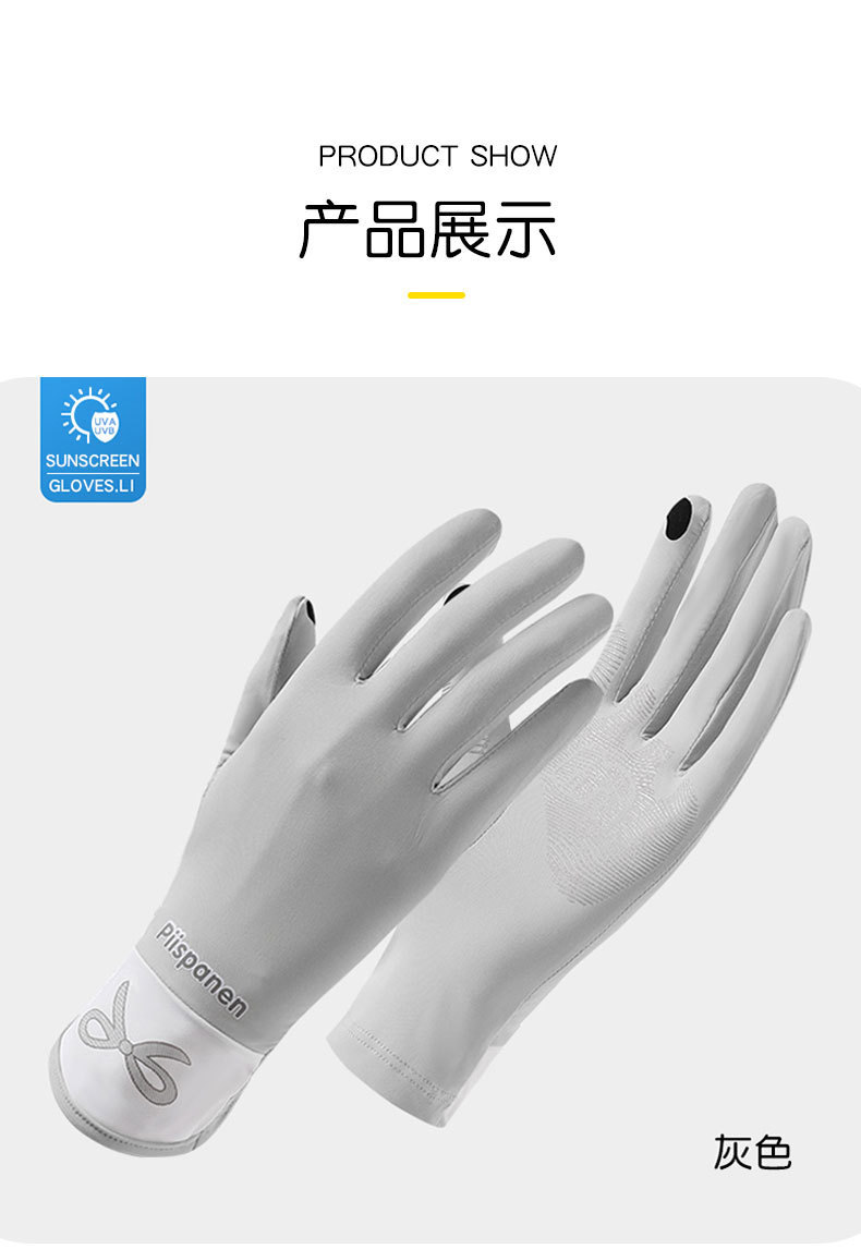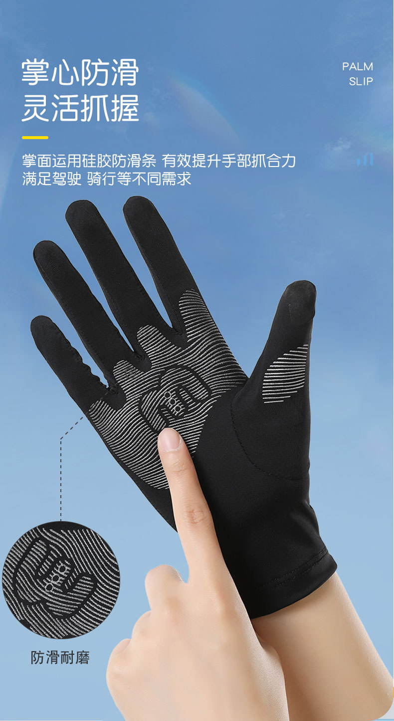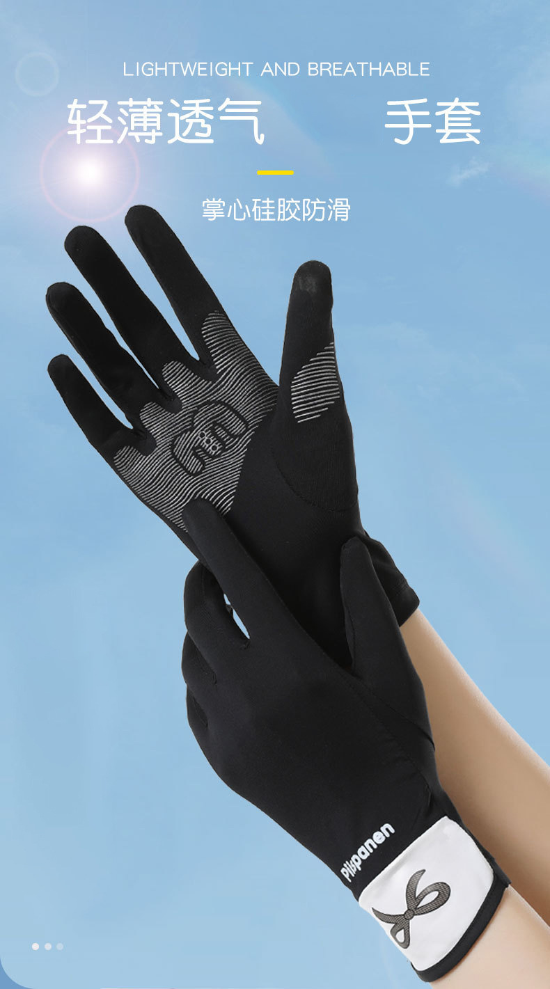 Verano de seda de hielo transpirable para mujer estilo fino al aire libre antideslizante conducción con todos los dedos anti-ultravioleta seda de hielo guantes de protección solar