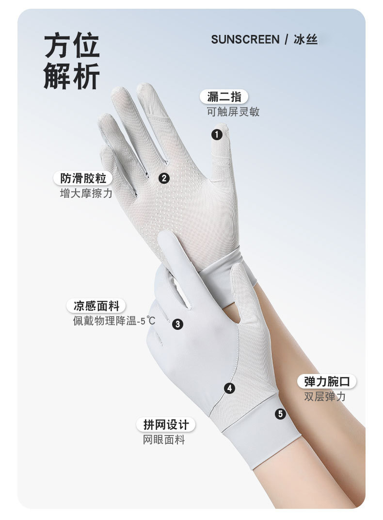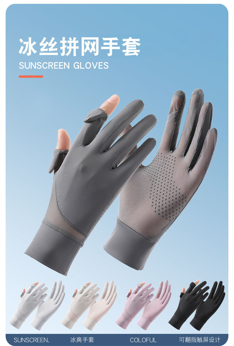 Guantes de seda de hielo de verano, nuevo estilo, protección solar, protección UV, sensación de frío, transpirable y antideslizante, guantes de ciclismo con todos los dedos