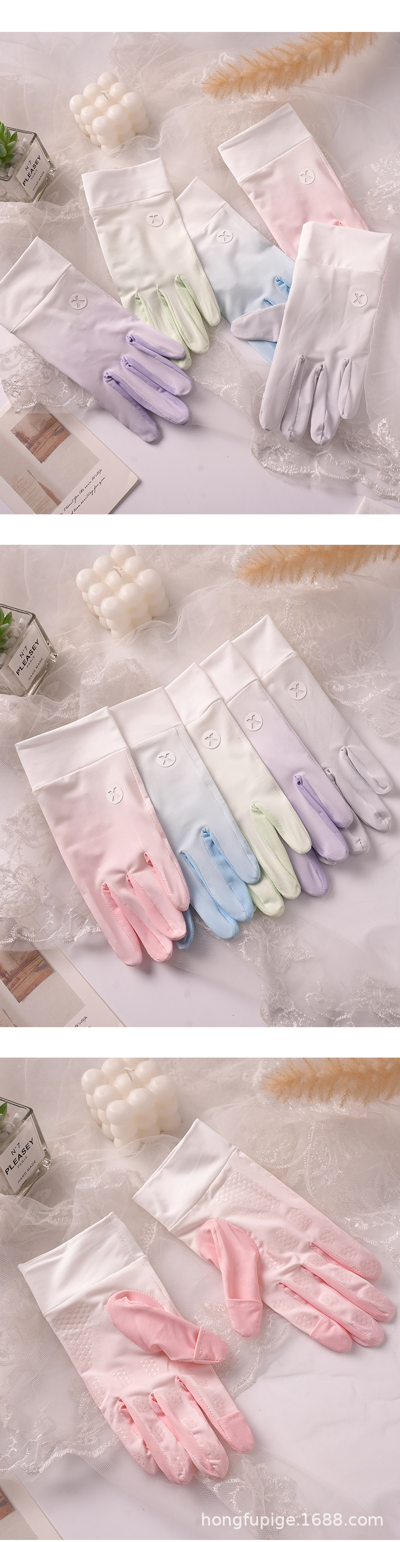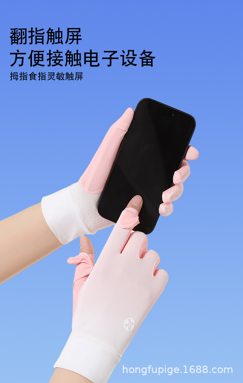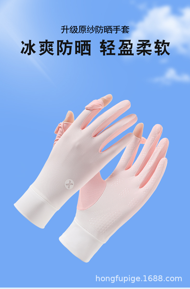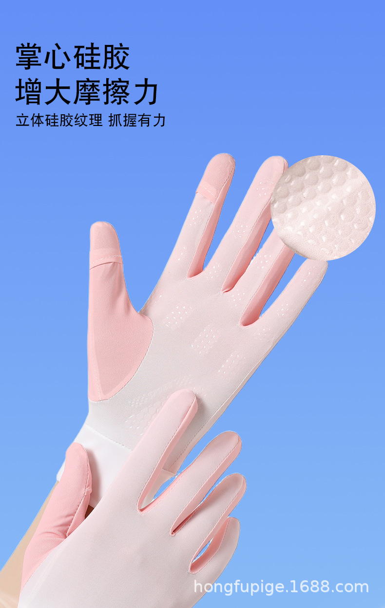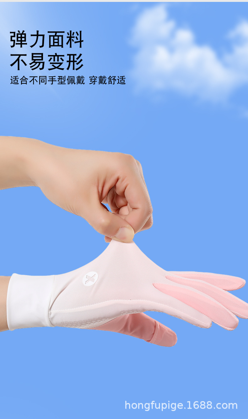 Guantes de seda de hielo delgados para mujeres de verano conduciendo al aire libre pantalla táctil de dedo completo guantes de protección solar ligeros y transpirables