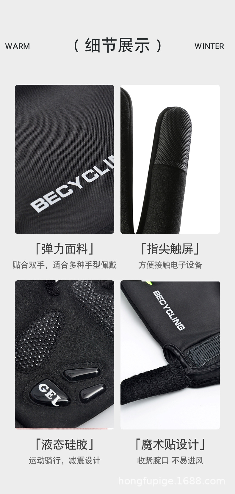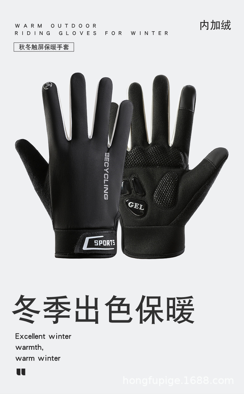 Guantes cálidos de ciclismo Motos para hombres y mujeres Moda más terciopelo Deportes al aire libre Otoño e invierno Pantalla táctil antideslizante Guantes antideslizantes de ciclismo