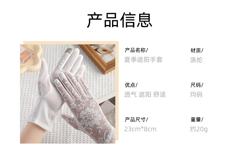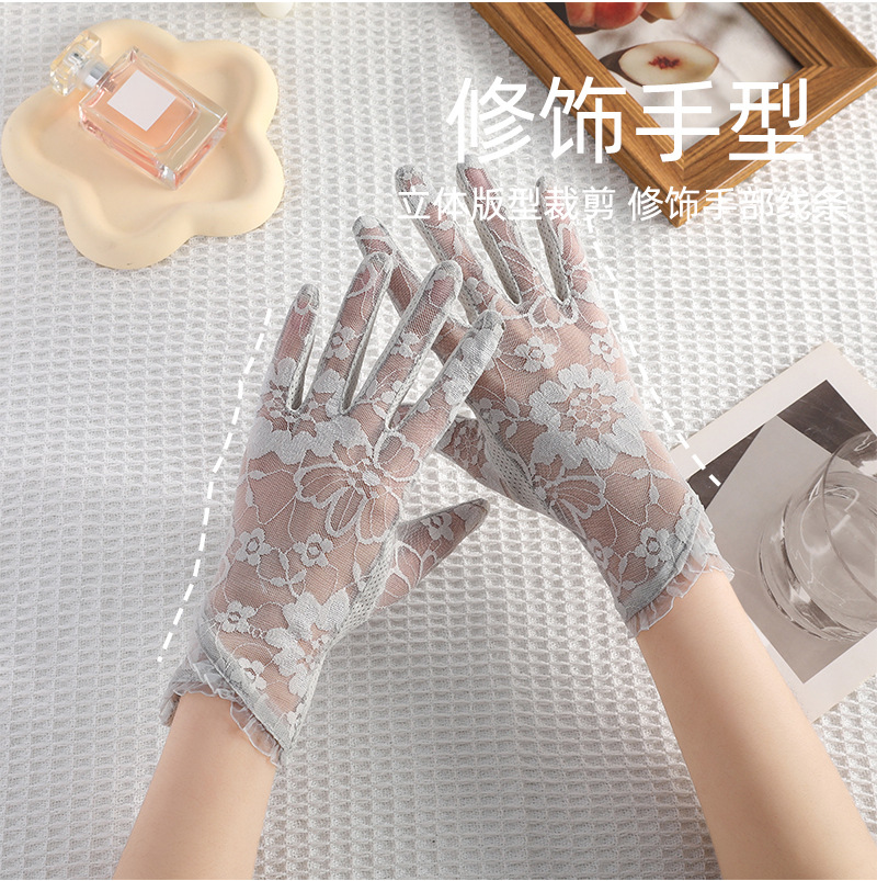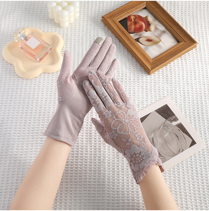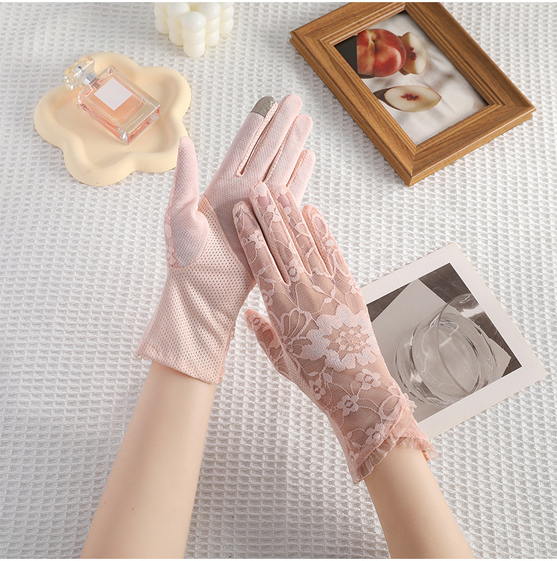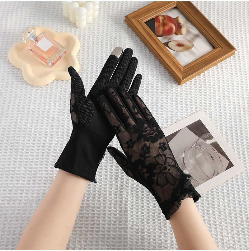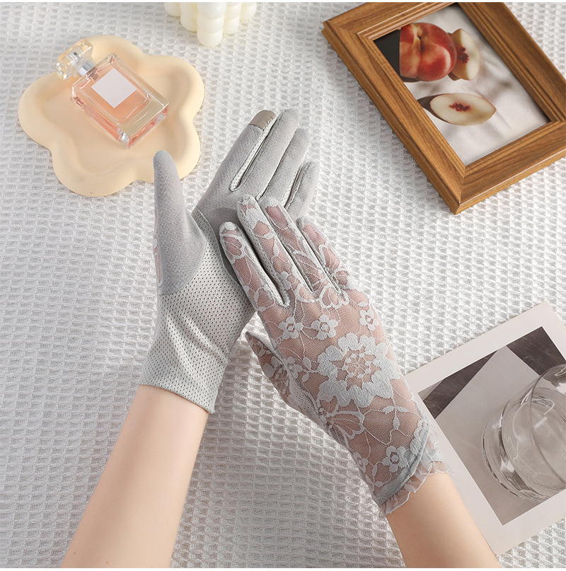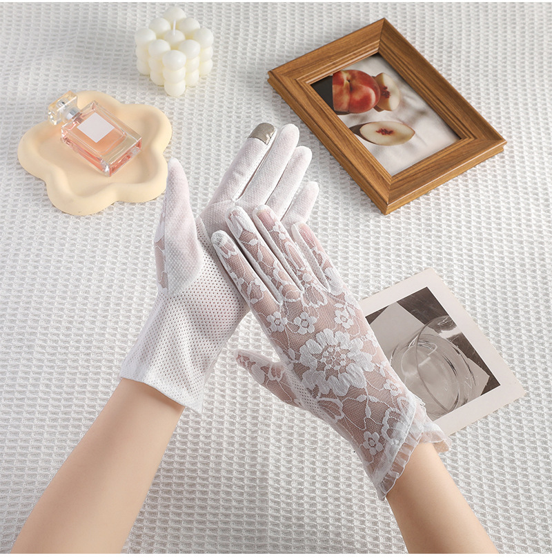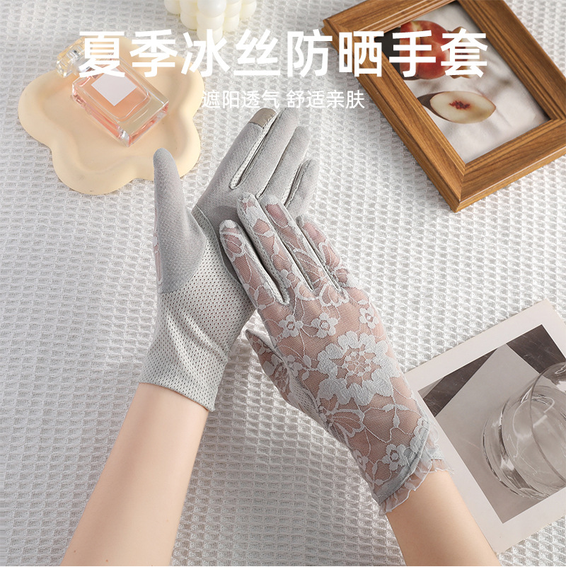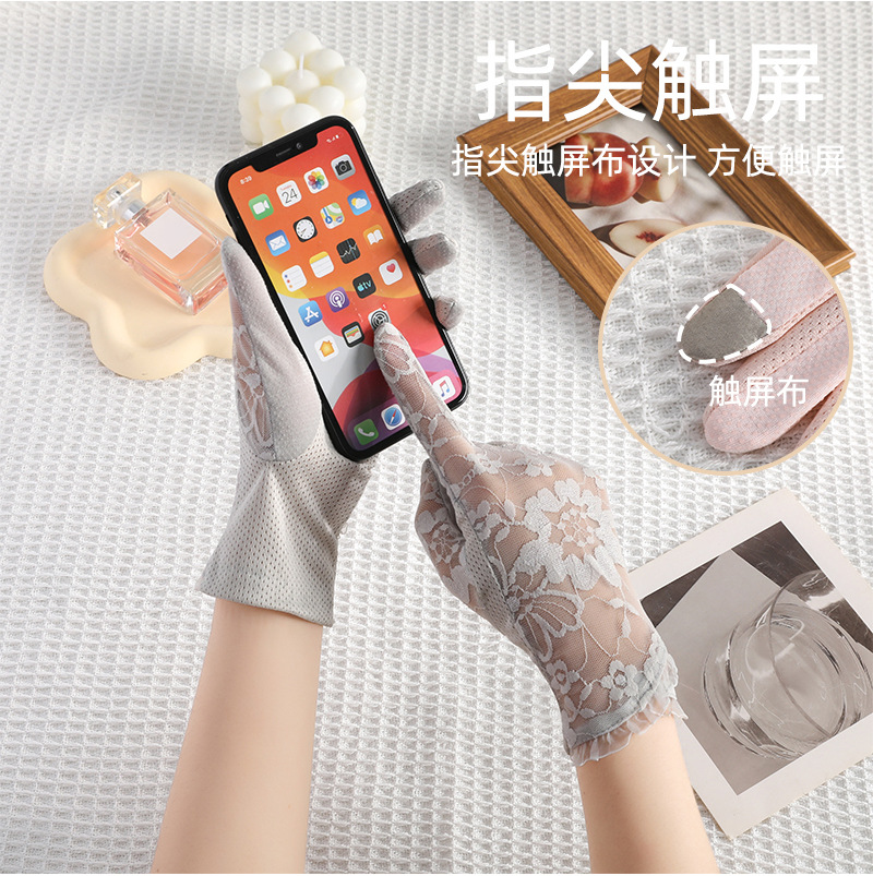Guantes de encaje de verano antideslizante pantalla táctil de dedo completo para conducir al aire libre guantes de hielo anti-UV
