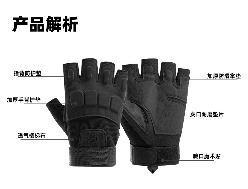 Guantes tácticos de fitness entrenamiento al aire libre locomotora de campo de hierro montar movimiento de dedos expuestos de montar guantes de medio dedo para hombres
