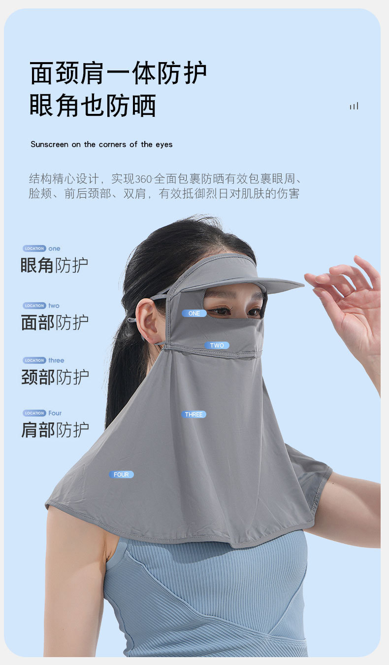 Verano máscara solar de seda de hielo máscara solar de protección UV para mujeres máscara de protección solar ensanchada para proteger los ojos y la esquina para proteger el cuello transpirable
