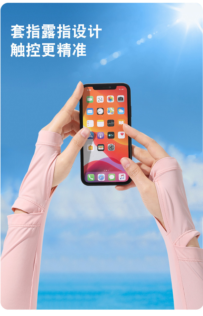 Nuevo protector solar manga de hielo ligero y transpirable para mujer conducción de verano larga antideslizante anti-ultravioleta manga de seda de hielo pantalla táctil