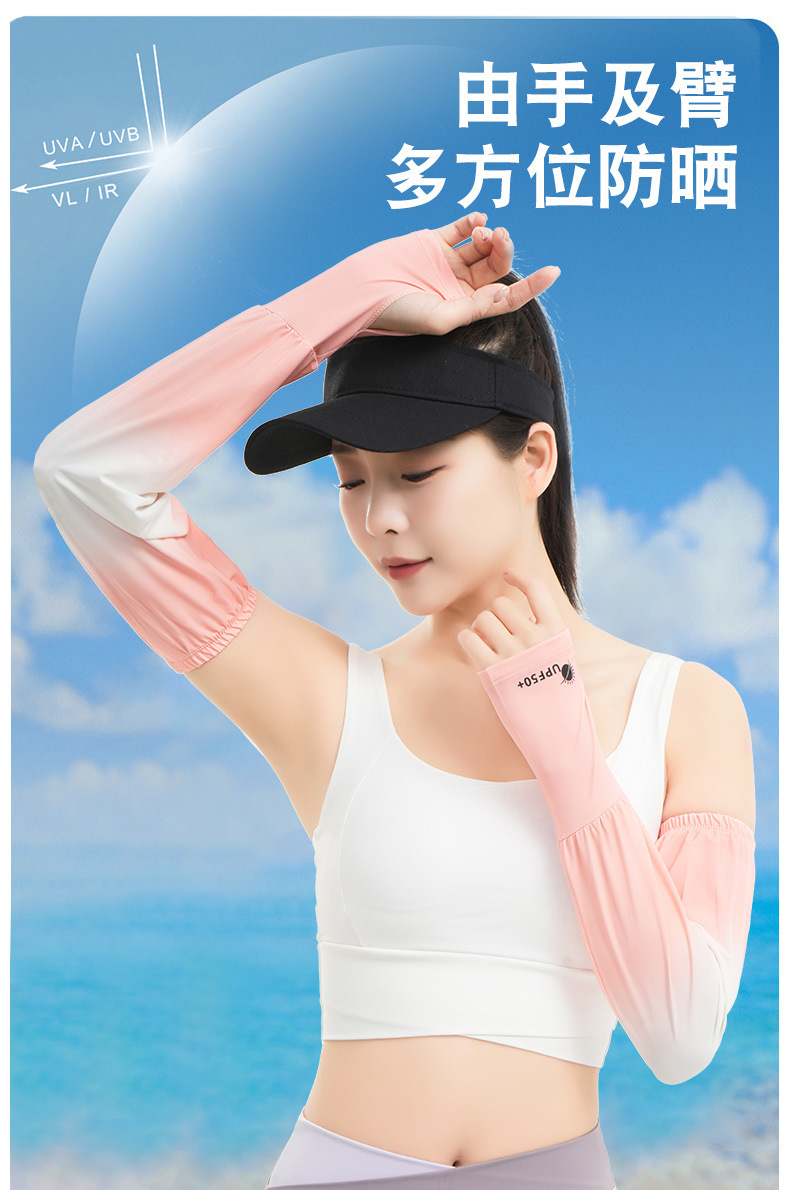 Verano gradiente protector solar manga nueva conducción de bicicleta ligera y delgada protector solar respirante alargado dedo de braza de verano gradiente hielo manga