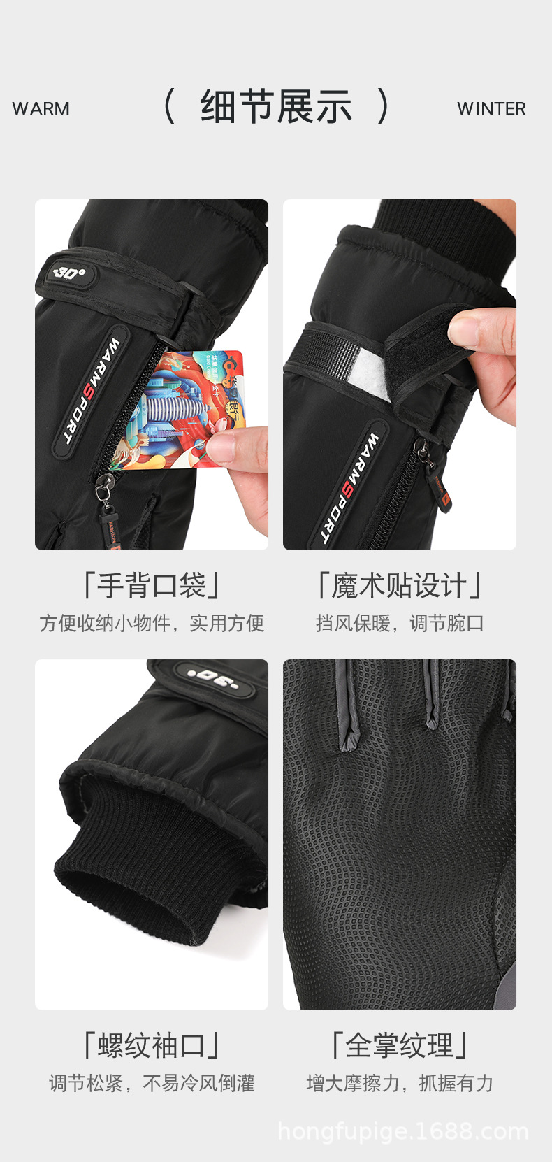 Guantes de esquí forrados de lana gruesa cálida adulto al aire libre a prueba de viento impermeable antideslizante pantalla táctil Otoño e Invierno guantes
