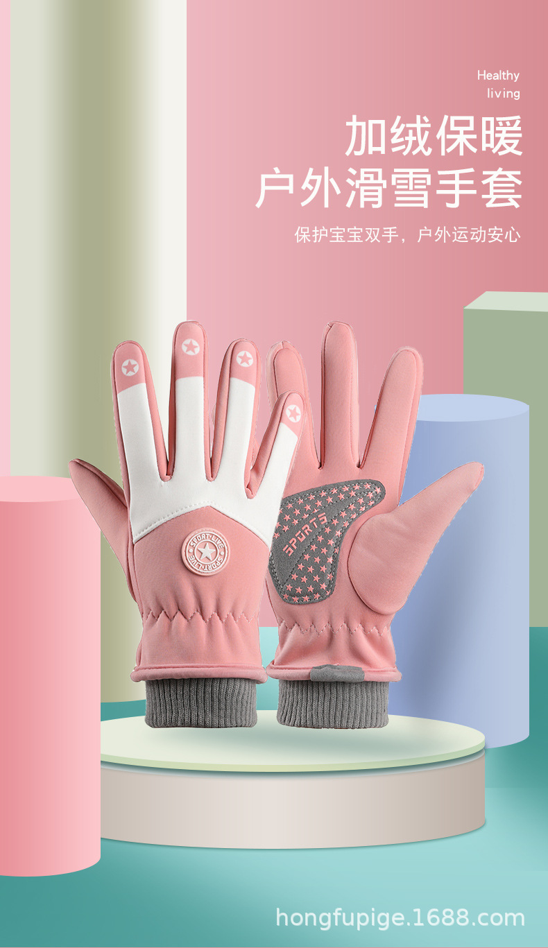 Guantes calientes para niños al aire libre nieve engrosada con forro polar impermeable antideslizante dibujos animados para niños guantes de esquí de invierno