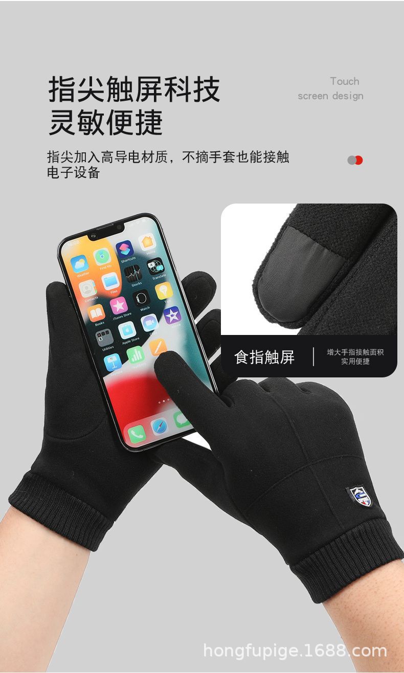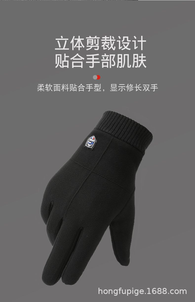 Guantes térmicos de otoño e invierno para hombres al aire libre deportes coche eléctrico a prueba de viento conejo terciopelo dedo completo forrado de lana guantes de pantalla táctil
