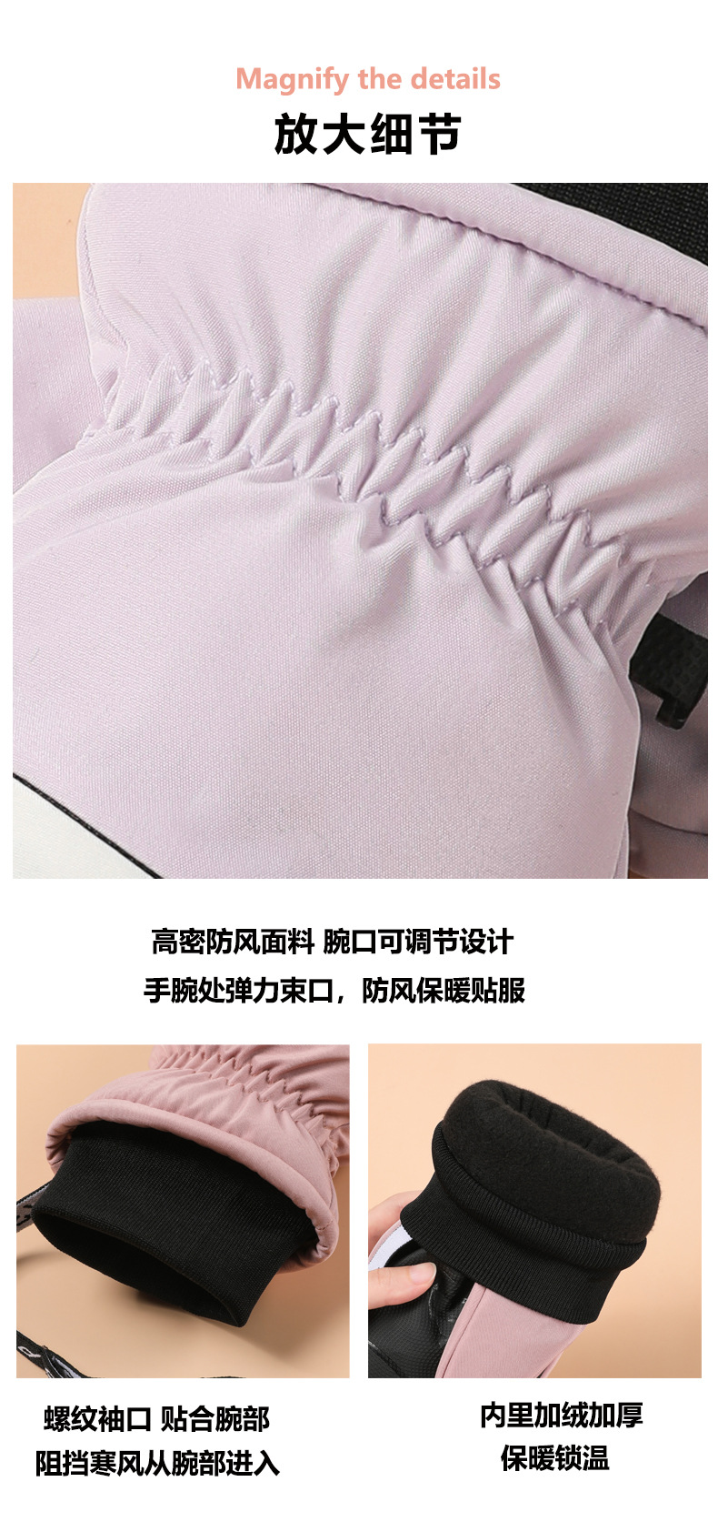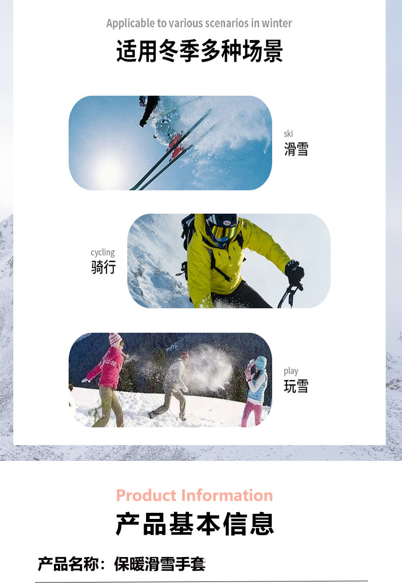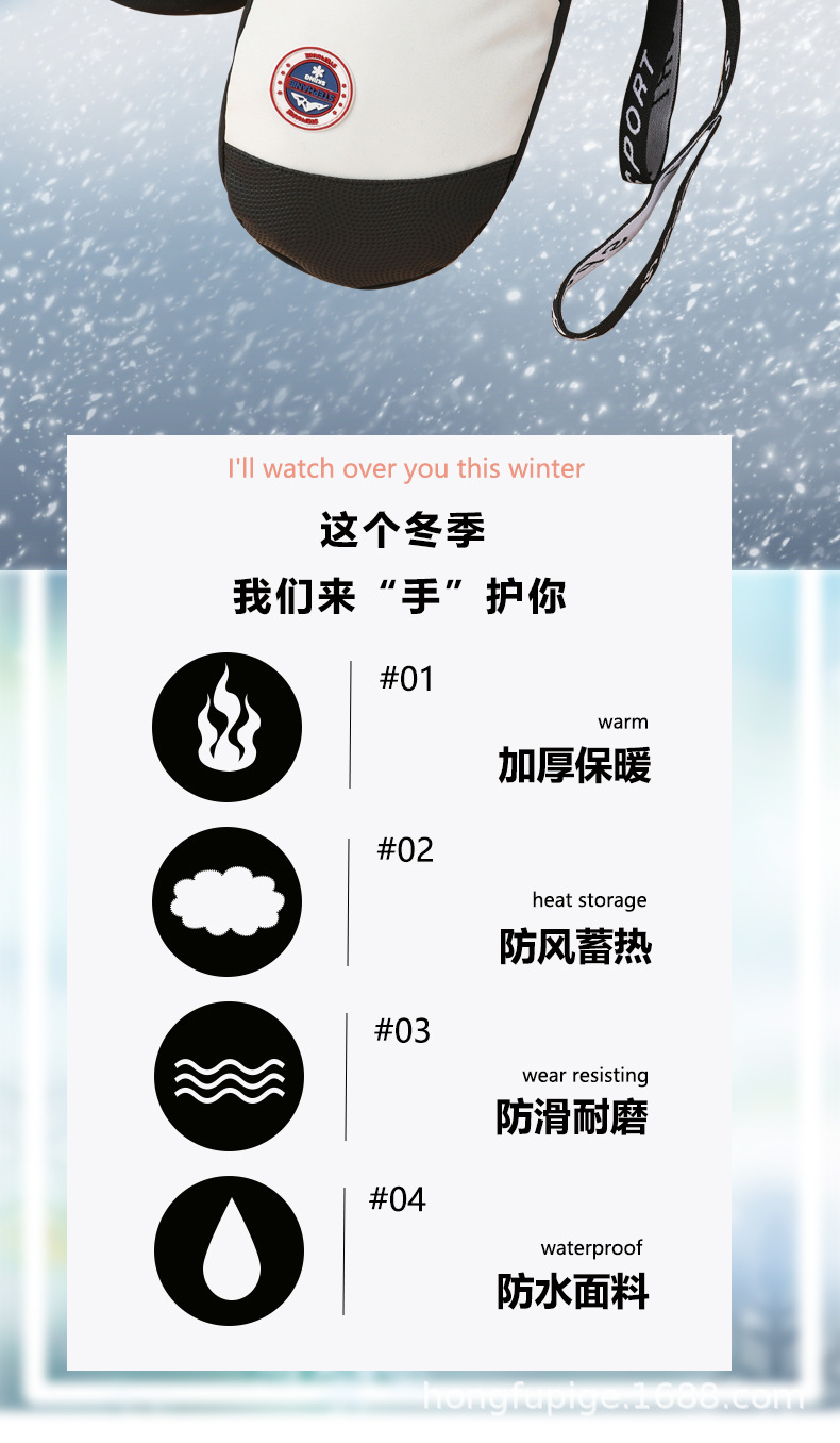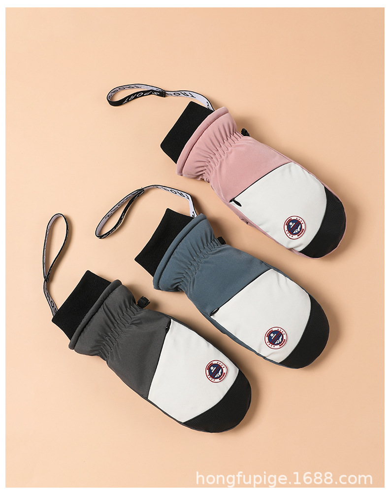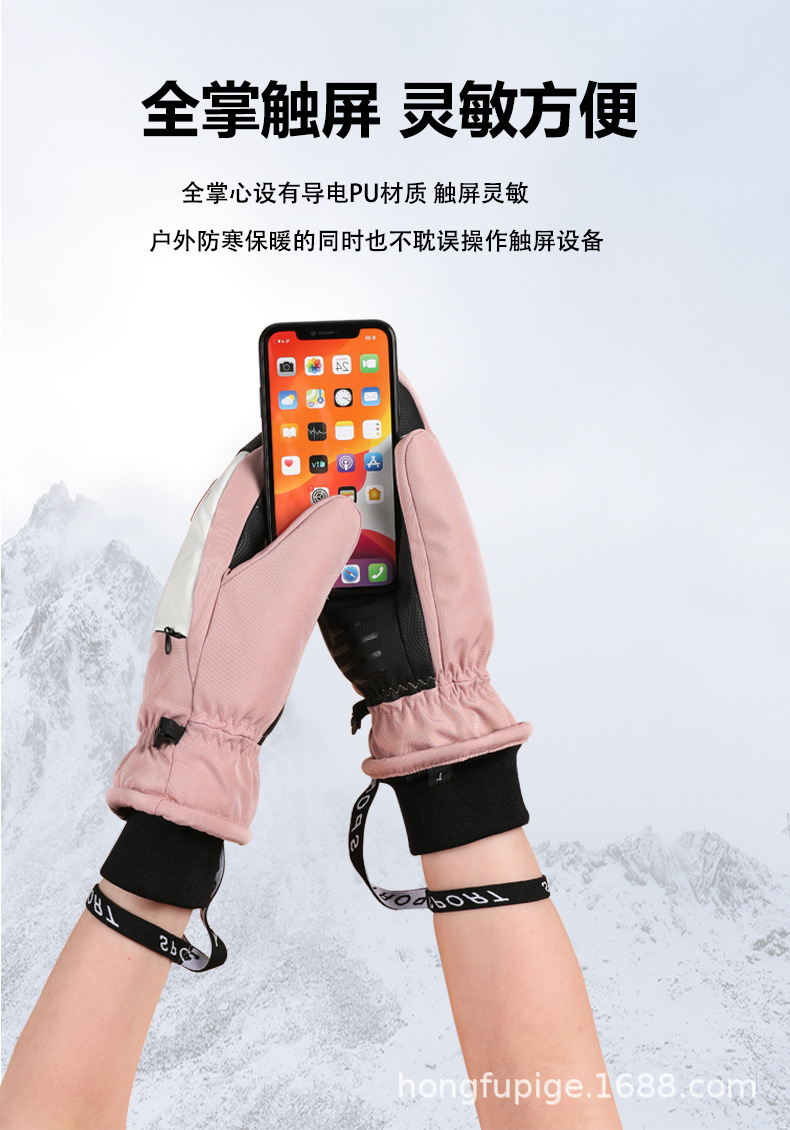Guantes de esquí de una sola tabla para hombres y mujeres impermeables engrosados cálidos interiores de cinco dedos pantalla táctil de mapache guantes de otoño e invierno