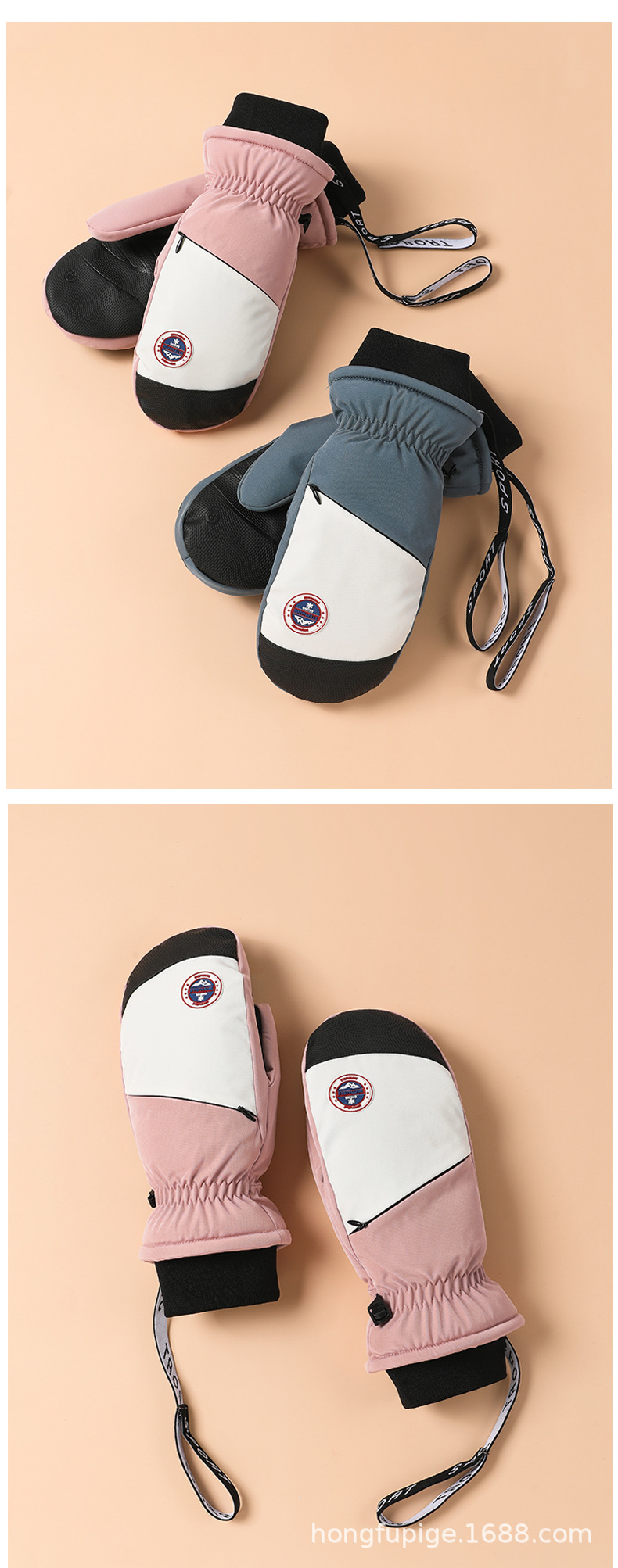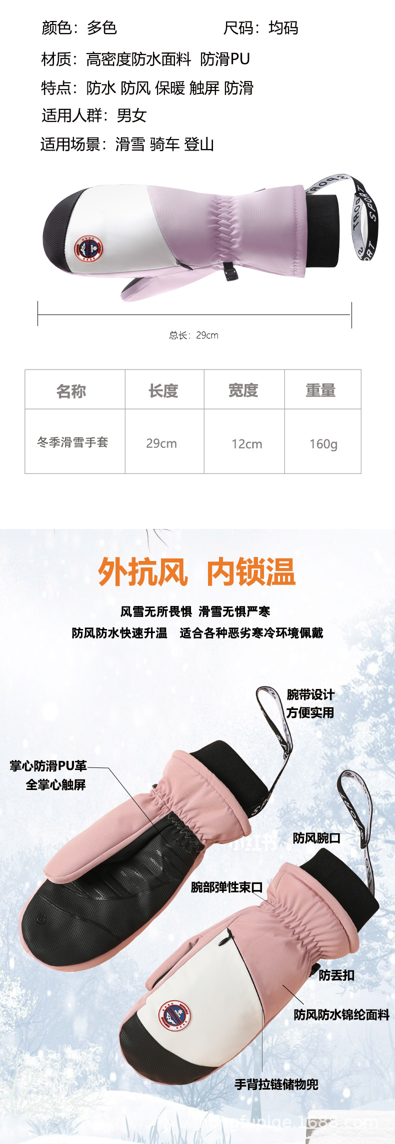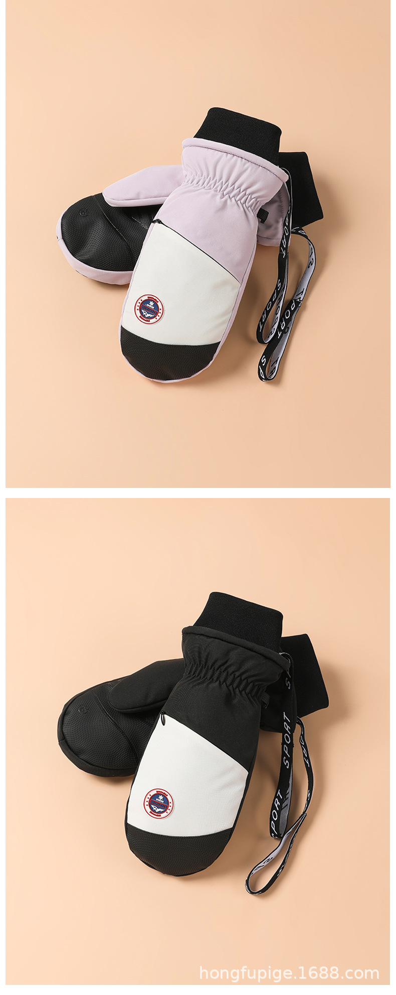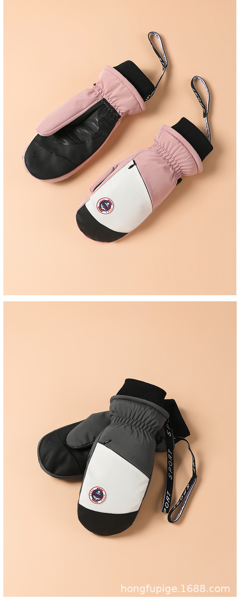 Guantes de esquí de una sola tabla para hombres y mujeres impermeables engrosados cálidos interiores de cinco dedos pantalla táctil de mapache guantes de otoño e invierno
