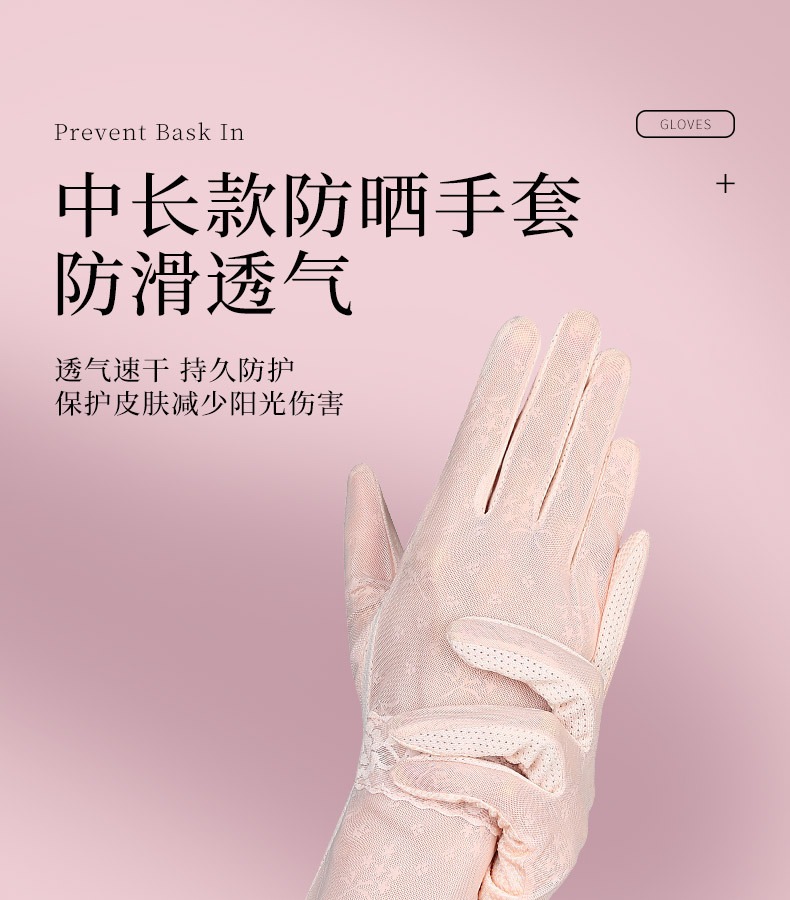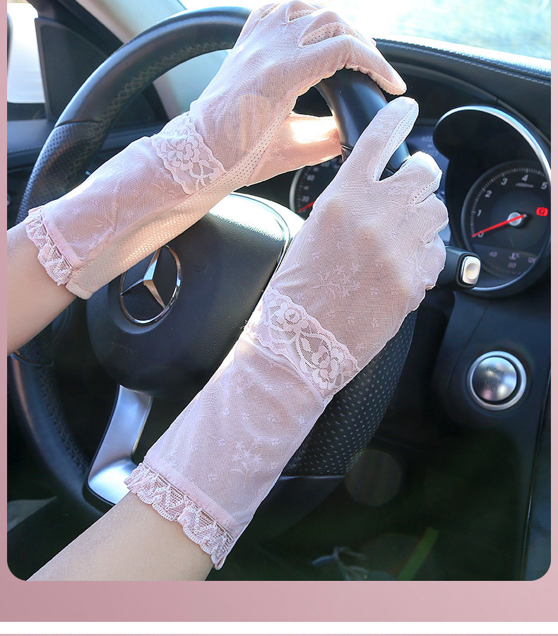 Guantes de protección solar para mujer de verano conducción al aire libre a prueba de rayos UV pantalla táctil antideslizante guantes de encaje de longitud media