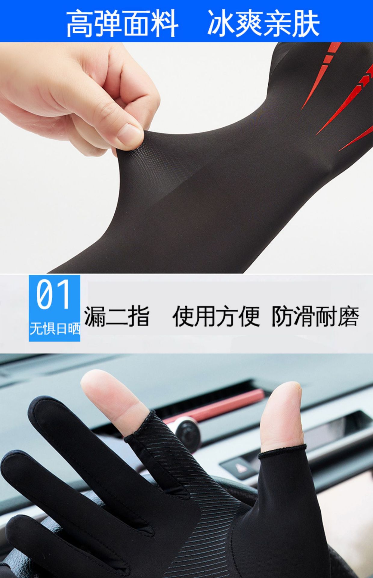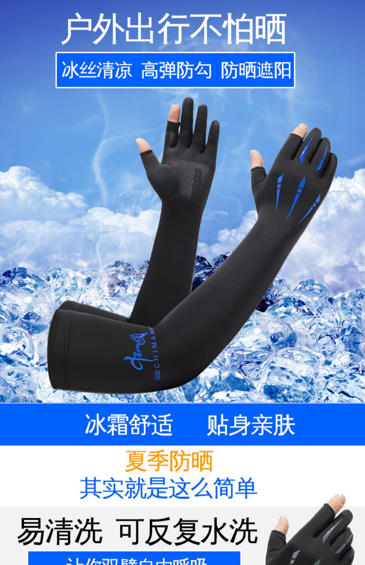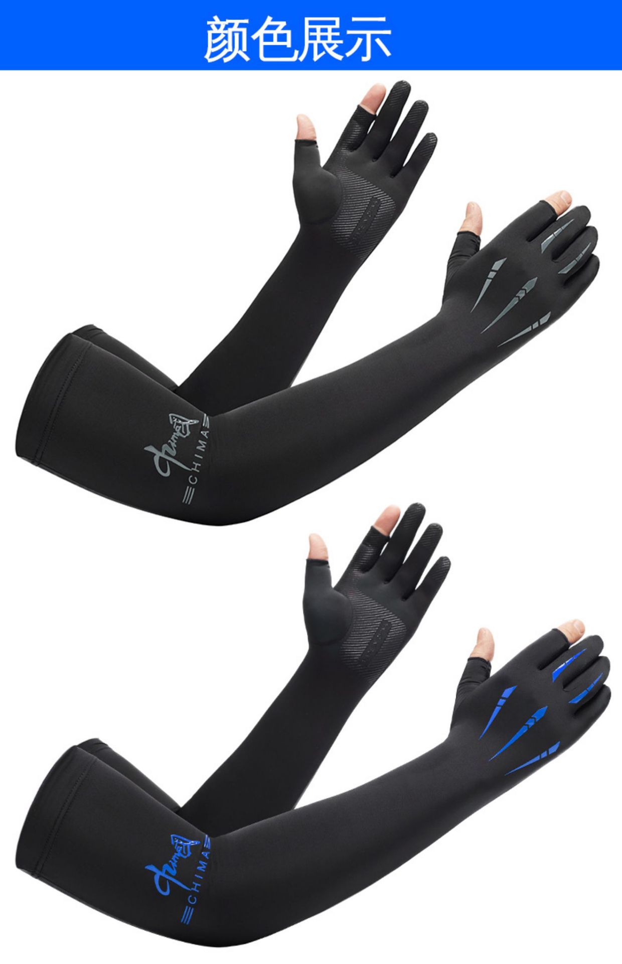 Guantes de protección solar de seda de hielo de verano para hombres de dos dedos de hielo oversleeve uv brazo de protección del brazo oversleeve guantes delgados al aire libre