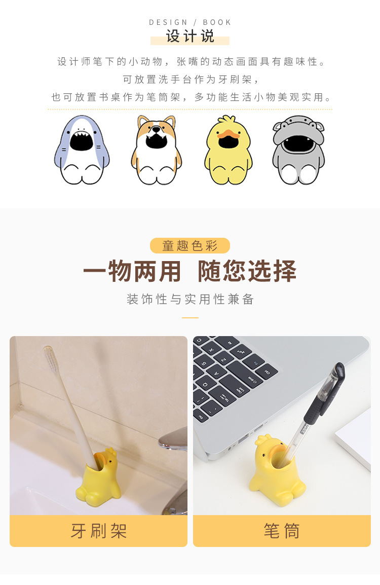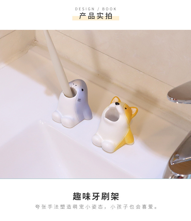 Resina encantadora caricatura animal estante de cepillo de dientes decoración del hogar baños dentales estante de almacenamiento pequeño adornos