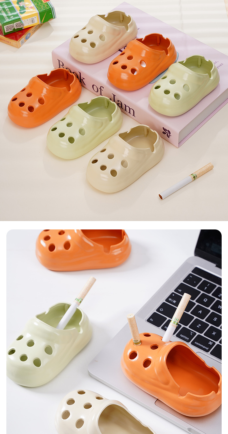 Zapatos con agujeros de celebridades de Internet Cenicero gris anti-volador creativo hogar lindo cenicero de escritorio antideslizante y antiescaldado