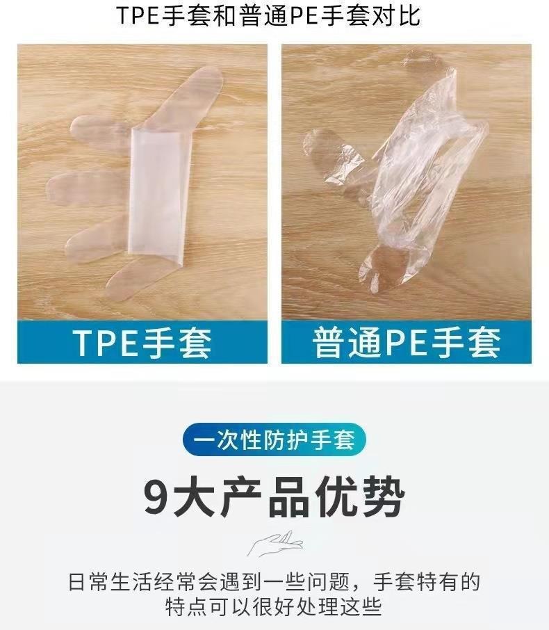 Guantes TPE de grado alimenticio para lavado de platos de cocina para barbacoa doméstica desechable TPE guantes de caja gruesa al por mayor