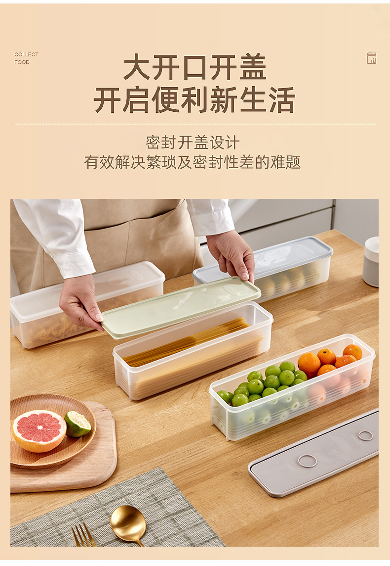 Caja de almacenamiento de fideos de plástico, caja de sellado de fideos de alimentos, refrigerador de cocina, caja de almacenamiento de artefactos