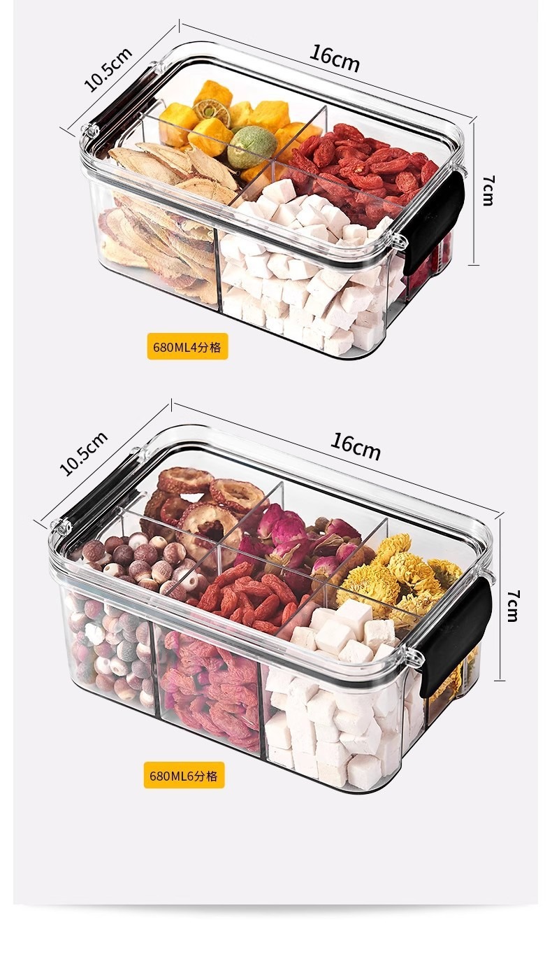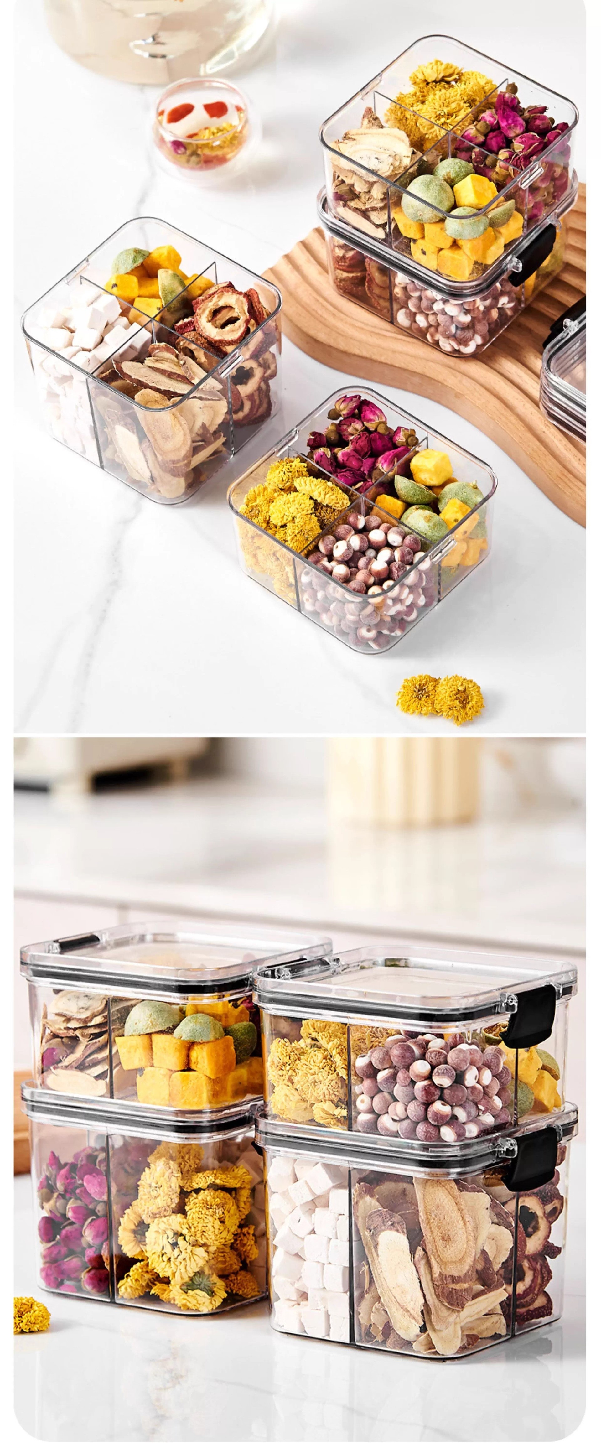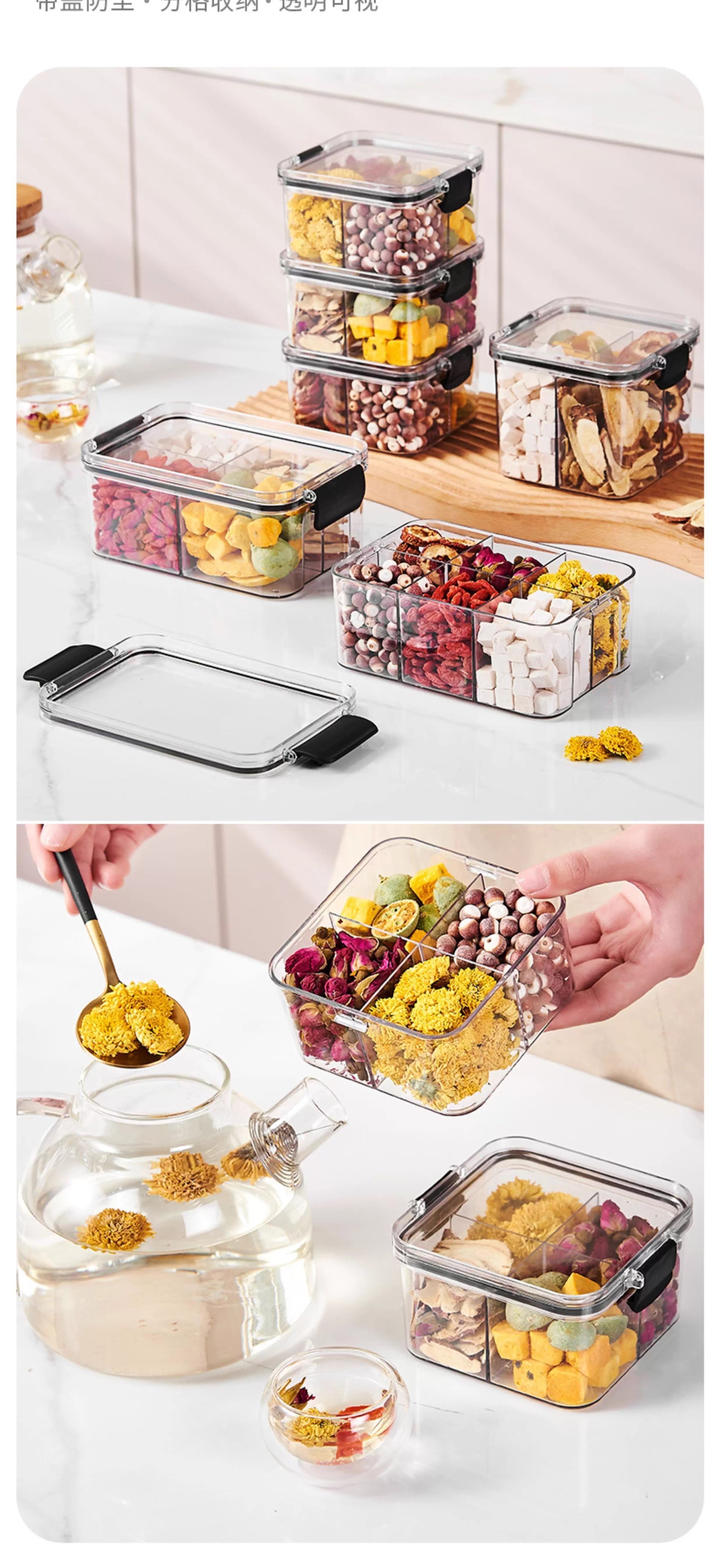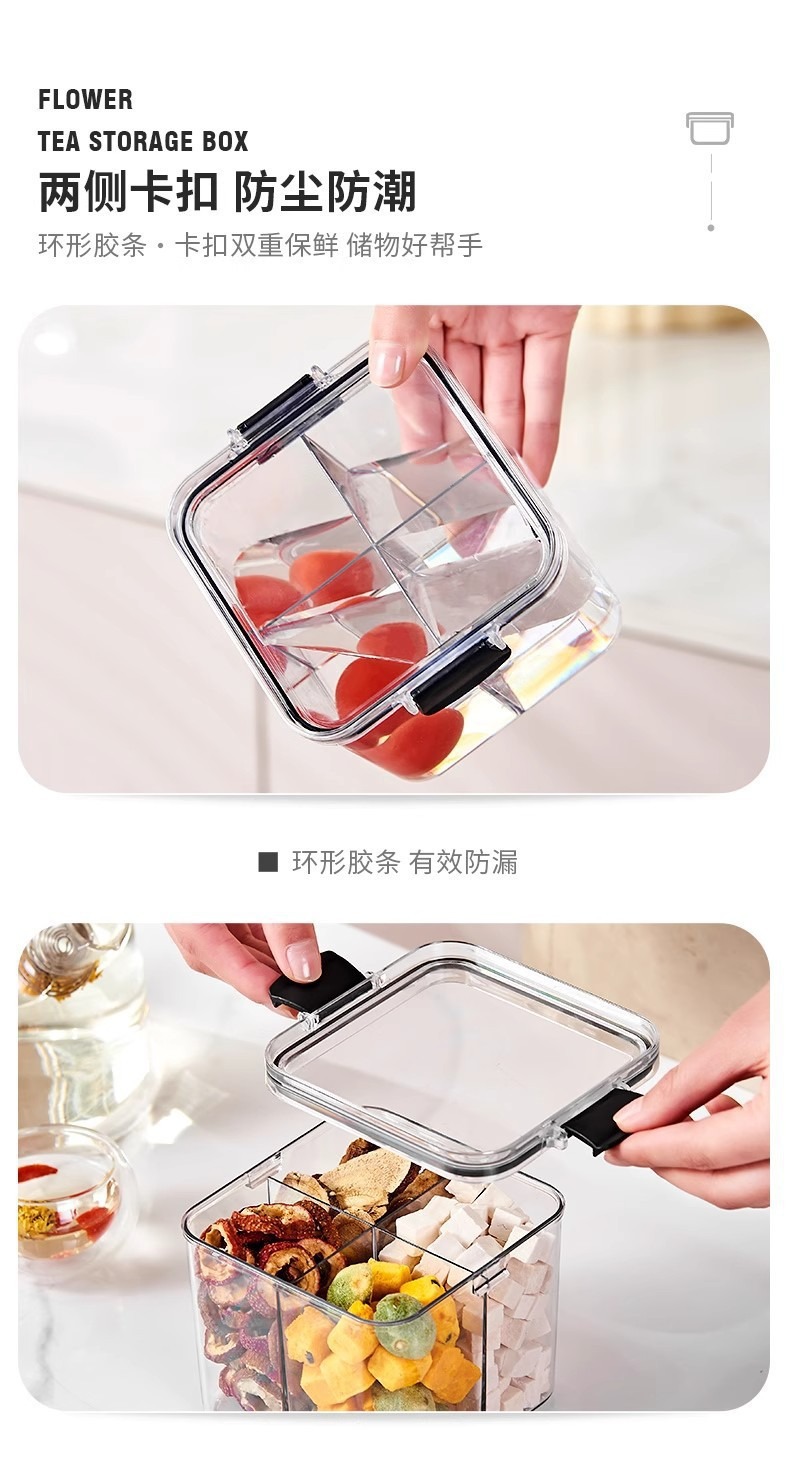 El tanque de sellado a prueba de humedad y a prueba de humedad transparente con tapa se puede superponer con una caja de almacenamiento de granos multicapa caja de almacenamiento de té de flores de nueces para el hogar