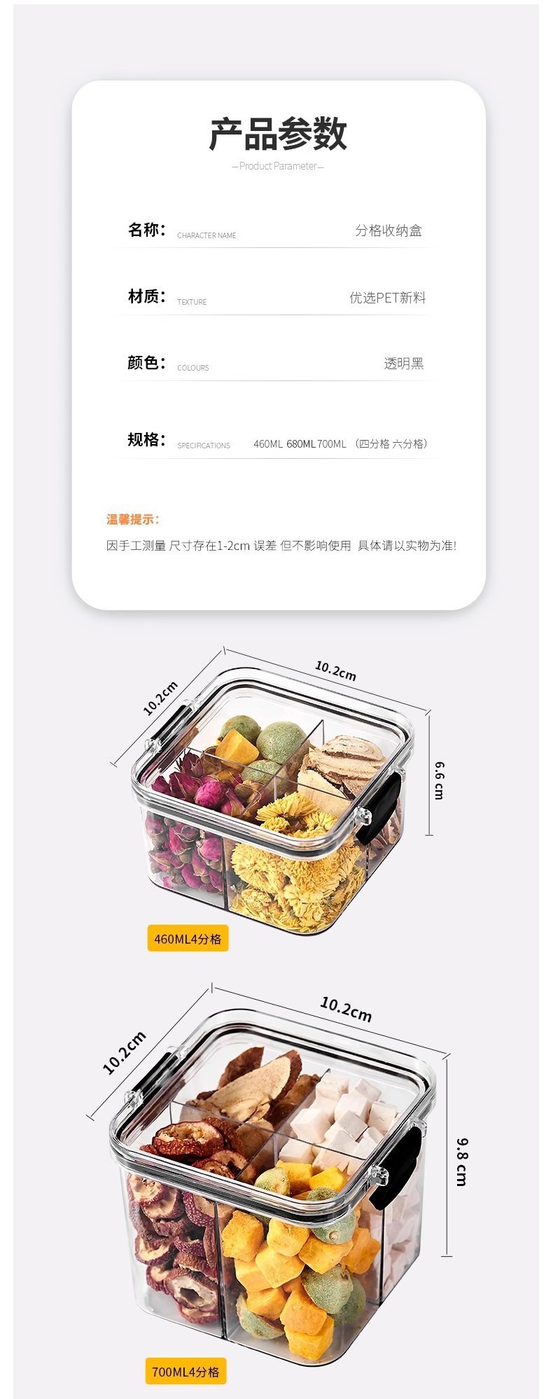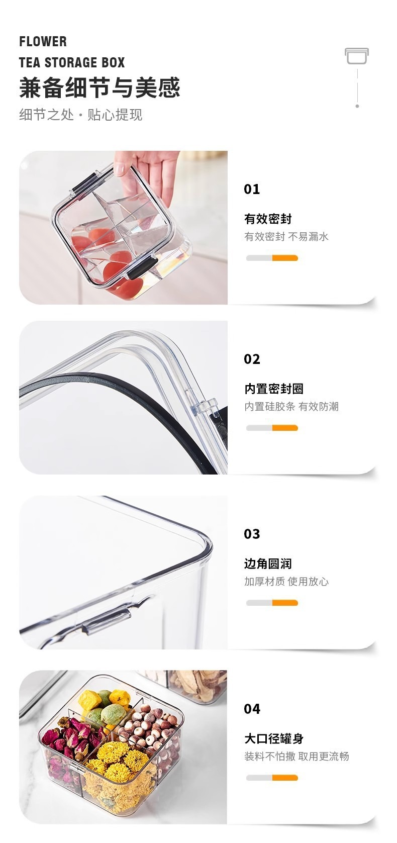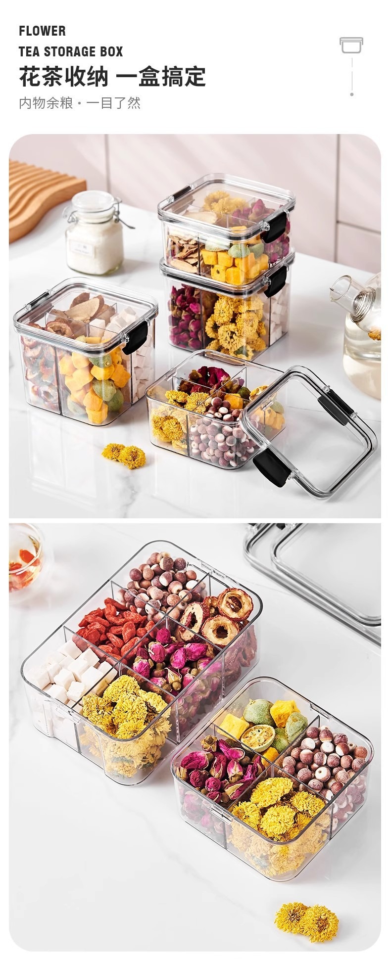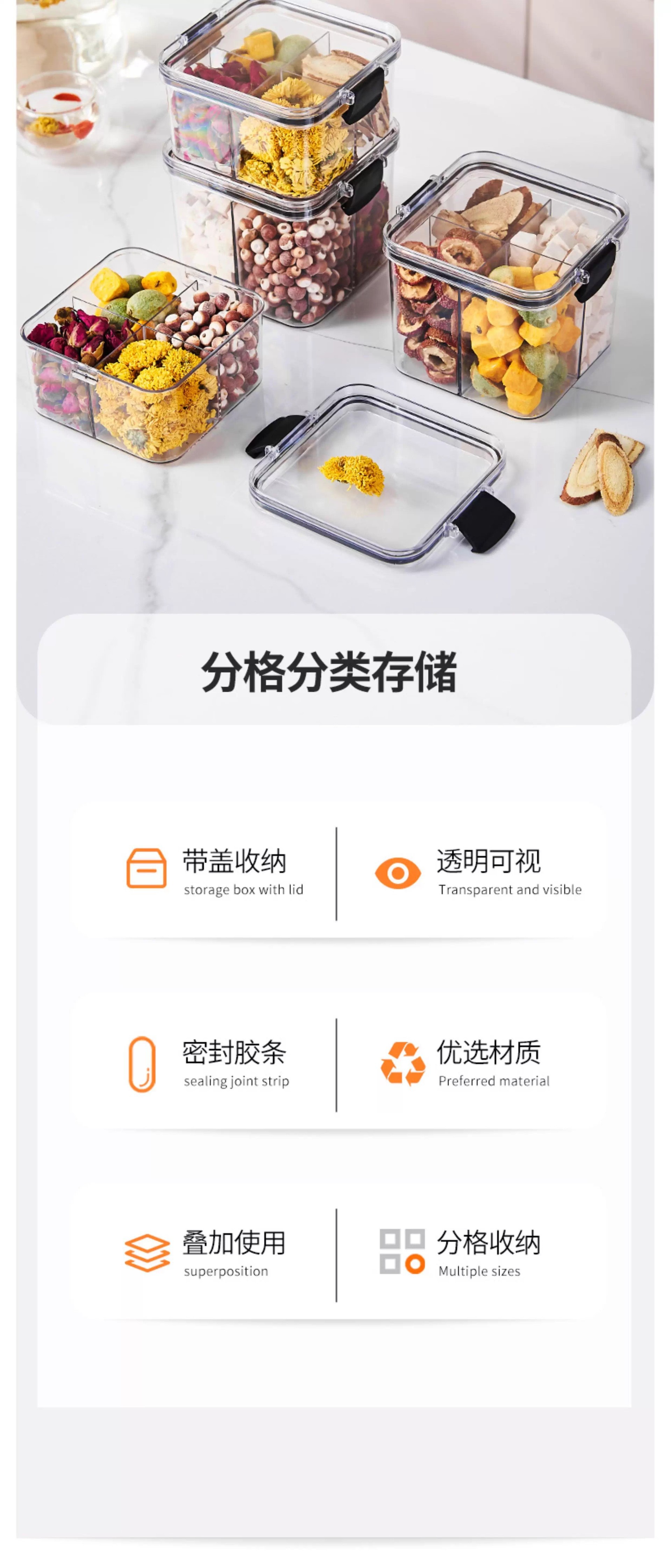 El tanque de sellado a prueba de humedad y a prueba de humedad transparente con tapa se puede superponer con una caja de almacenamiento de granos multicapa caja de almacenamiento de té de flores de nueces para el hogar