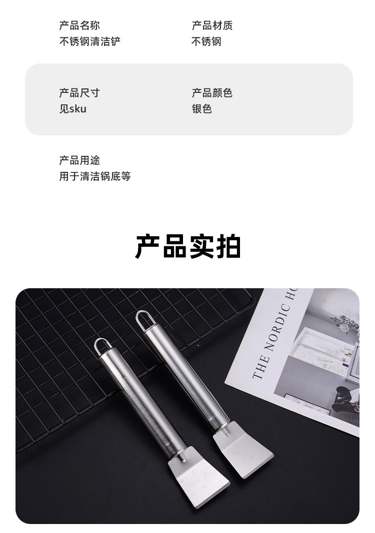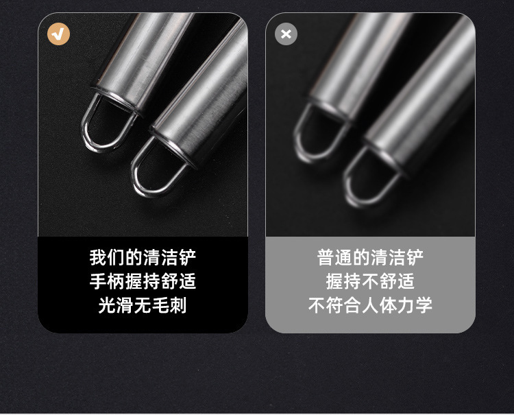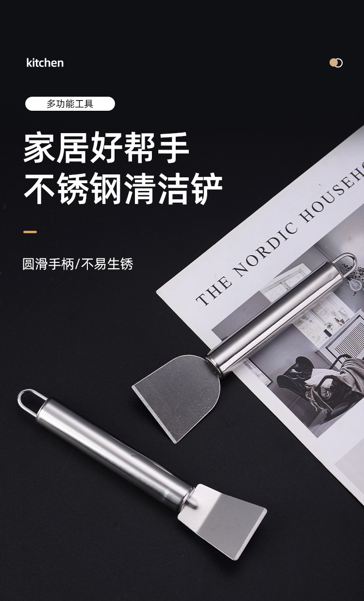 Palas de limpieza de acero inoxidable, herramientas de cocina, palas de descontaminación de acero inoxidable, palas de limpieza, palas de limpieza de aceite para el hogar, espátulas